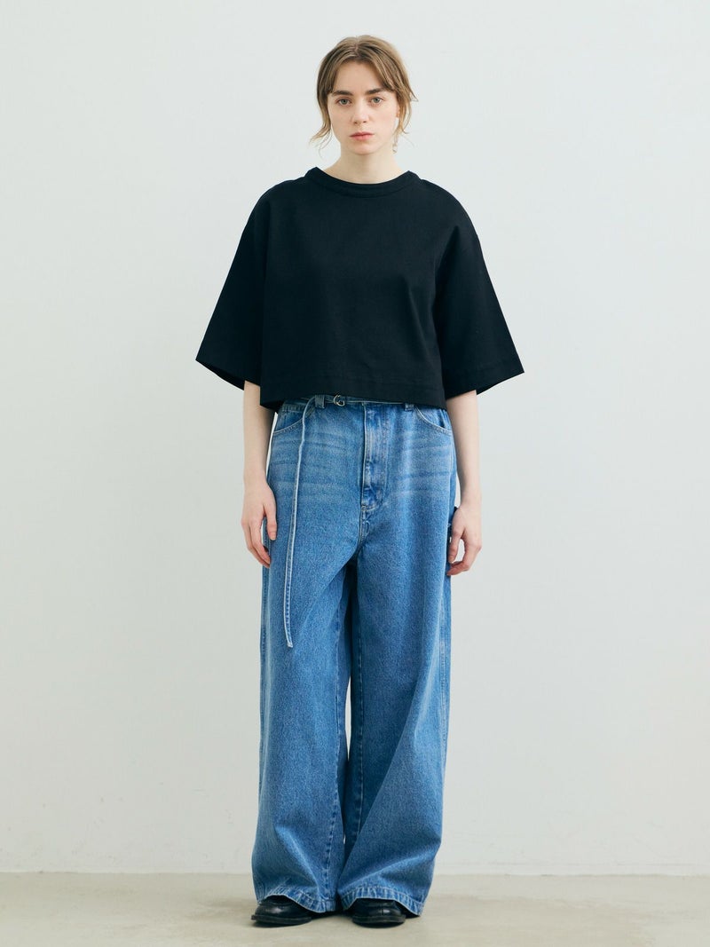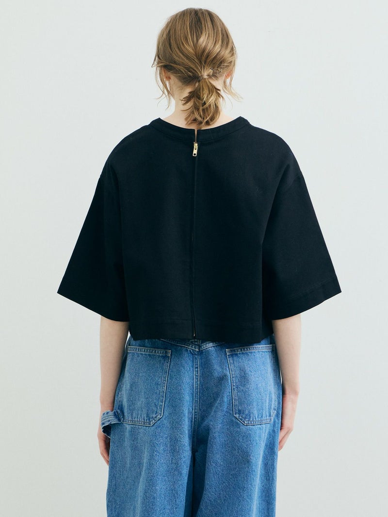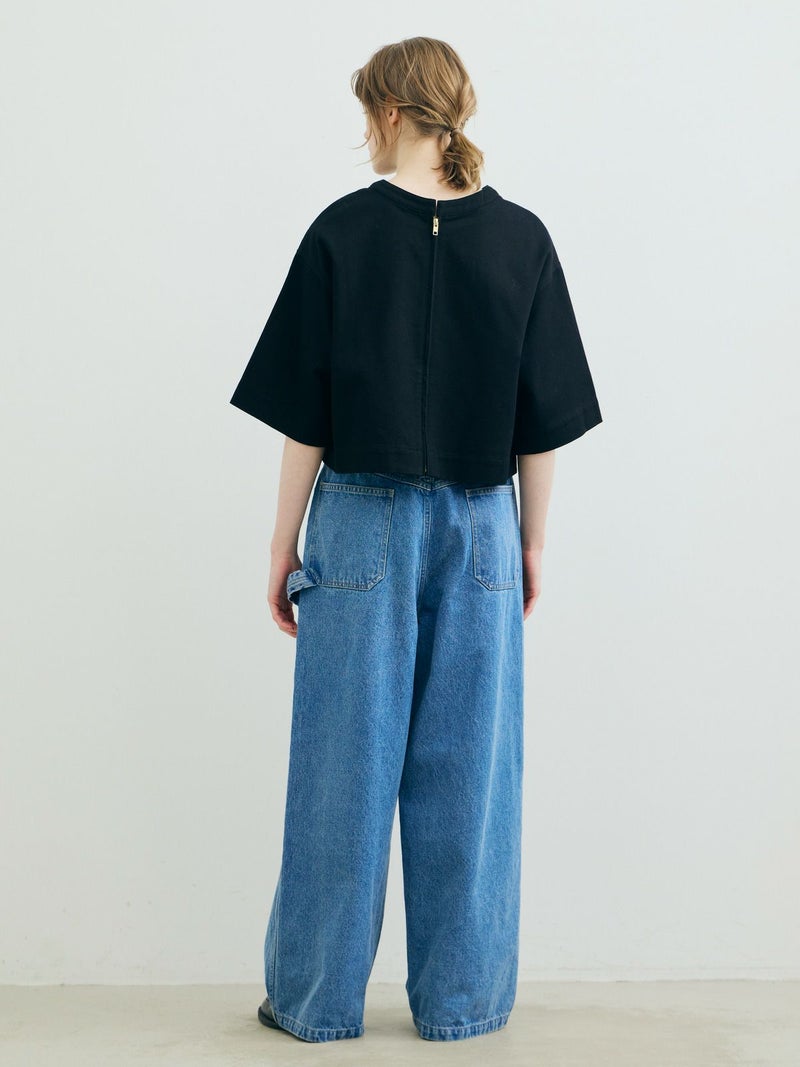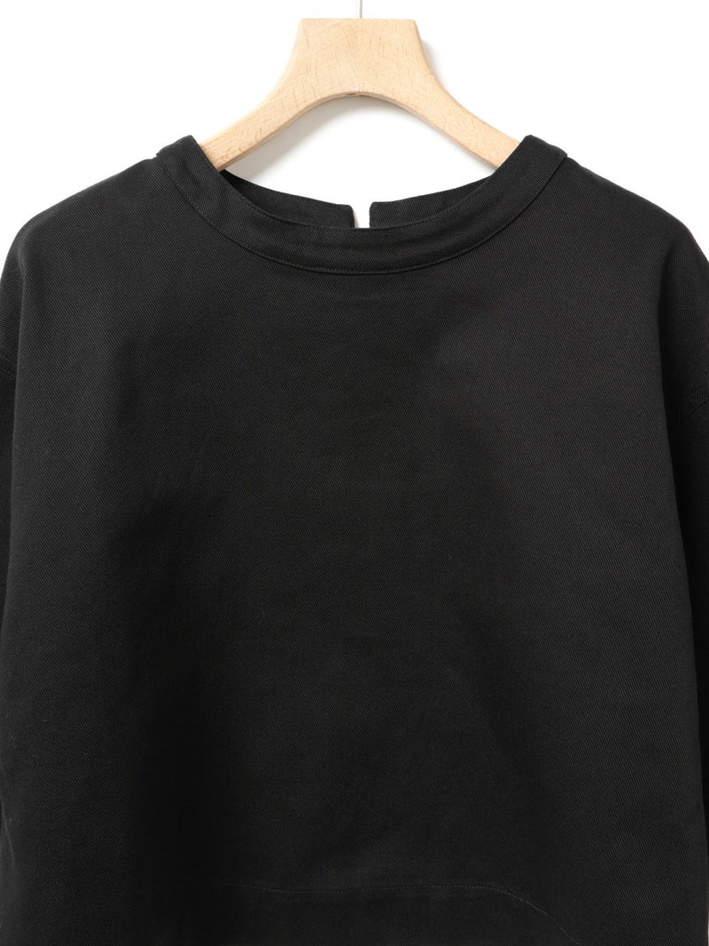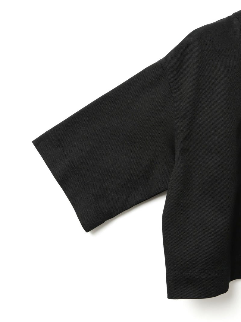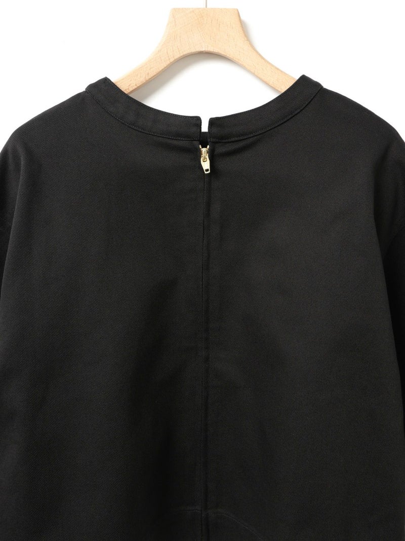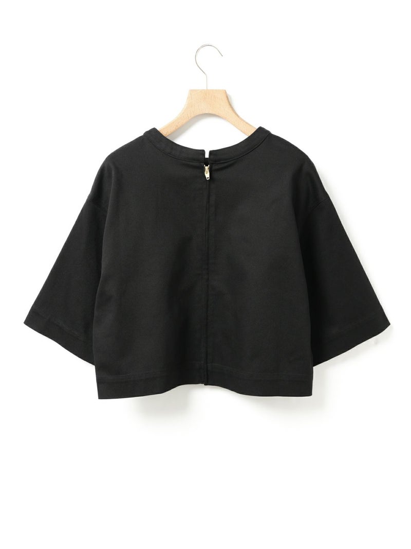 ドリル素材を使用したドリルフロンタブルプルオーバーです。強い撚りを持つ太い糸で織られた厚手で丈夫な生地が特徴で形がしっかりとしたデザインに仕上がっています。重ね着でも半袖でもコーディネートができるデザイン。ショート丈なのでインナーを見せた着こなしや、前後どちらでも着用可能なので羽織ったりと多様にオシャレを楽しんでいただける1枚です。1-860094/シアーダブルニースカートと細身のパンツなどと合わせても素敵です。