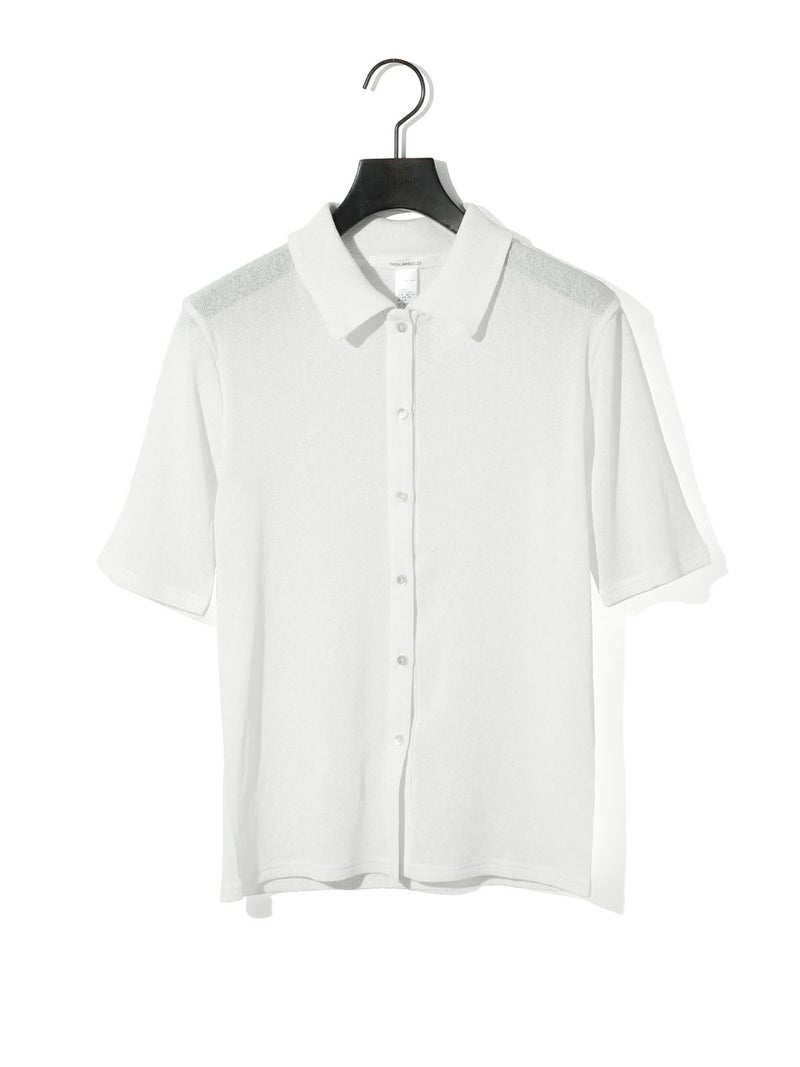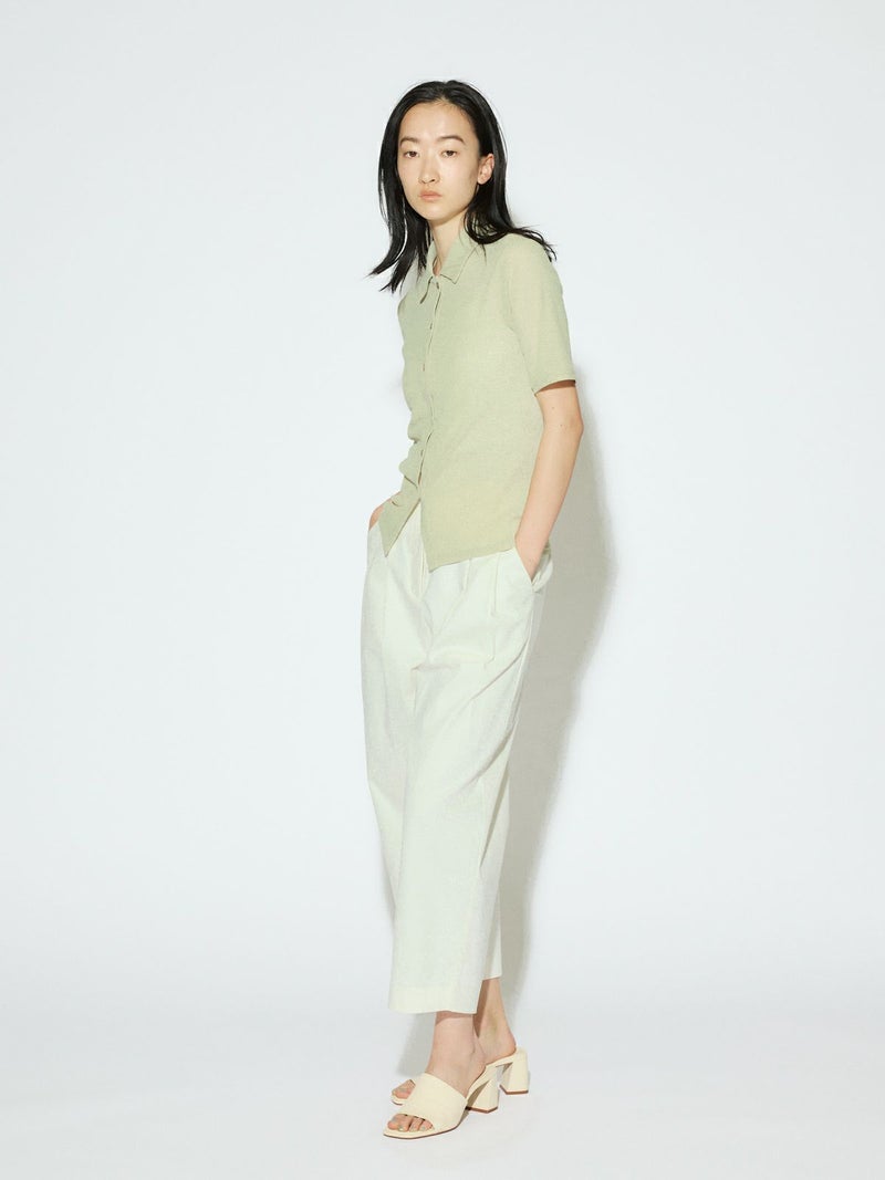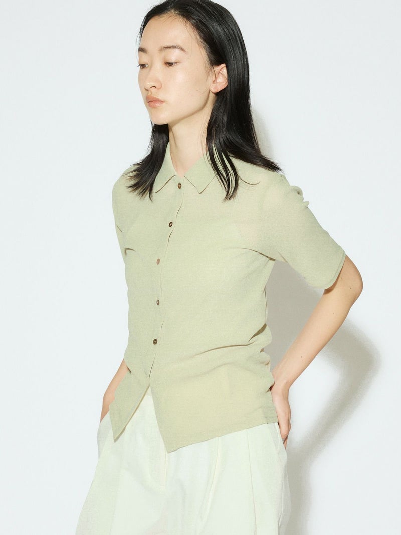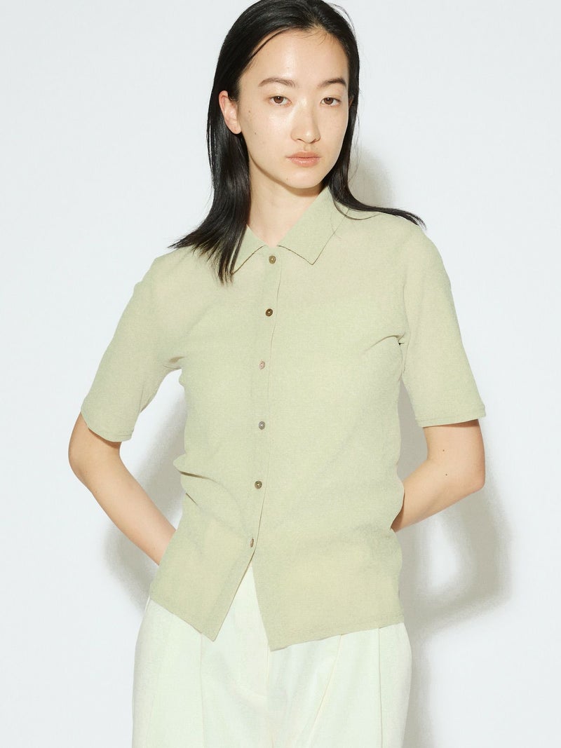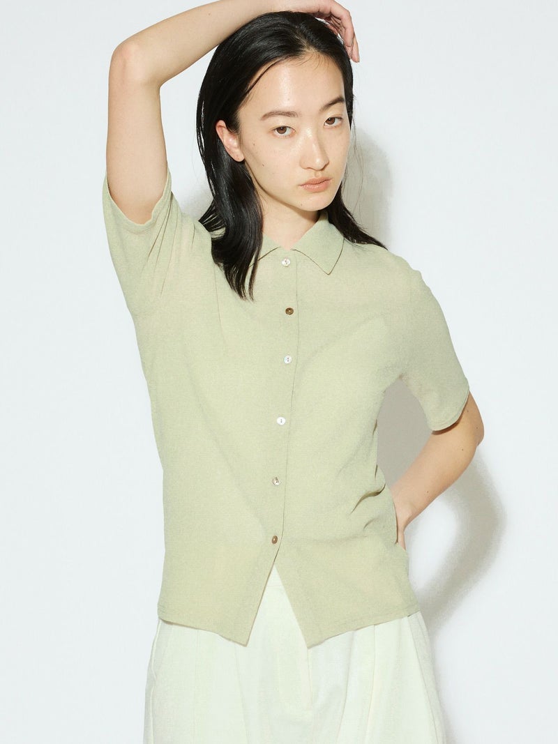 ドライタッチなテレコ素材を使用したシアーコンパクトポロシャツです。ストライプ柄のような凸凹としたあぜが表と裏に交互に現れる見た目が特徴。優れた伸縮性と体のラインに沿うようなフィット感が魅力。キャミソールやタンクトップ、Tシャツ、パンツなど幅広いアイテムに用いられていることで同シリーズ2-112184/シアーアンサンブルも展開。肌離れが良く清涼感のある着心地を体感していただけます。スッキリとした華奢なシルエットで女性らしく上品に着こなせる1枚です。