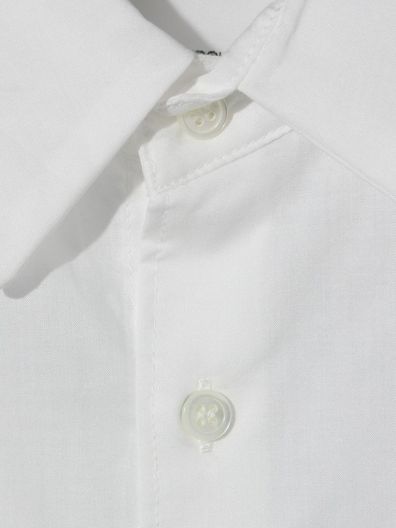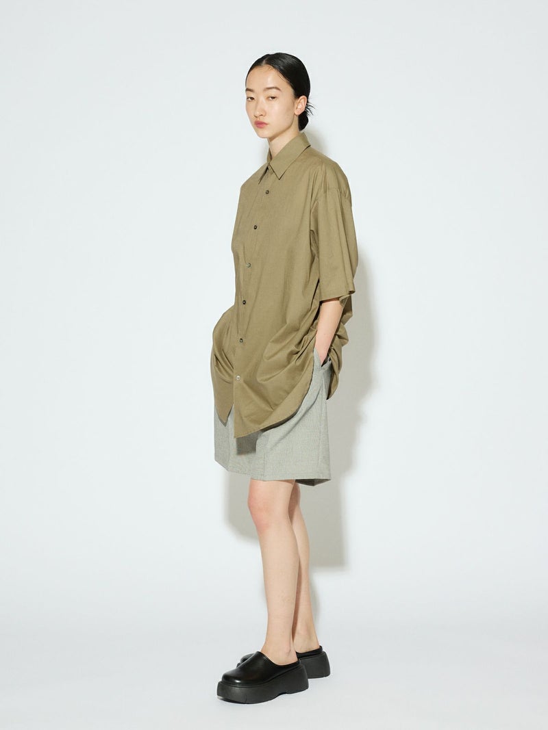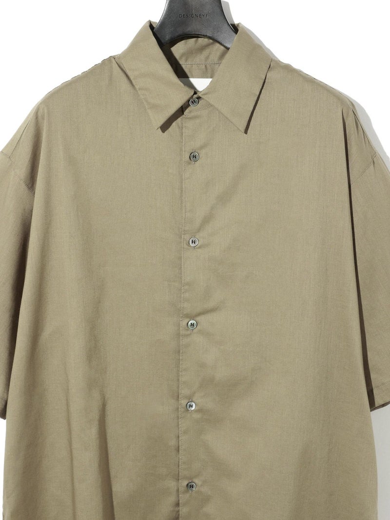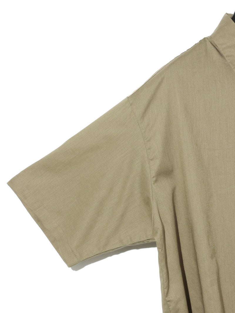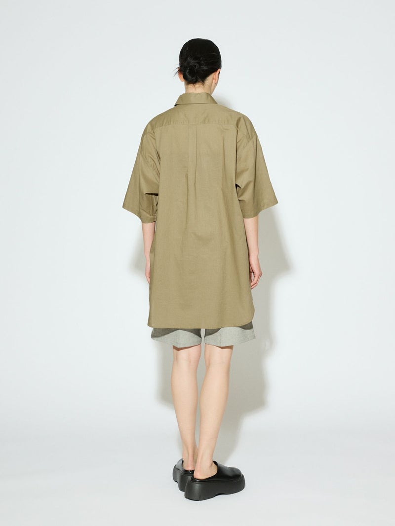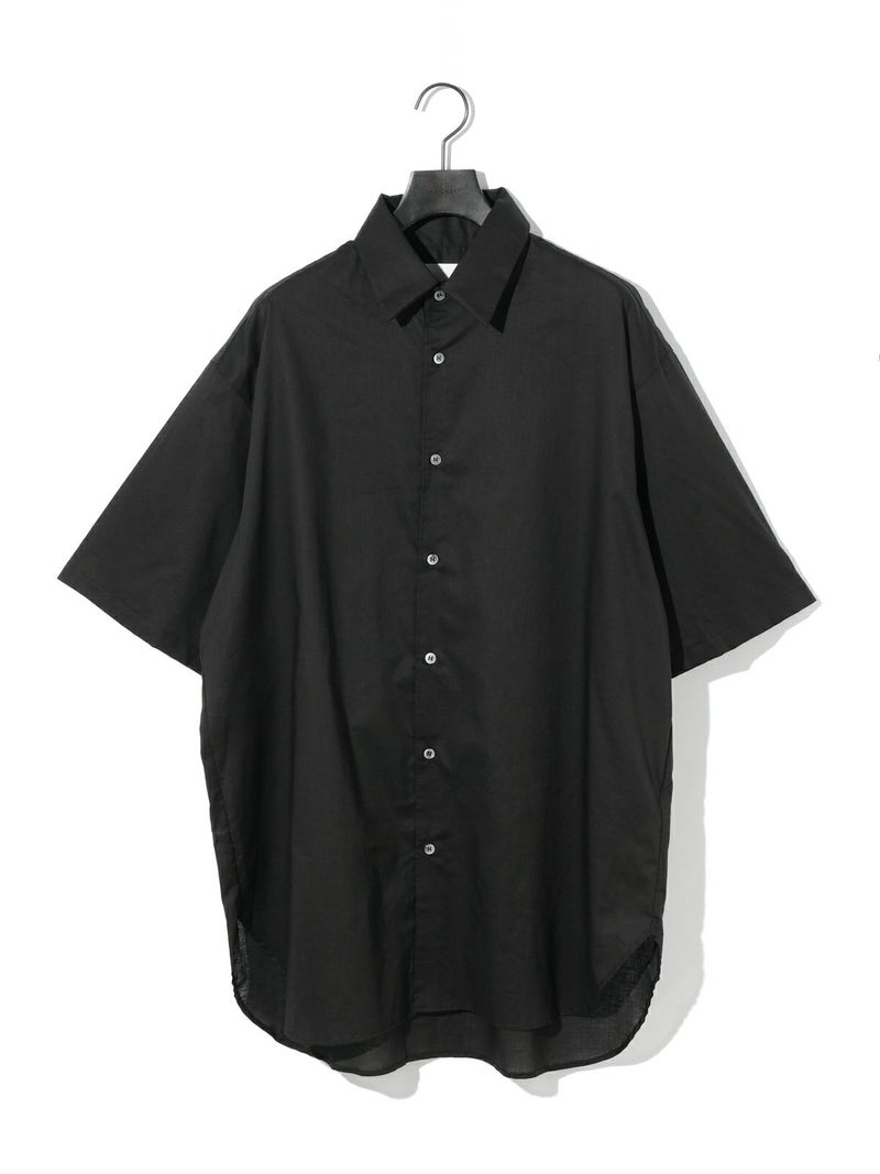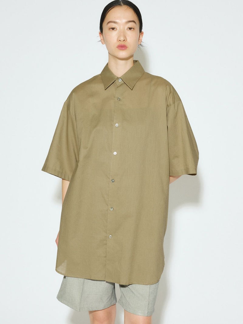 60ローンの生地を使用したハーフスリーブワイドシャツです。とても肌触りが滑らかで見た目にも上品な風合いがあります。薄地でありながら生地に適度なハリ・コシがあるのも特徴。ベーシックなワイドシャツでメンズライクな1枚です。ヒップの隠れる丈は丸みのある優しいシルエットを表現。肘の隠れる袖丈です。気軽に羽織っていただけるデザインで着回しのきくアイテムです。