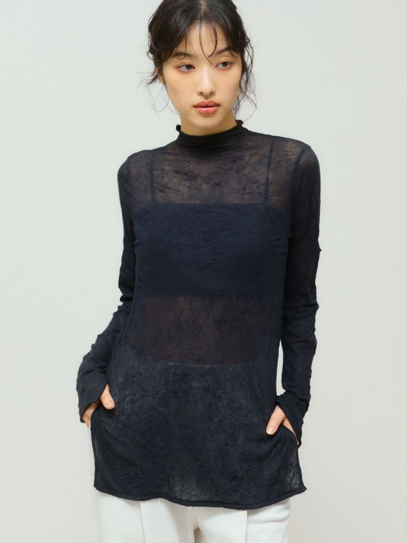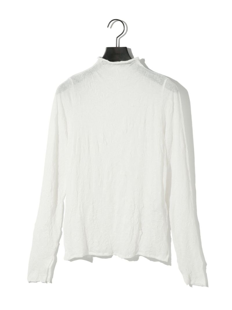 MIDIUMISOLID定番商品でもあるシアーハイネックインナーが今秋、色展開を変更し再入荷いたしました。リピート率が高いアイテムでインナーとしても非常に優秀。天然ジワの様なワッシャー天竺が特徴。大人の雰囲気を表現したちょうどいい透け感でしっかりテンションもあるので非常に着心地の良いのもポイント。色味のアクセントもきいたコーディネートを表現できる1枚です。