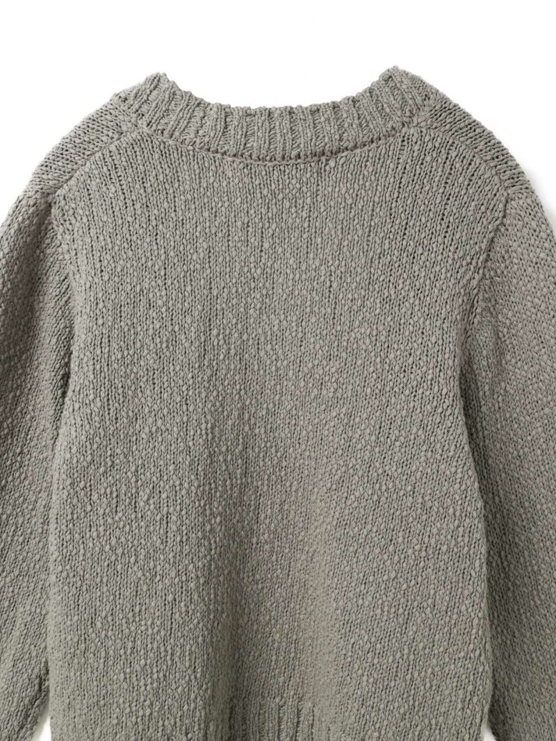 肉厚でスラブ感のあるリリーヤーンVネックカーディガンです。パイル調のスラブ糸の凸凹とした生地感が特徴。ショートでワイドなサイズ感を提案。フロントボタンをなくしサラッと羽織っていただけるカーディガンを表現しました。落ち着きのある優しい色合いも大人の魅力を引き出しています。秋冬のニットシリーズとして同じスラブニットを使用した3-220118/リリーヤーンベストも展開。