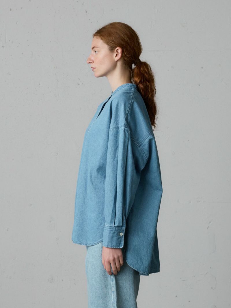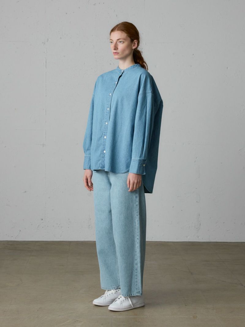 ストーンウォッシュを施したタックスリーブデニムシャツです。袖山、袖口にもタックを施し女性らしい雰囲気に仕上げたデニムシャツ。カフスが長めで折り返しのしやすいデザイン仕上げ。前後差を大きくとっています。タックインも使いやすいのもポイント。カジュアルアイテムとして長く愛用できる1枚。ブリーチとインディゴの2色展開で色々なコーディネートを演出してくれます。中にも着こめる程よいサイズ感です。