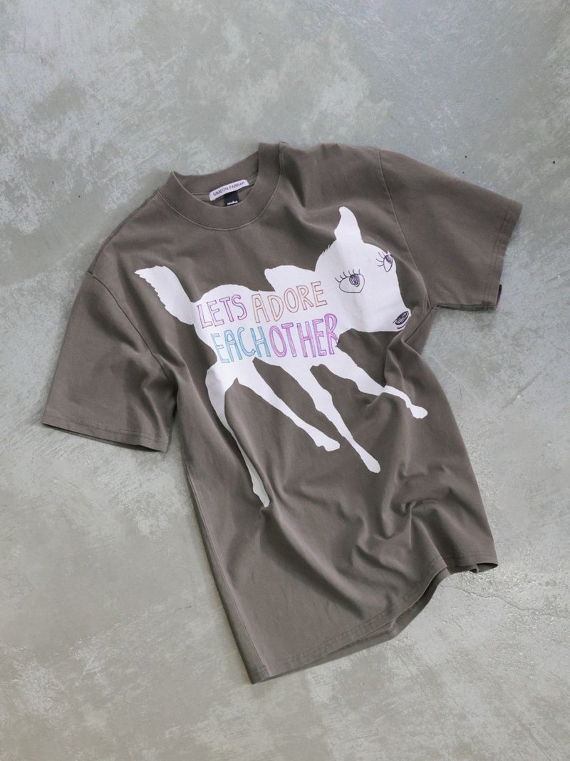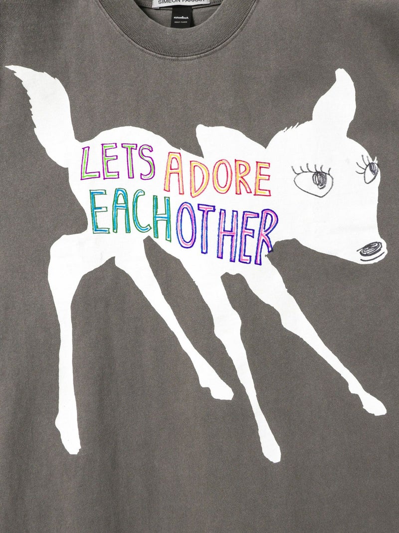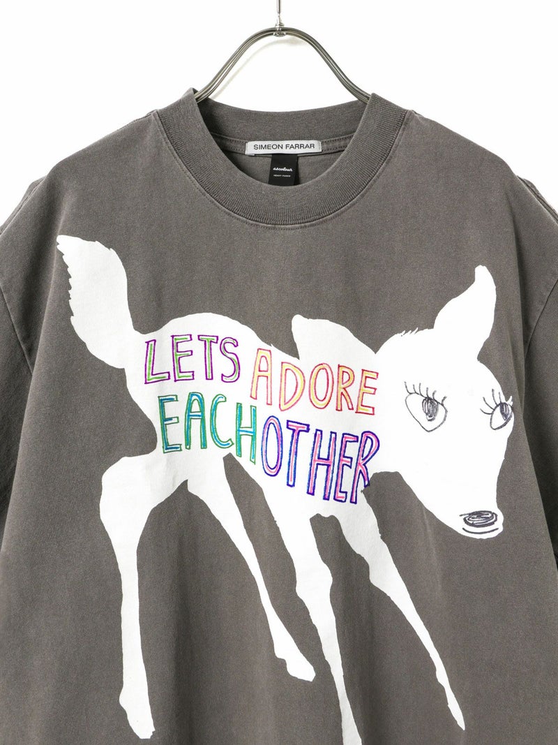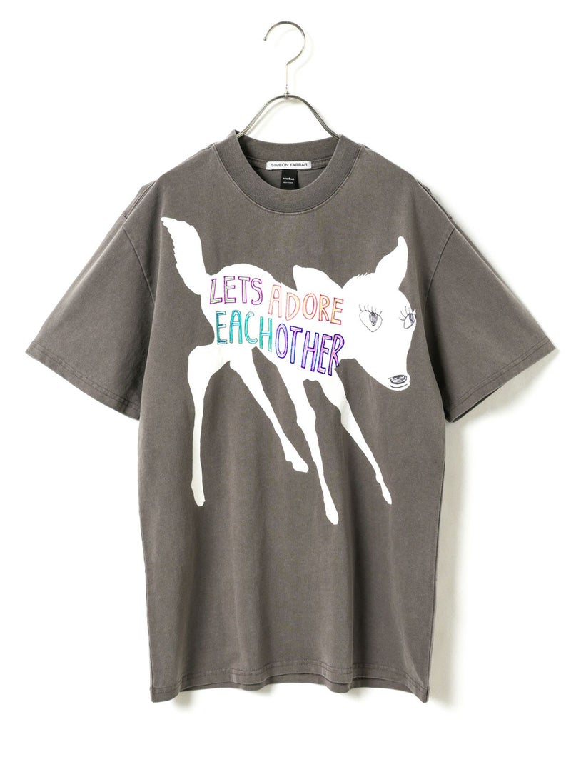 シメオンファラーらしいアート感あふれるバンビモチーフを大胆にプリントしたTシャツ。程よくヴィンテージ感のある風合いと、1枚で主役になるデザインが魅力。デイリーコーデに取り入れやすい存在感のある一着です。