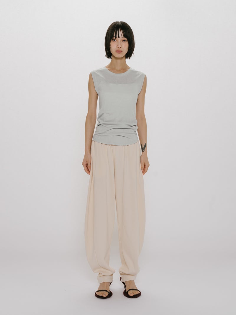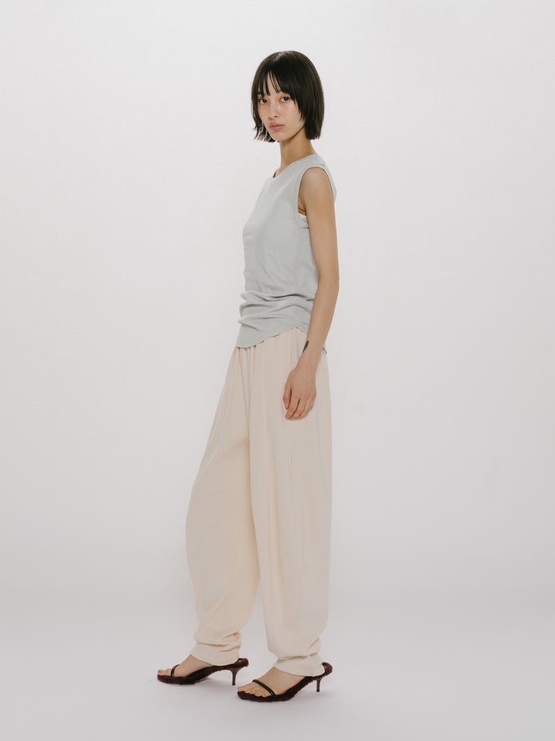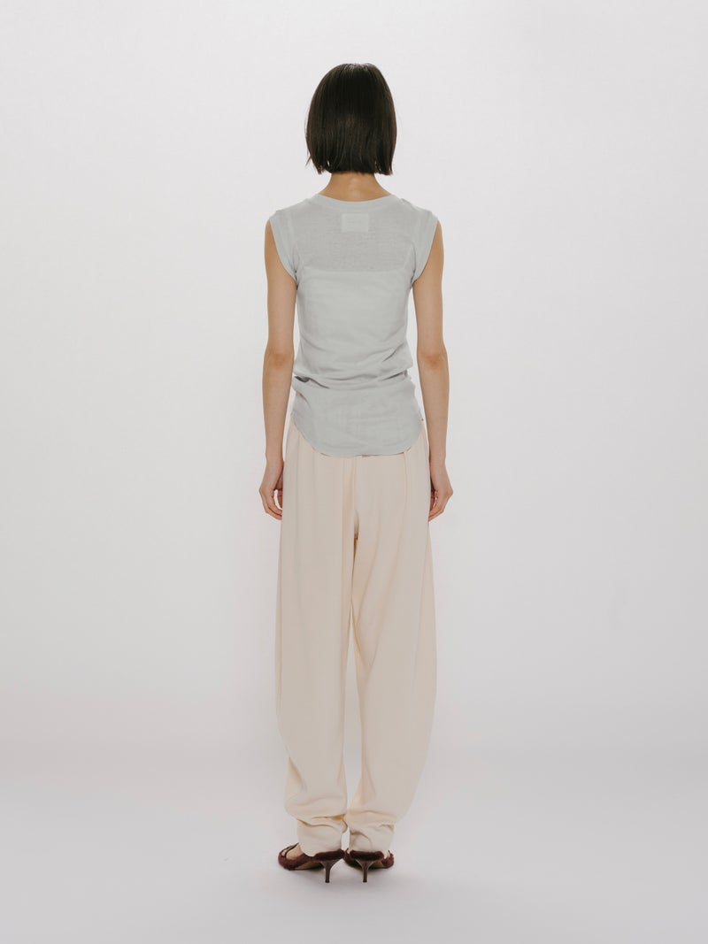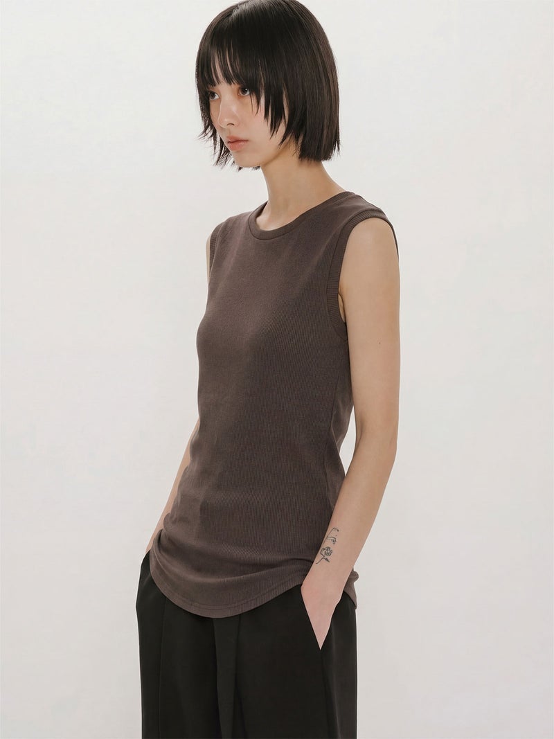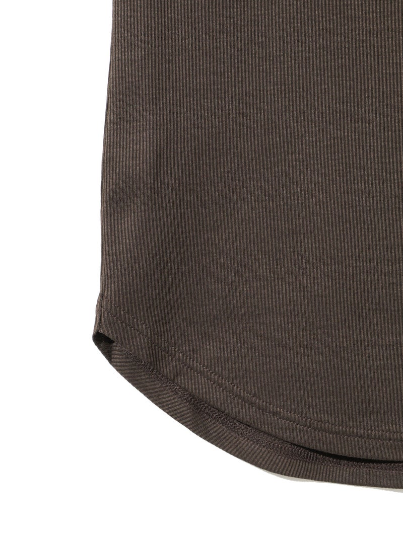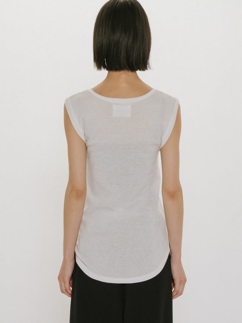 柔らかで肌触りの良いリヨセル綿のテレコリブを使用したリブタンクトップです。MIDIUMISOLID実績のある1枚で今季も再入荷させていただきました。肩線が細すぎないので安定感がある着心地、そして裾のラウンドはヒップになじみ着やすさを考えたサイズとバランスに仕上げました。透け感のあるかぎ編みニットのデザインや、夏に多く見られる軽やかな素材感のアイテムとして、これからの季節に重宝する一着です。コーディネートで見えてくるインナー使いまで拘りをもった着こなしを演出し、女性らしく上品な雰囲気を表現できるタンクトップです。