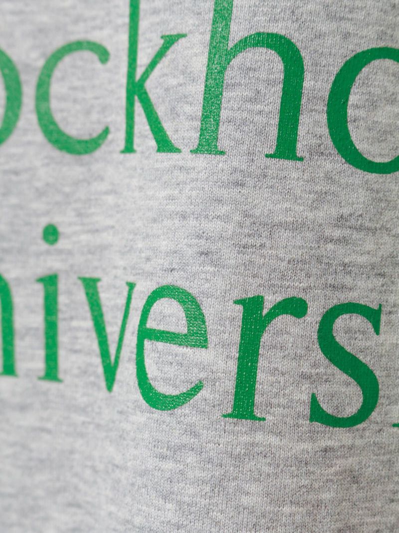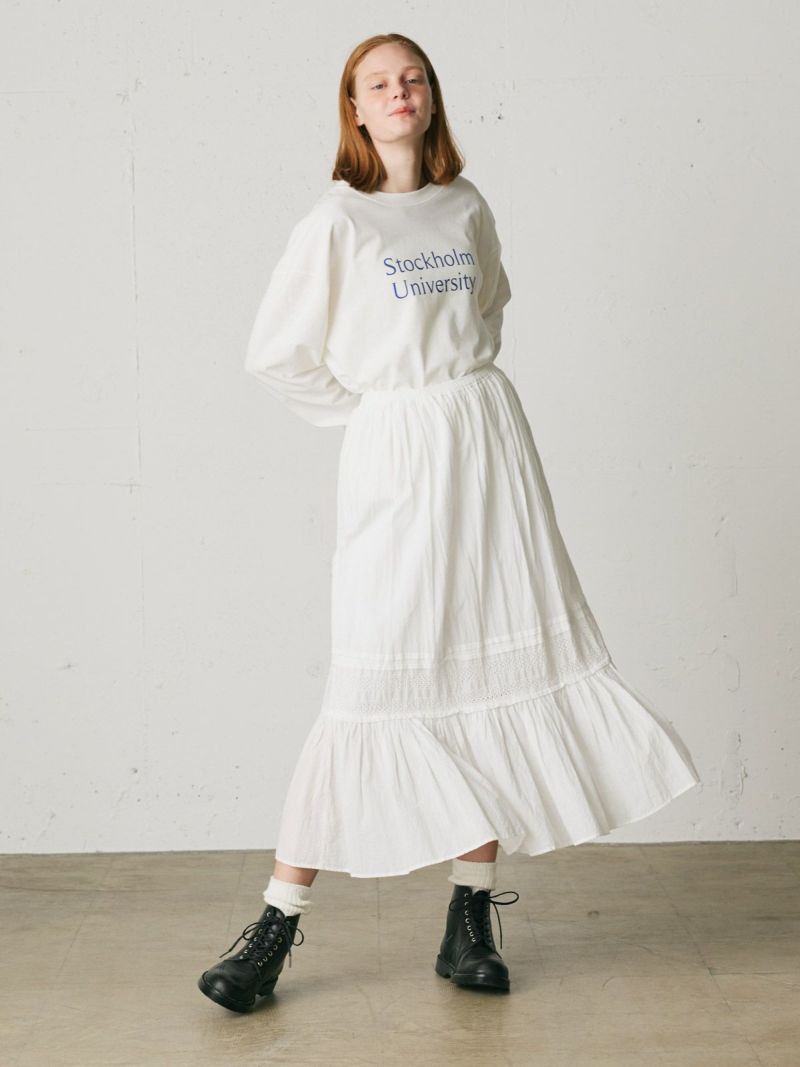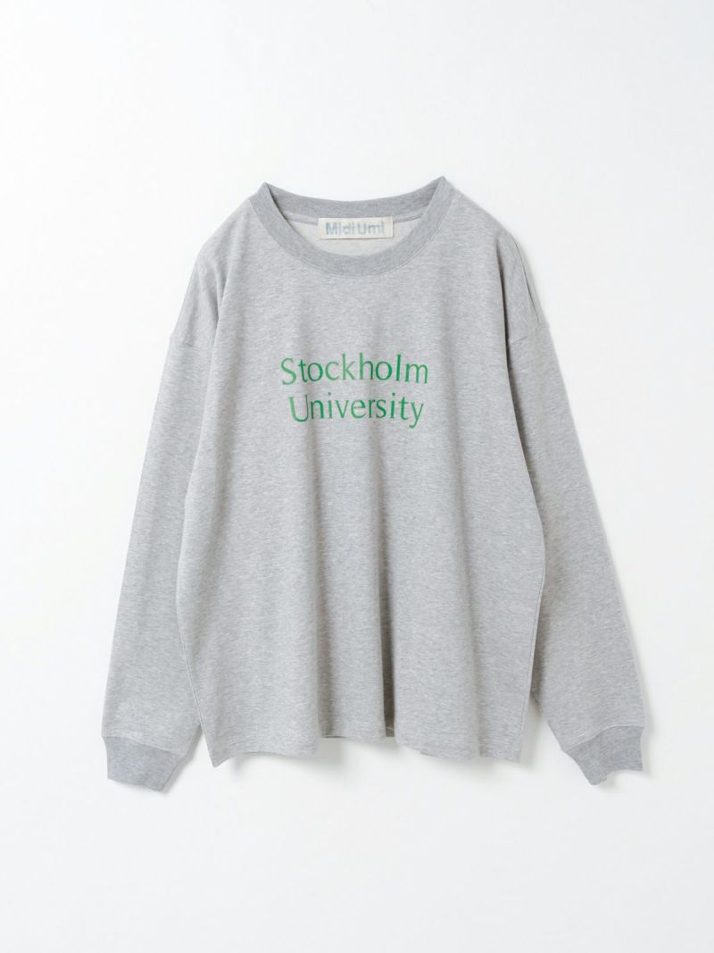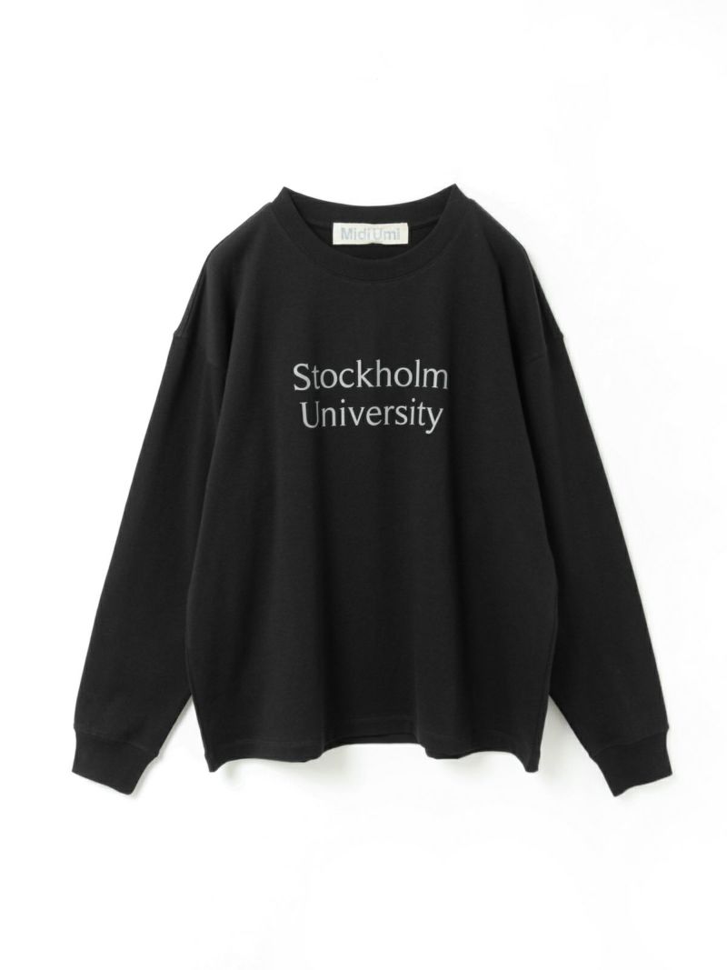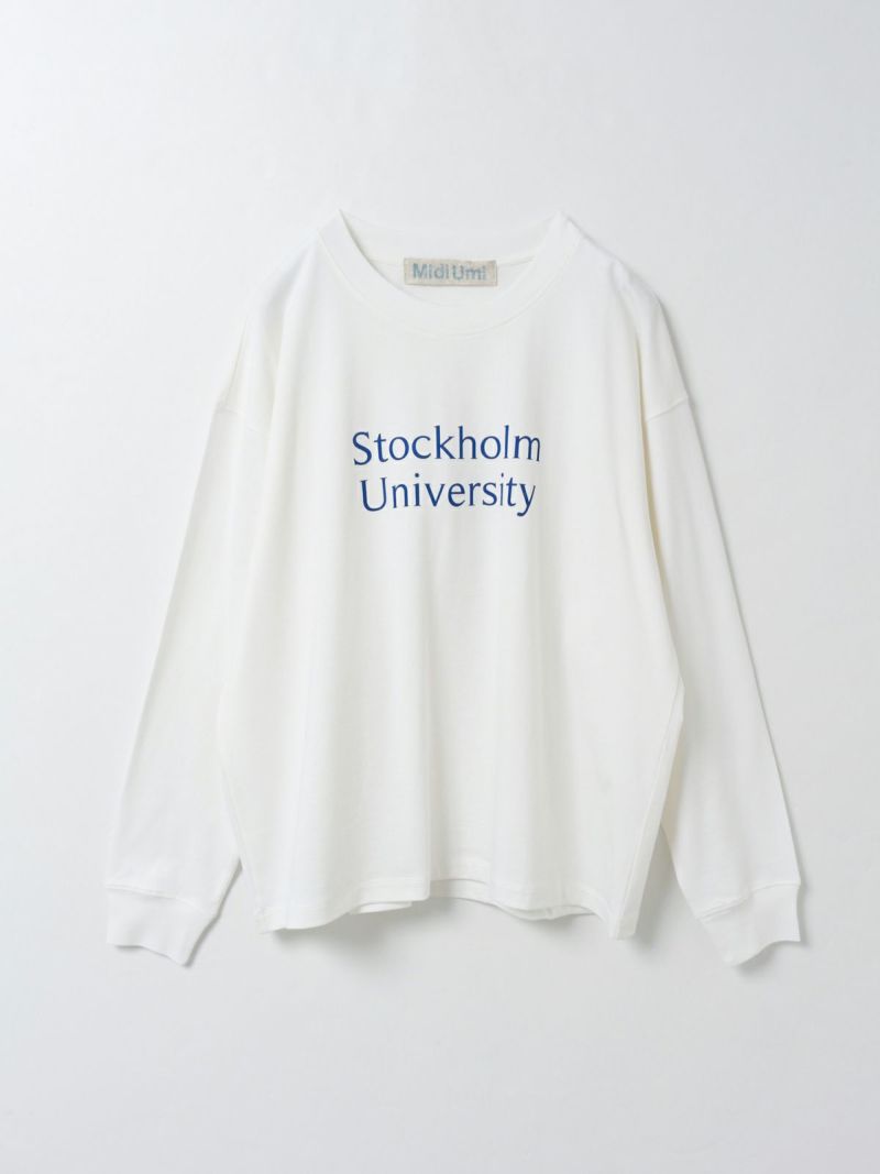 斜行しにくい目の詰まった天竺素材を使用したロゴプリントTシャツです。環境負担を軽減した染色整理加工をしています。ロゴはフロント部分のみ。オフホワイト×ブルー・ブルー×オフホワイト・グレー×グリーン・ブラック×ライトグレー。コーディネートしやすいサイズ感でシンプルな大人のカジュアルを演出します。