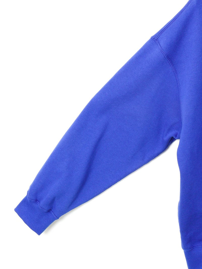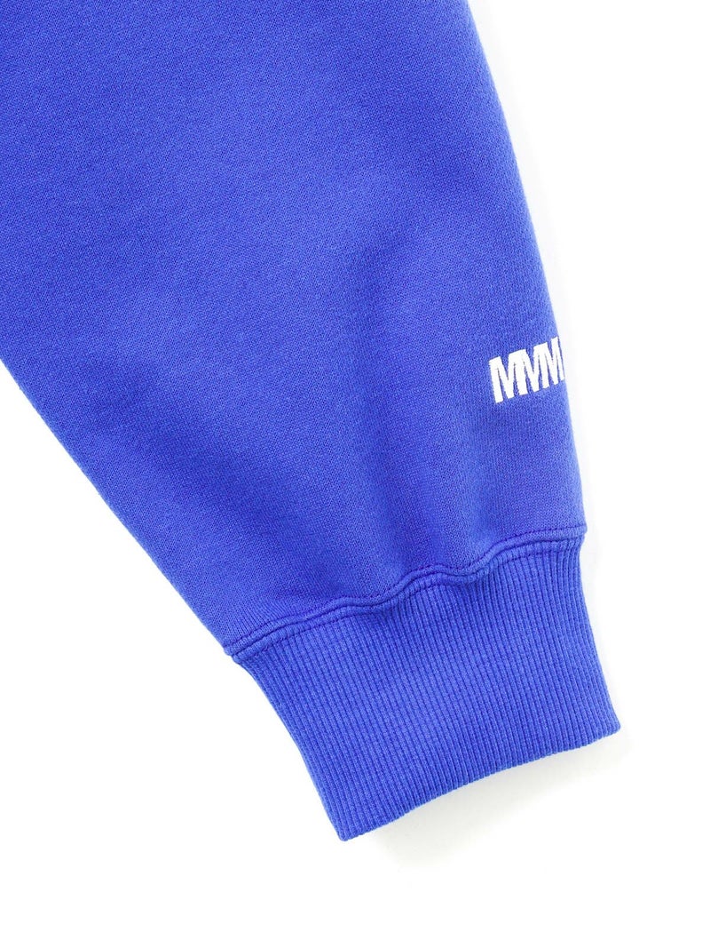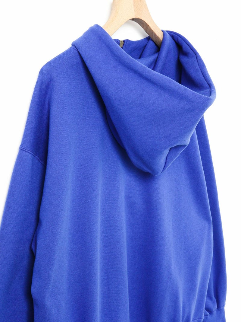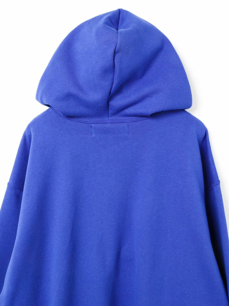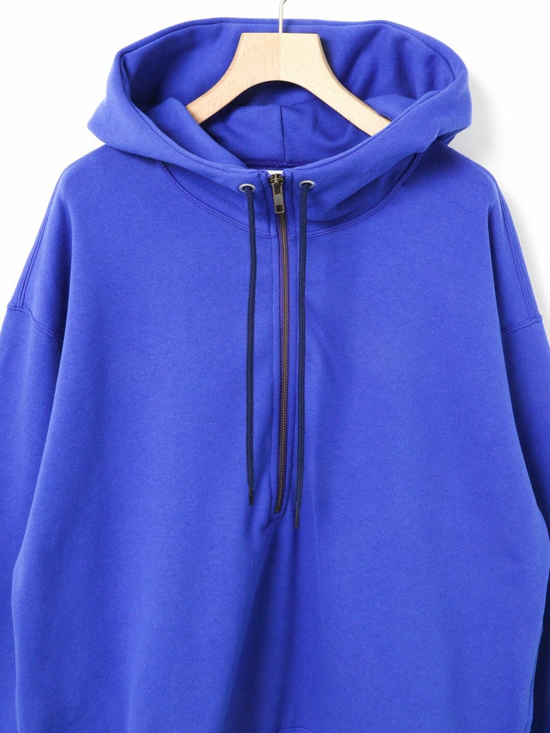 フードプルオーバーのハーフジップデザインが特徴のジップパーカー。ファスナーとハトメの色を敢えて変えている所や程よくオーバーなシルエット感を表現しました。長めのファスナー丈がイマっぽく見えるのがポイント。スウェットプルオーバーと同様、袖口にMMMの配色刺繍をプラス。洗濯で縮みやすい裏毛素材ということを考慮しMARMARMARではあらかじめ洗い加工を施した後プレス仕上げし、洗濯後の大幅な縮みを軽減している所もポイントです。編み設計や糸使いに拘った、着心地が良く斜行し辛い 綿100%の裏毛素材。毛焼き加工が施されているため、カジュアル過ぎないクリアな表面感が特徴。豊富なカラー展開でご提案。