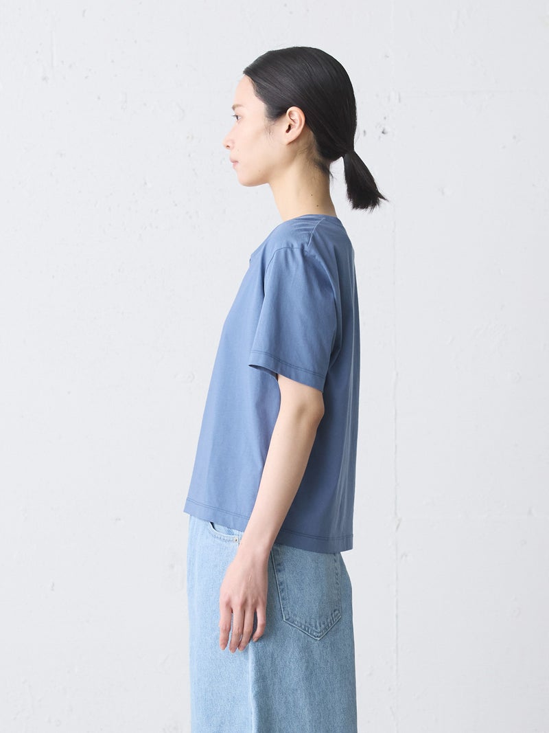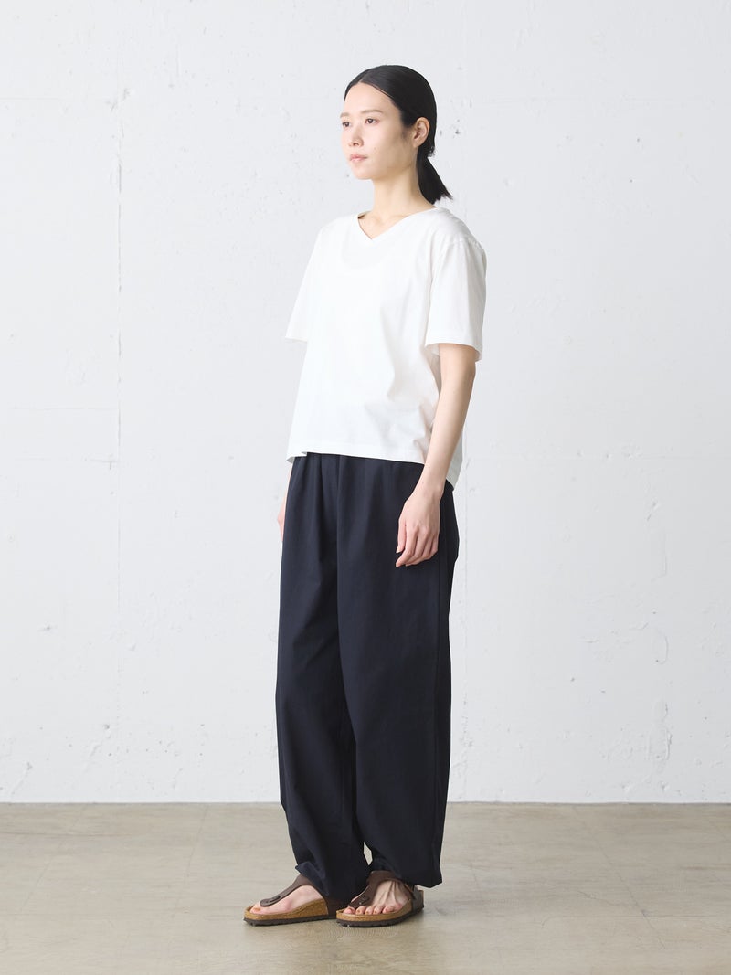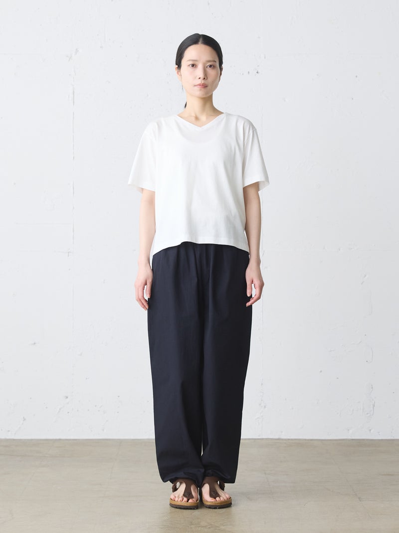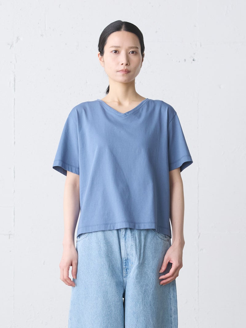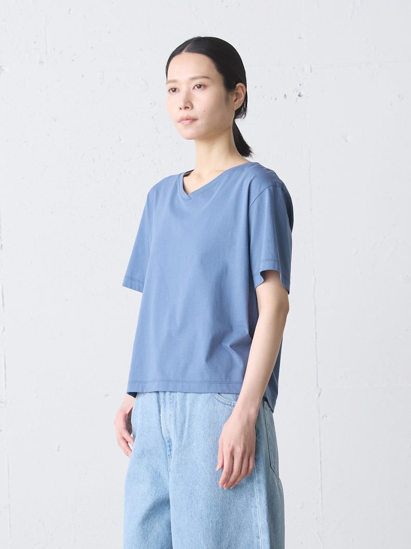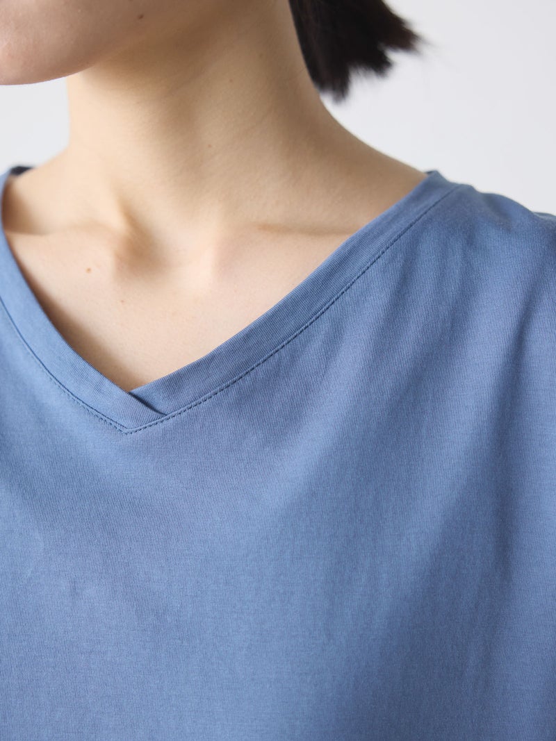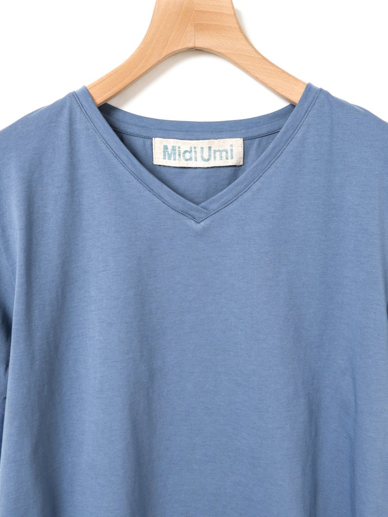 シンプルなデザインのVネックプルオーバーです。1枚で着用しても様になるTシャツです。Vネックは開き過ぎず、詰まりすぎないスッキリとしたデザインに仕上がっています。4色の色展開でブルーやレッドの映えるカラー展開も魅力の1つ。汗も吸収しやすいコットン素材で、お洗濯もしやすく着回しアイテムとしてお勧めの1枚です。