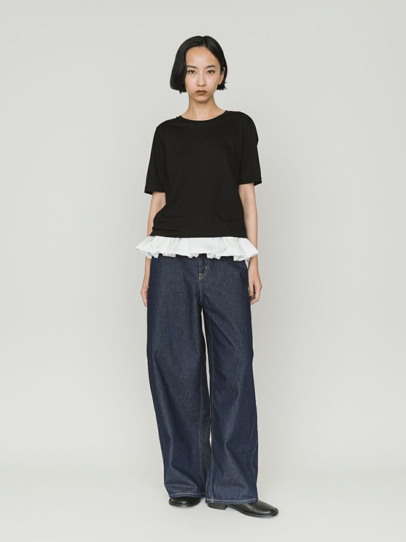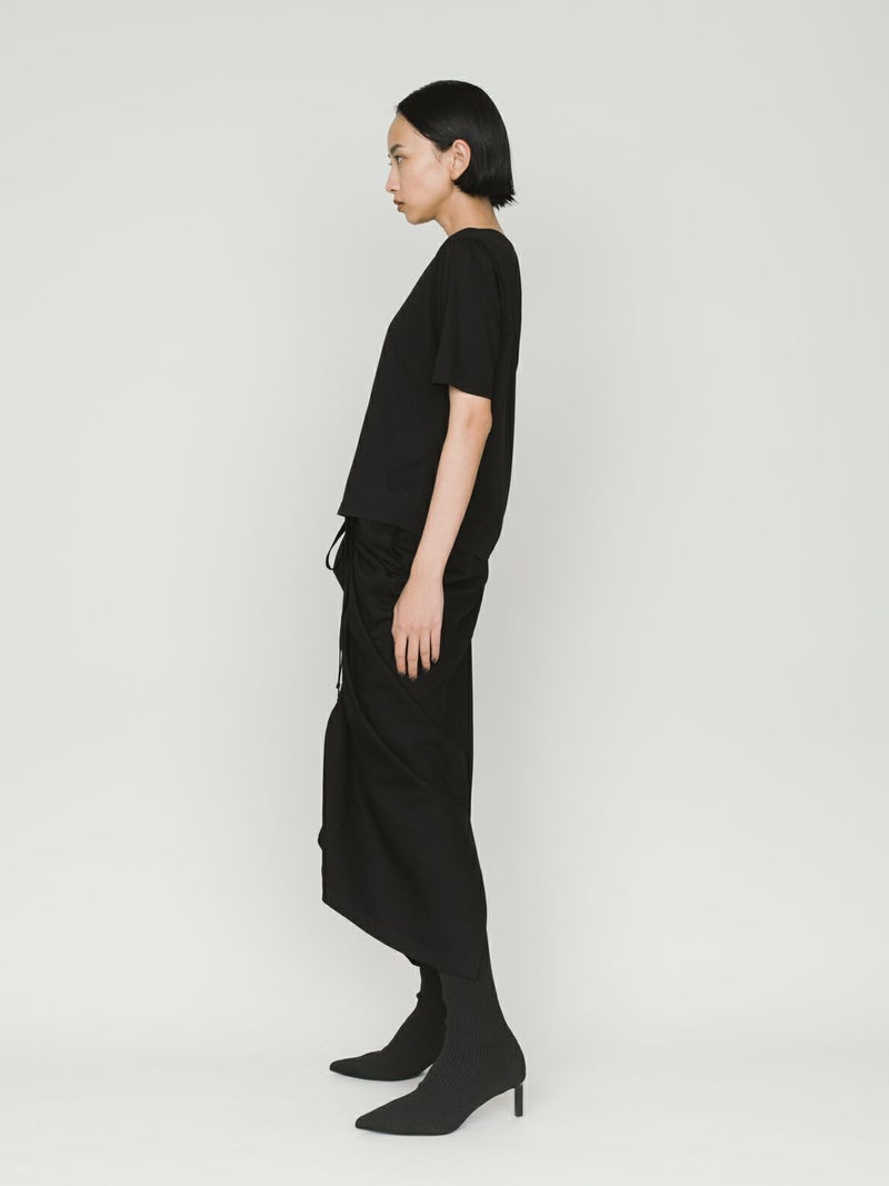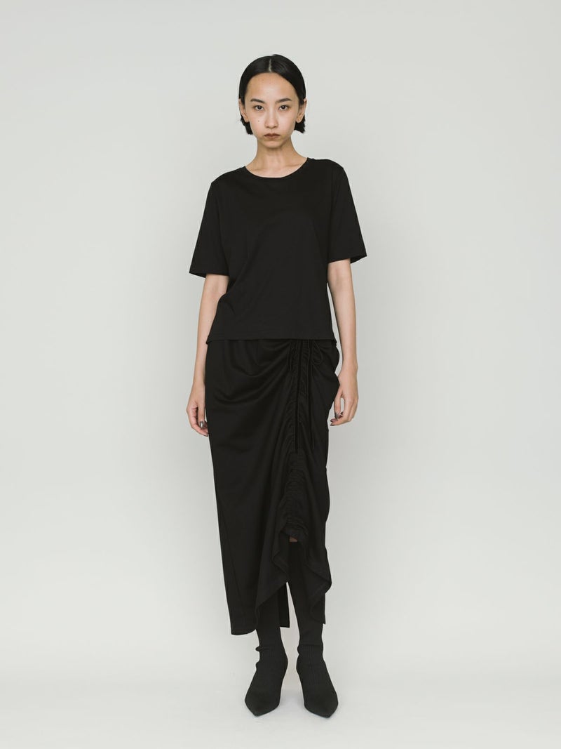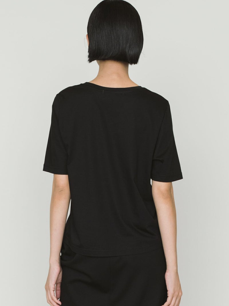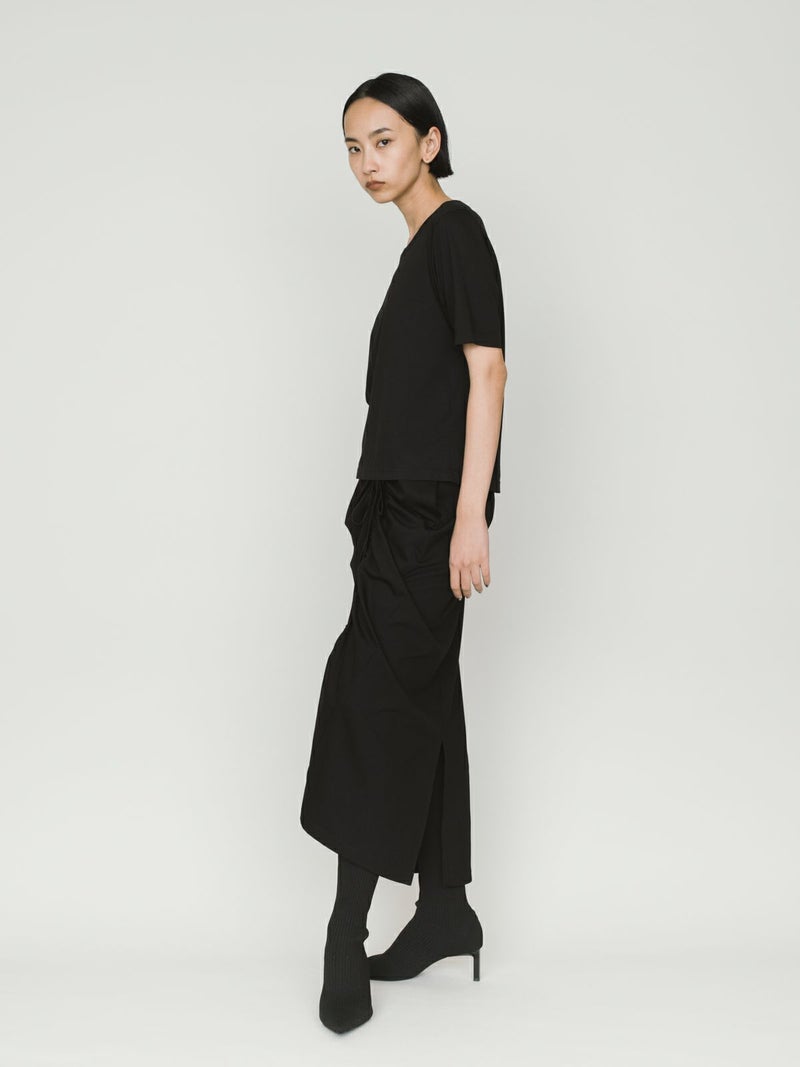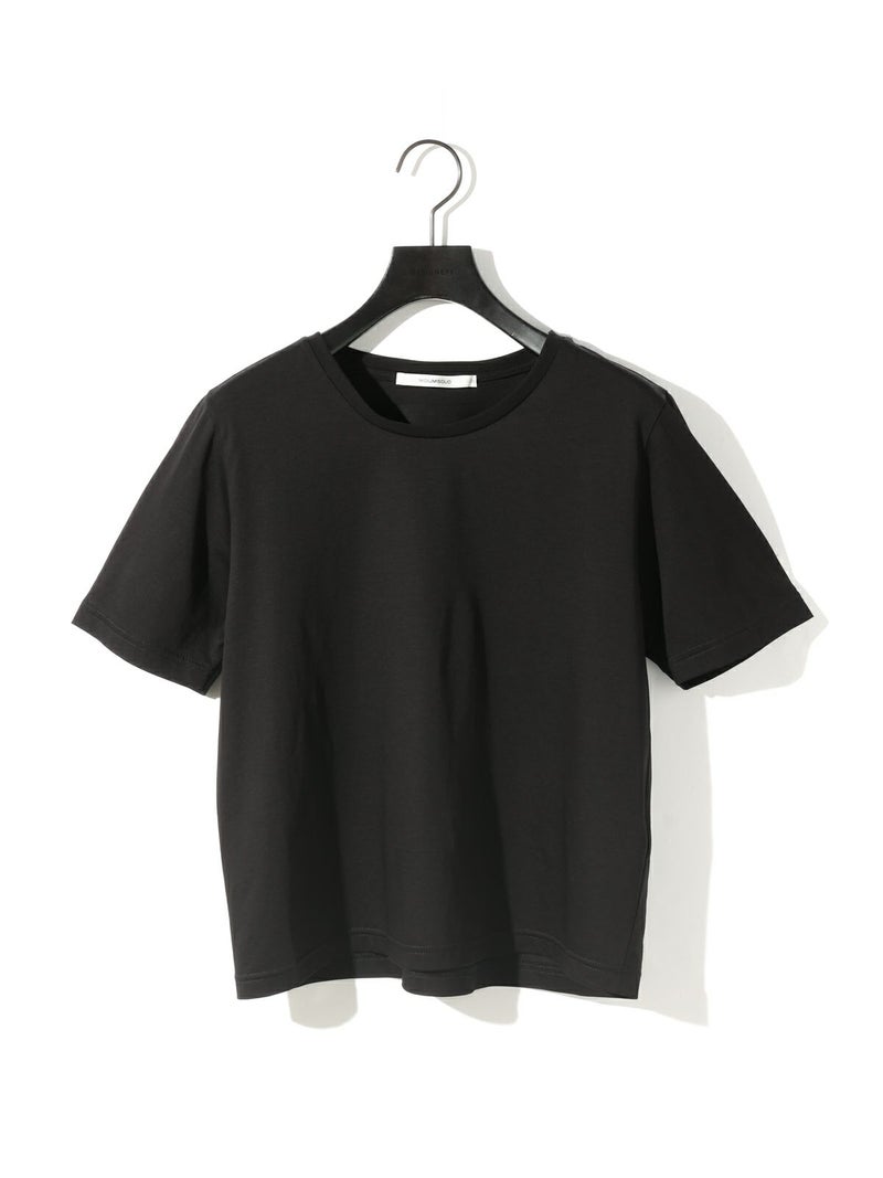 マイクロビスコース混、毛羽の少ない布帛ライクな素材が特徴のベーシックTシャツです。細いクルーネック部分は女性らしいデザイン仕上げ。身頃も着丈もシンプルなデザインなので着回しアイテムとして重宝します。カラー展開もあえてホワイトとブラックの2色展開です。晩夏の季節の変わり目で着こなせる時期を調整しながら、春の温かくなっていく季節の移り変わりにコーディネートができる1枚です。