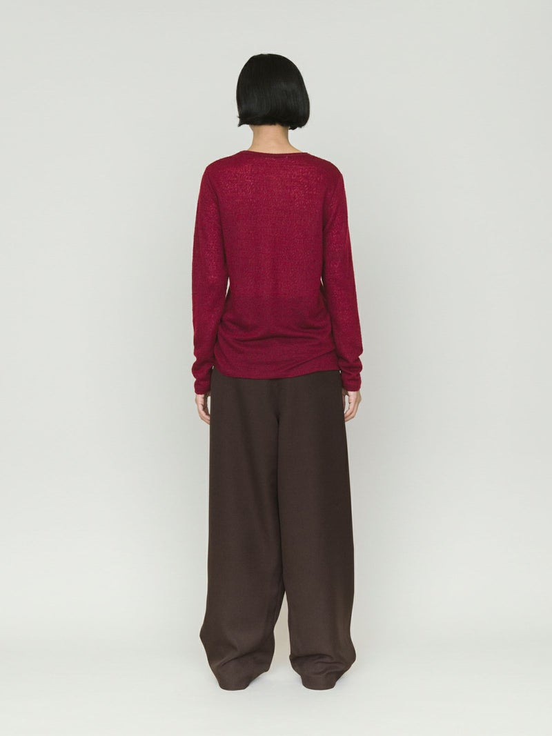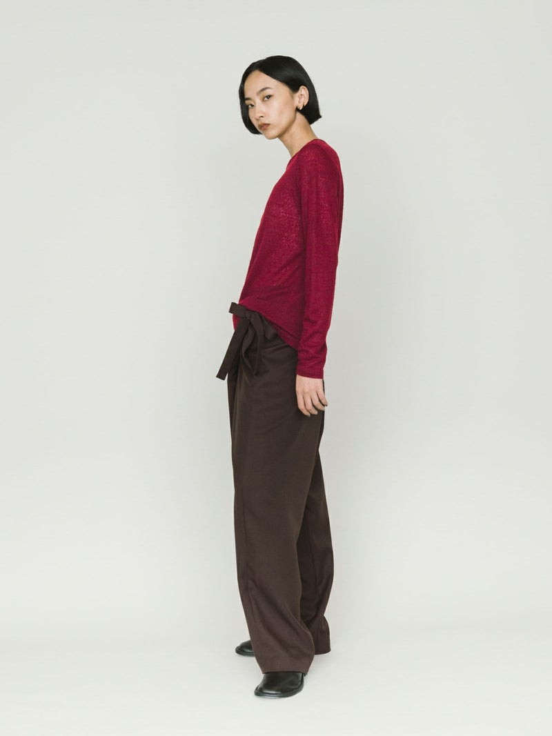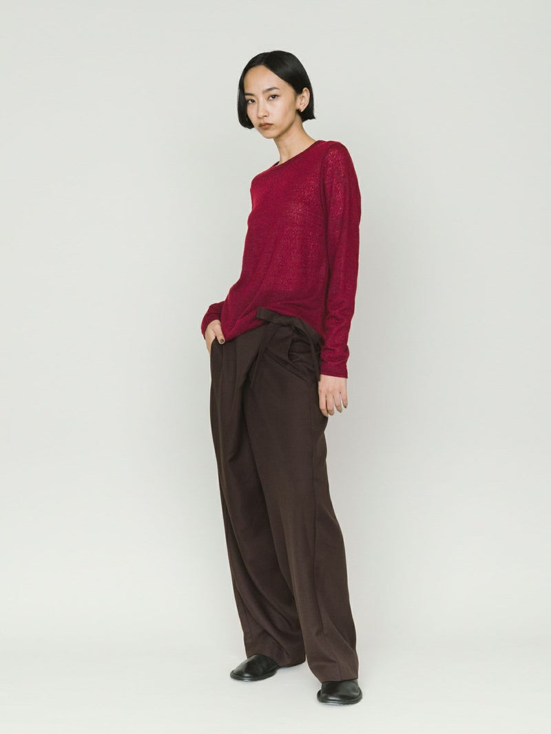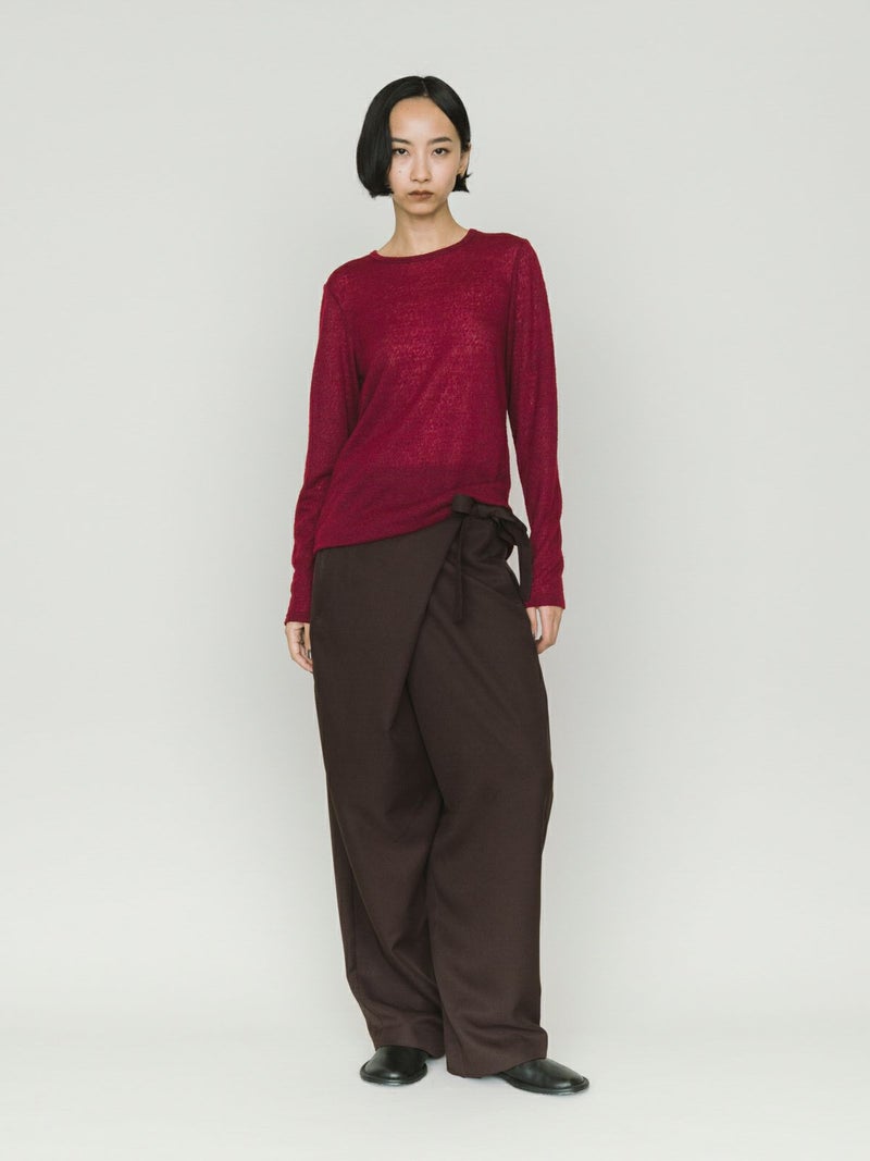 メリノウール混素材を使用したウールシアープルオーバーです。チクチクしないインナーとして着用していただけるカットソーです。クルーネックのシンプルなシルエットが特徴。ジャカード生地で雰囲気がありすっきりとした着こなしを演出します。透け感がありますが温かみがあるので寒い時期でも人気のシアーを取り入れやすい1枚です。