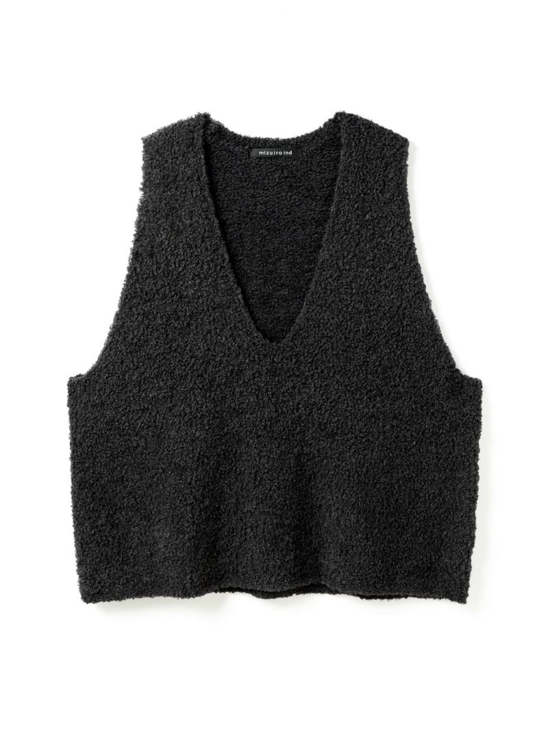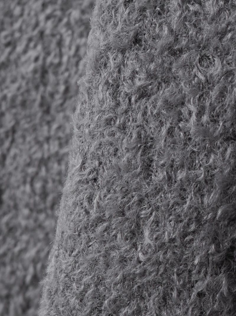プードル糸を使用したふわふわで立体感のある素材が魅力のヘアリーVネックベストです。見た目にも暖かみのあるベストで、インナー見えする深いVネックと袖を通しやすい広めのアームが特徴。昨年展開した同デザインベスト(3-220061)よりも少し短く仕上げました。ヒップの隠れる丈感でモコモコとした丁度良い肉厚感は、上からアウターも着用しやすいのがポイント。落着きのあるグレーとブラックの2色に加え優しい色合いのアイボリーを追加展開しました。同シリーズ3-220100/ポケット付きヘアリークルーネックカーディガンも展開。mizuiro ind人気のベストアイテムで秋の着こなしをいち早く演出できる1枚です。