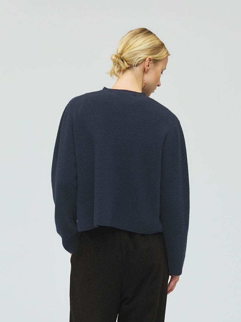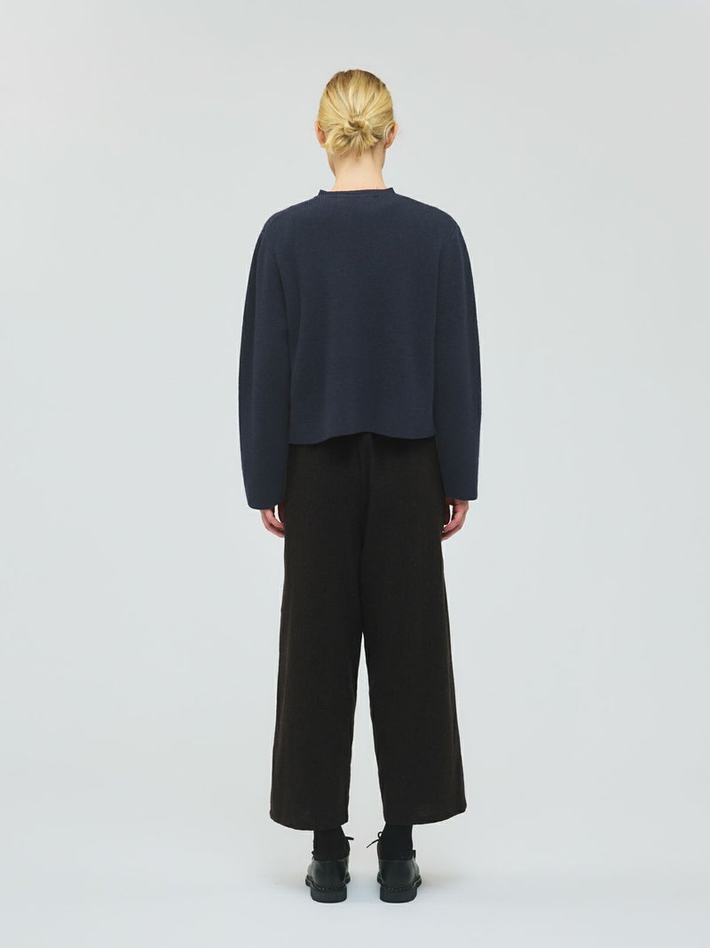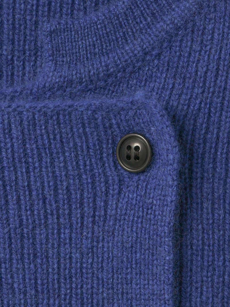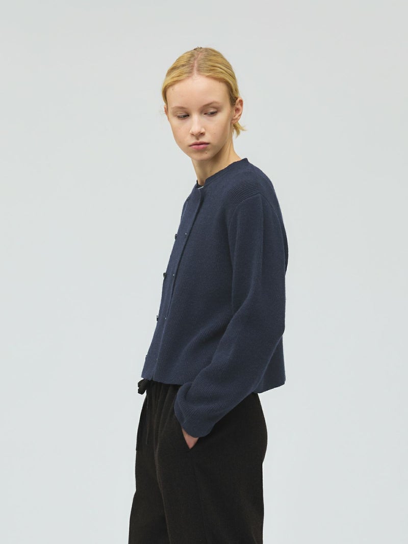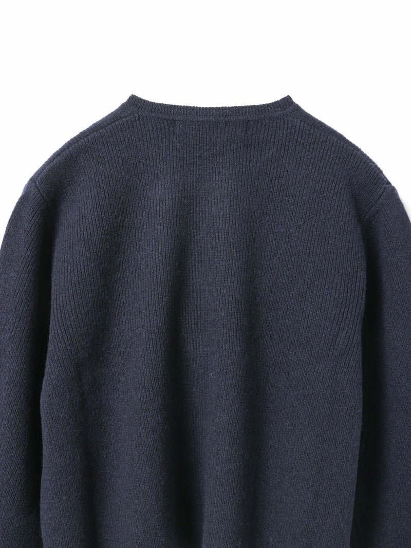 シェットランドウールのような、ふっくらとした生地感が特徴のダブルブレストカーディガンです。ダブルブレストの重厚感があるデザインは、クラシックで清楚な雰囲気を印象付けています。ウール100%でウォーム感のある大変温かな1枚で、寒い時期に重宝できるアイテムです。ボタンを開けても閉めてもよく、並列に並んだボタンの配置が特徴。ヒップ上のすっきりとした身丈でボトムともバランスよく着こなすことができます。手洗い可能なニット生地の羽織りアイテムとなっています。