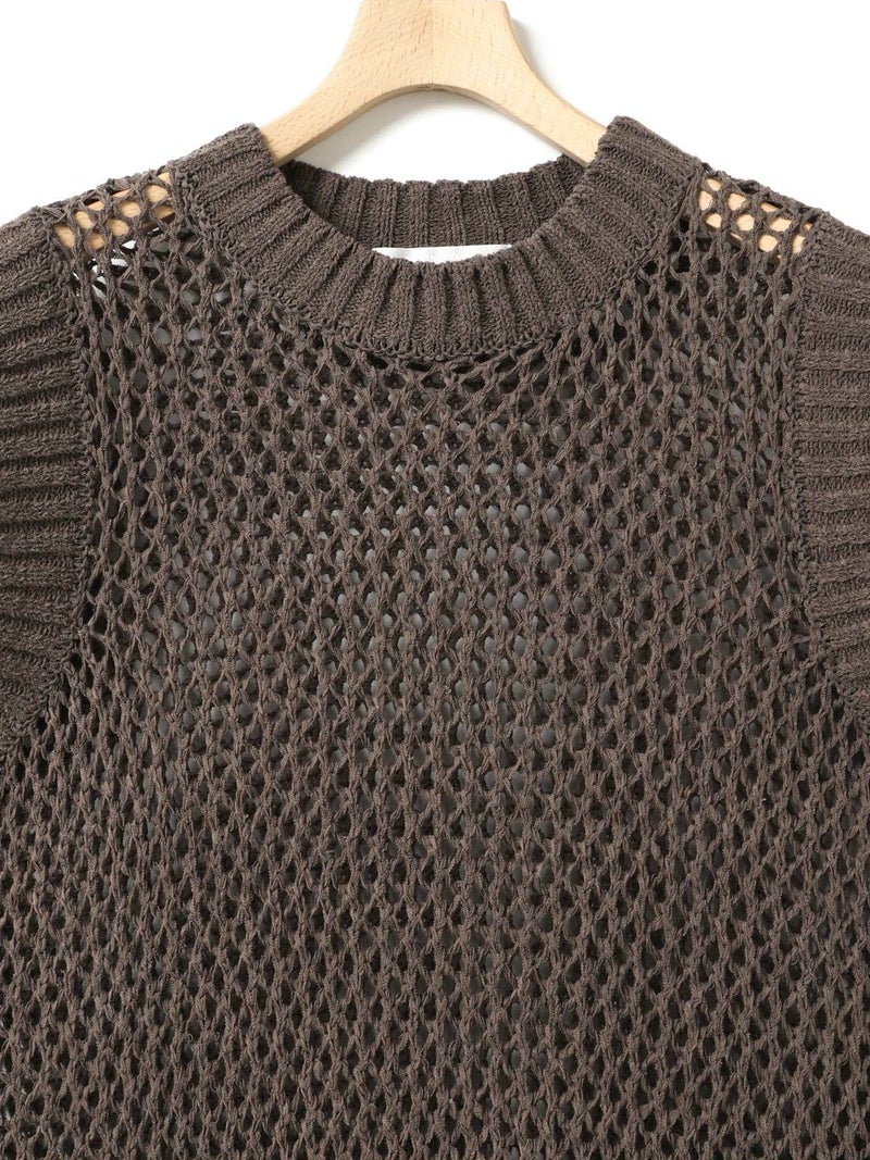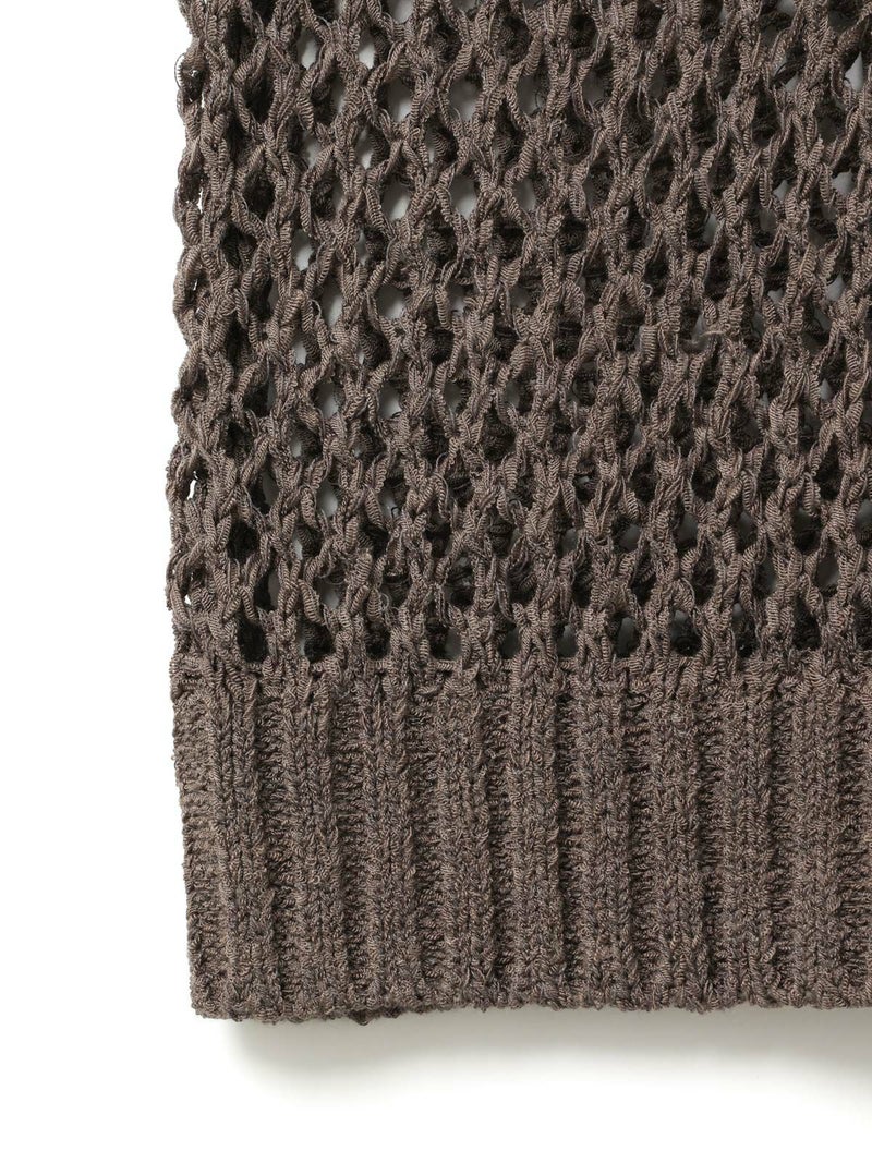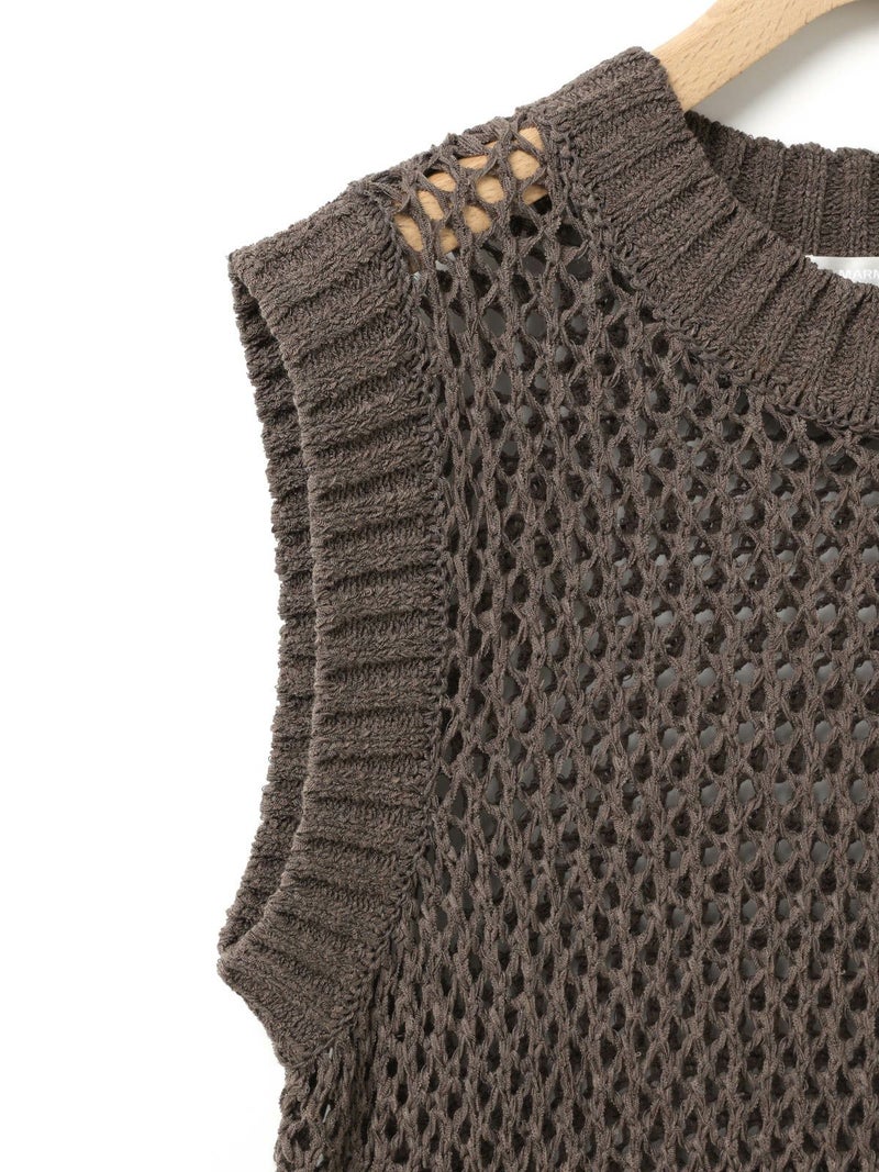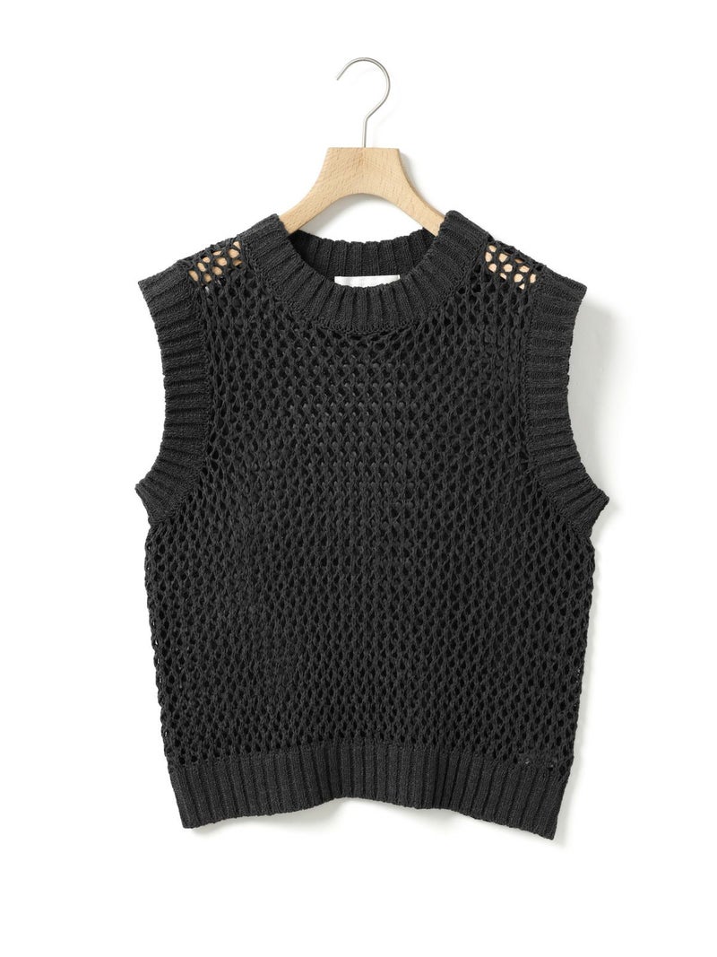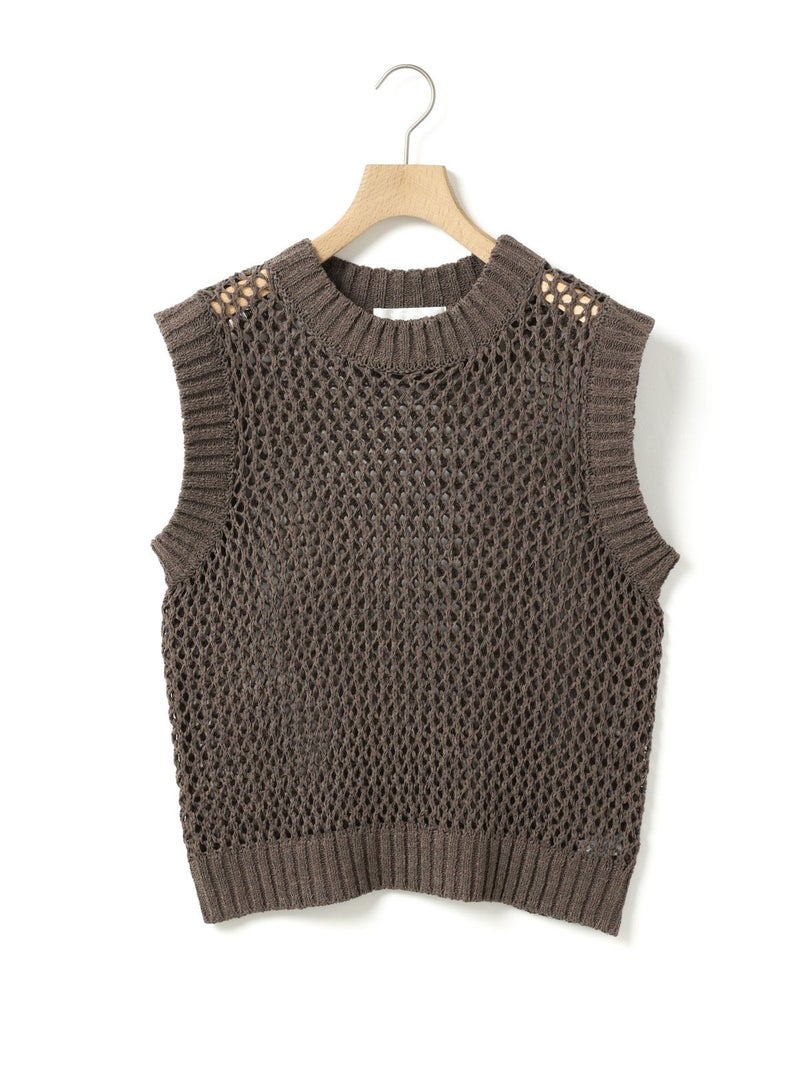 テープヤーン(意匠糸)を使用したテープヤーンメッシュベストです。ざっくりとしたメッシュ編みにすることで、清涼感があり1枚で存在感があるニットを表現しました。どのアイテムとコーディネートしても合わせやすいシンプルなデザインなので、季節の変わる時期のコーディネートにおすすめ。合わせるインナーによって長く着用していただけます。首元と袖口は太目のリブ仕上げ。柔らかくて軽さのあるニット地で着心地の良さも体感していただける1枚です。同シリーズ3-820047/テープヤーンメッシュプルオーバーも展開。
