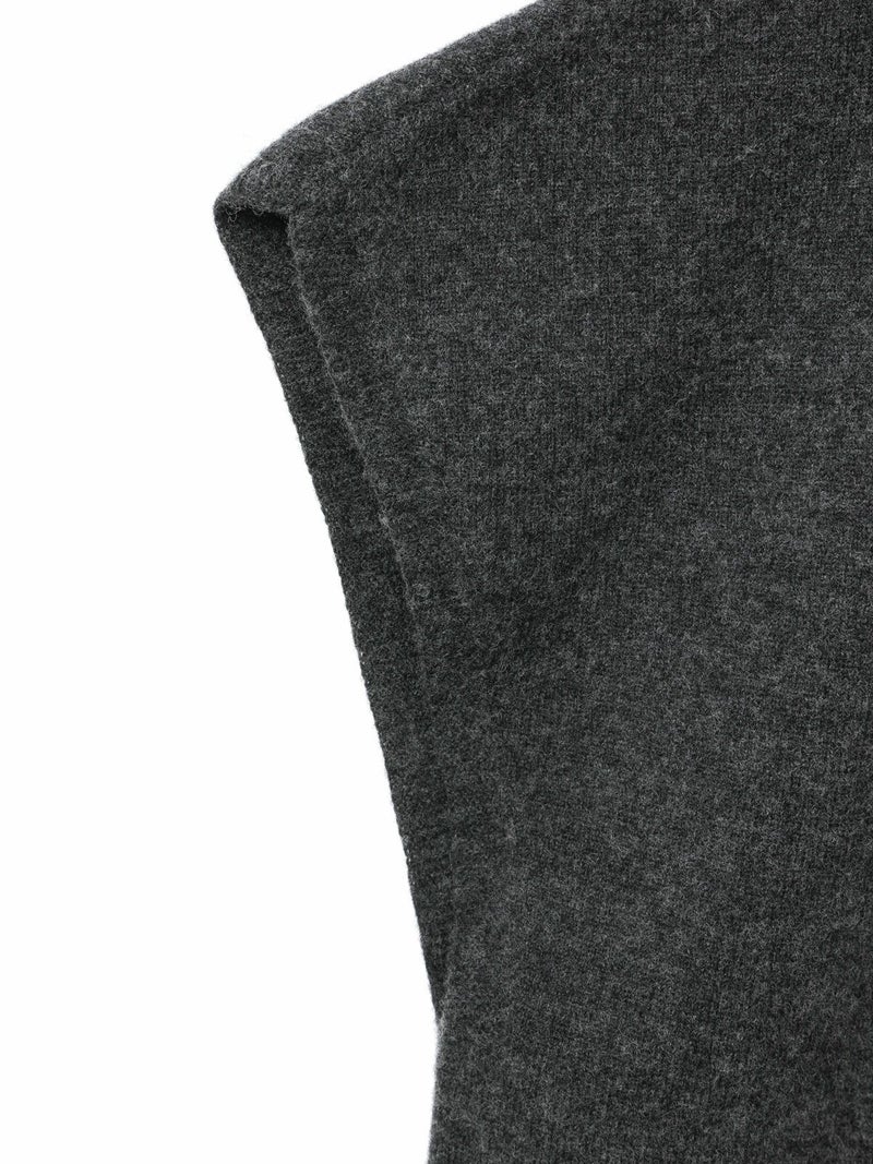 レイヤードアイテムにお勧めのノースリーブVネックプルオーバーです。ウール×ナイロンにカシミヤが入ったことで柔らかい生地感を体感していただける1枚です。重ね着がしやすいワイドサイズでヒップまで隠れる丈を表現。前後Vネックをデザインした首元もポイント。ベーシックなライトグレーとチャコールグレーの2色展開に絞っています。同シリーズ4-720049/リブハイネックニットプルオーバーも展開。