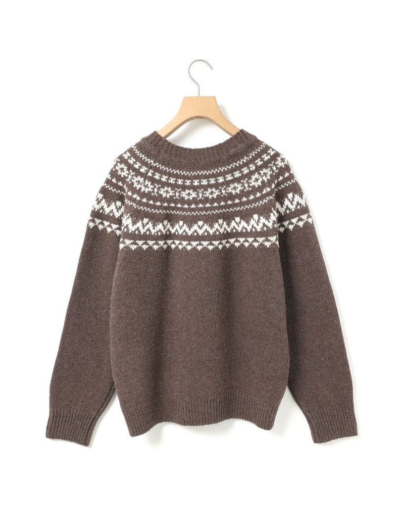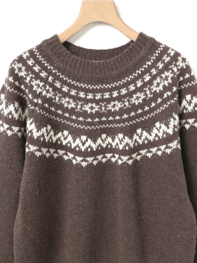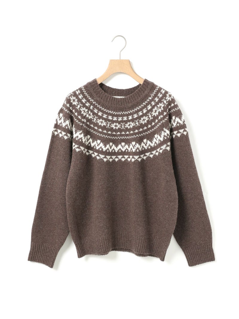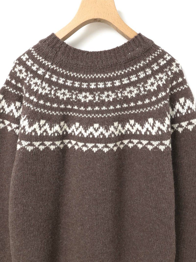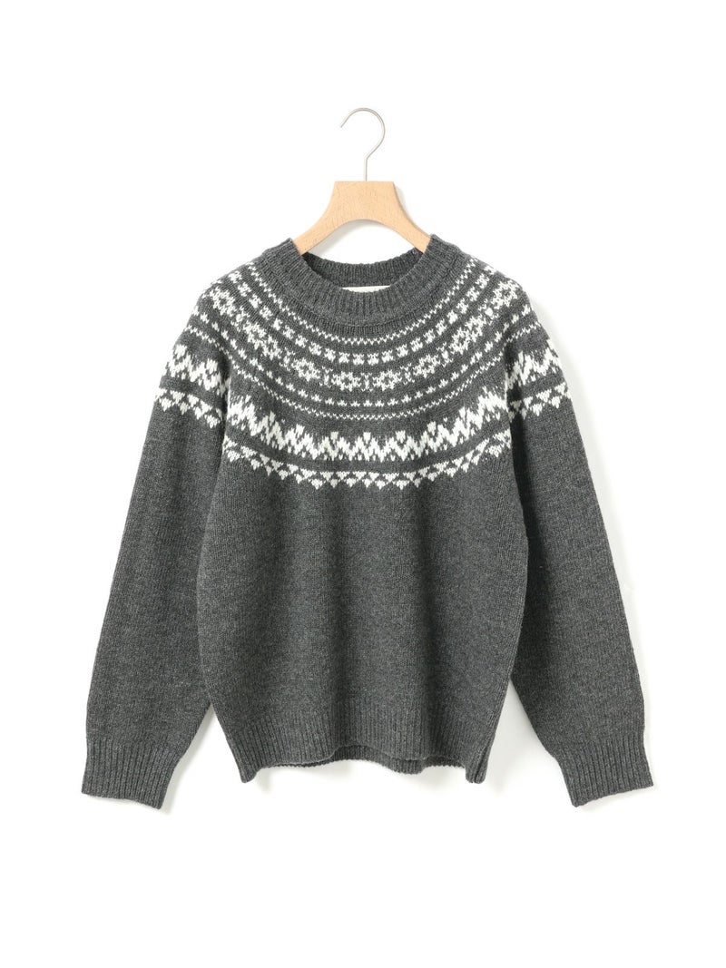 手編み風のざっくりとした風合いが魅力のノルディックニットプルオーバー。単色ながらも一部に特殊な糸を使用することで、立体感と奥行きのある表情に仕上げました。冬の定番・ローゲージのノルディック柄が印象的で、白の柄が映えるチャコールグレーとブラウンの2色展開です。ほどよくジャストなサイジングで、シャツをインしたレイヤードスタイルもおすすめ。デニムからスカートまで幅広いボトムに合わせやすく、寒い季節をあたたかく包み込む一枚です。同シリーズ4-729980/ノルディックニットカーディガンも展開中。