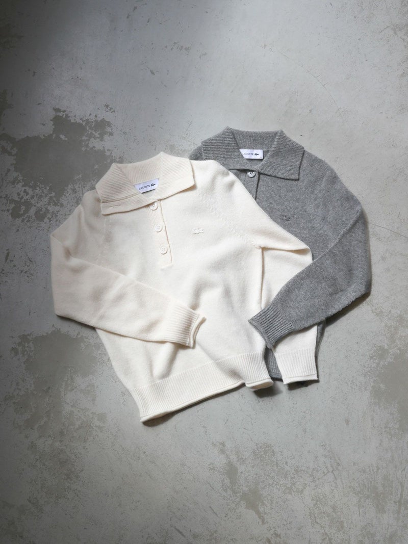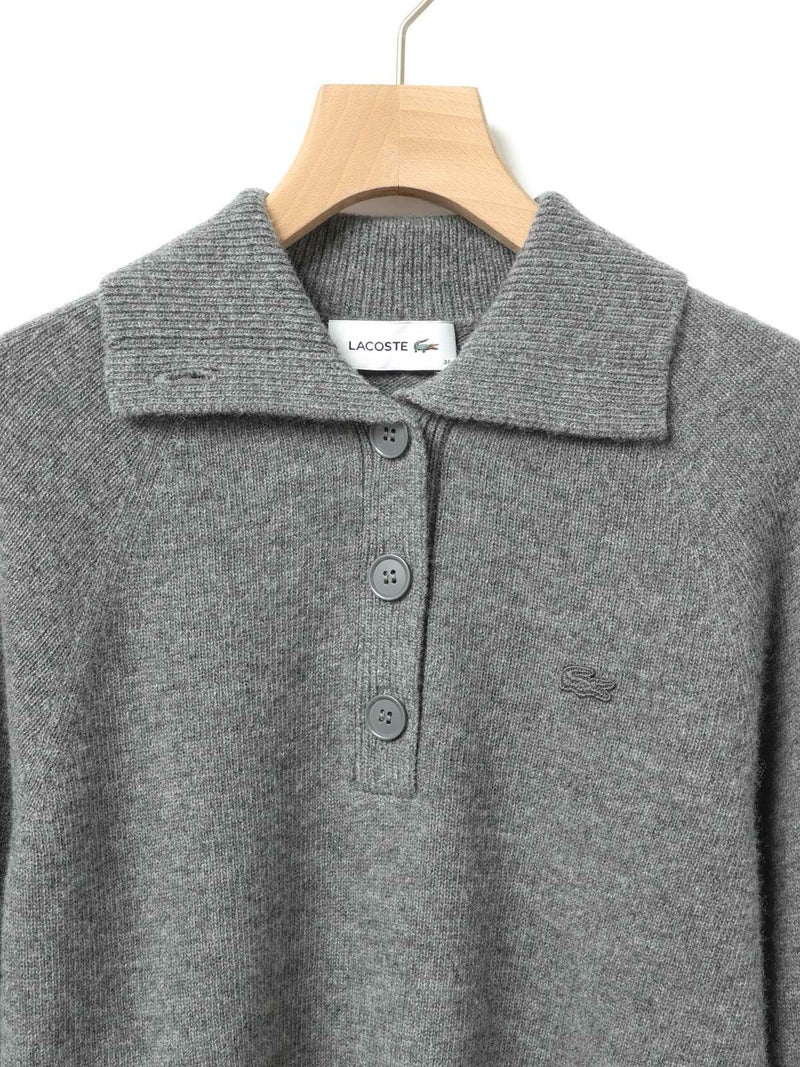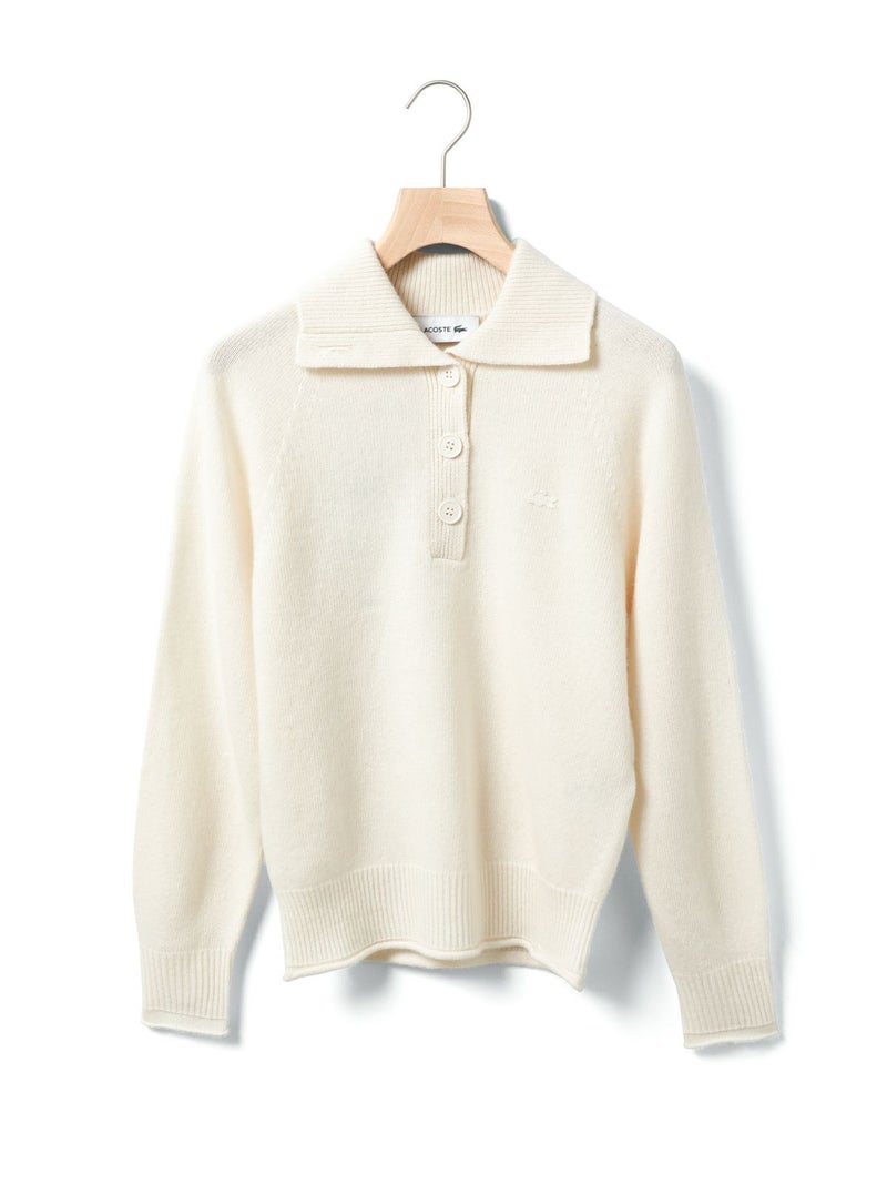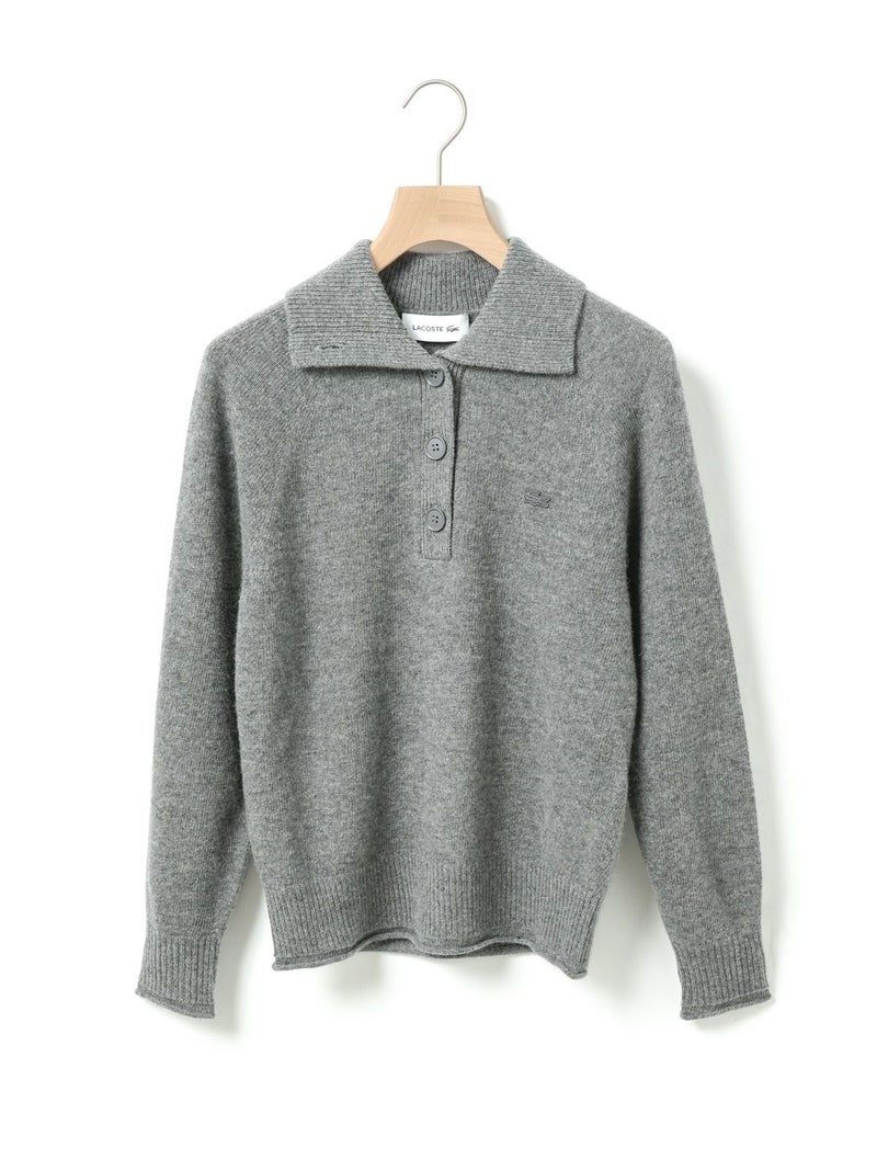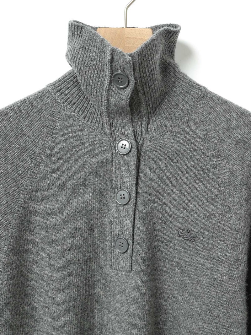 立ち襟リブと大きめボタンがアクセントのハーフボタンハイネックセーター。肉厚で温かみのある風合いが魅力の一枚です。袖口・裾口には切りっぱなし風のディテールを取り入れ、こなれ感のある仕上がりに。胸元にはボディと同色のワニロゴパッチをさりげなく配しています。