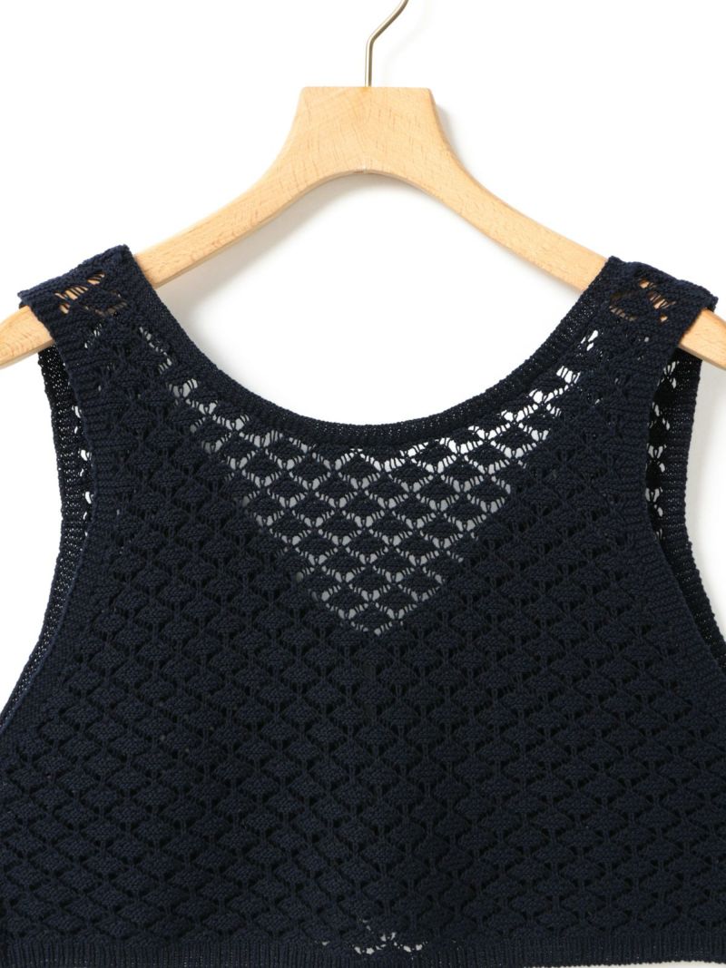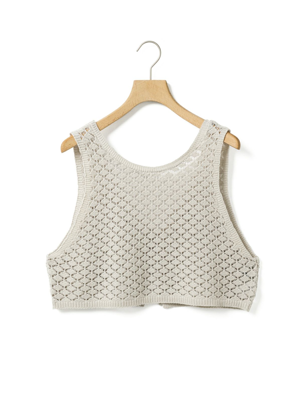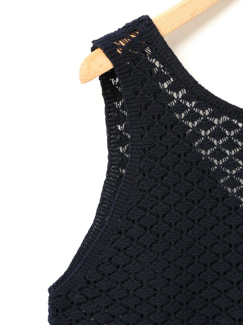 少しシャリ感のあるコットン糸を使用した2WAYショートニットベストです。前後で着用いただけるニットベストで、リボンの可愛さとベーシックなデザインを合わせ持った魅力的なベストです。着こなしによってベストの前後をどちらにするかで雰囲気の変化を楽しんでいただけます。鍵編みの透け感はインナー見えしてくれるので色・柄によって素敵な重ね着を演出してくれます。コンパクトなサイズ感に仕上げており、アクセントとして色々なアイテムにコーディネート可能。通年通して着用いただける素材です。