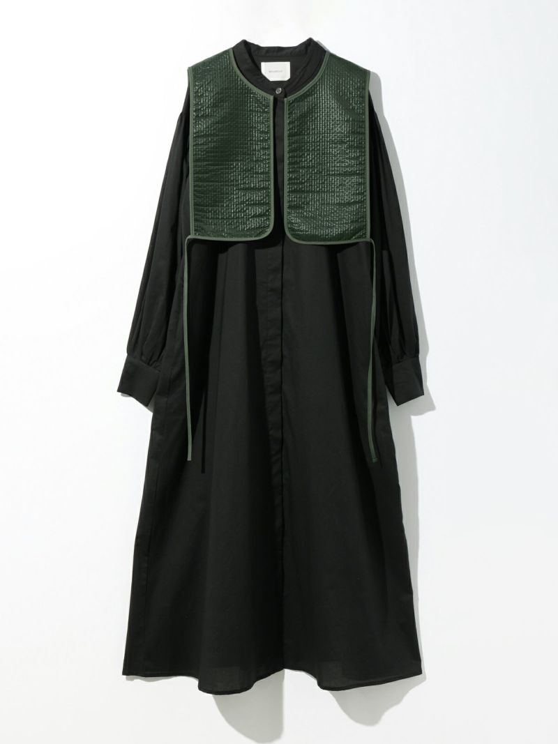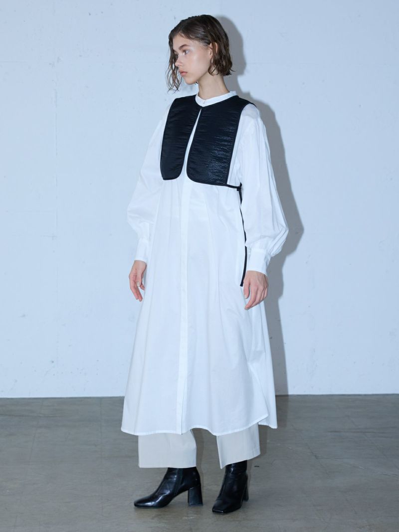 キメが細かく、透け感が抑えられたソフトな肌触りが特徴の60ローン素材を使用したベスト付きロングシャツワンピース。コレクションラインの素材を使用したインパクトのある取り外しヨークがポイント。別々で着用可能。ワンピースは1枚でも着られるデザイン性のあるボリューム袖が魅力的。身頃はスッキリ縦長なシルエットを表現しています。雰囲気の異なる3色で展開。