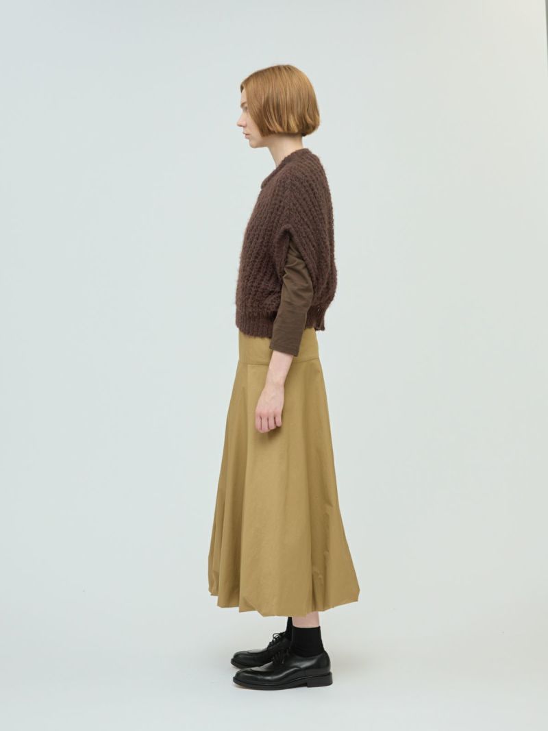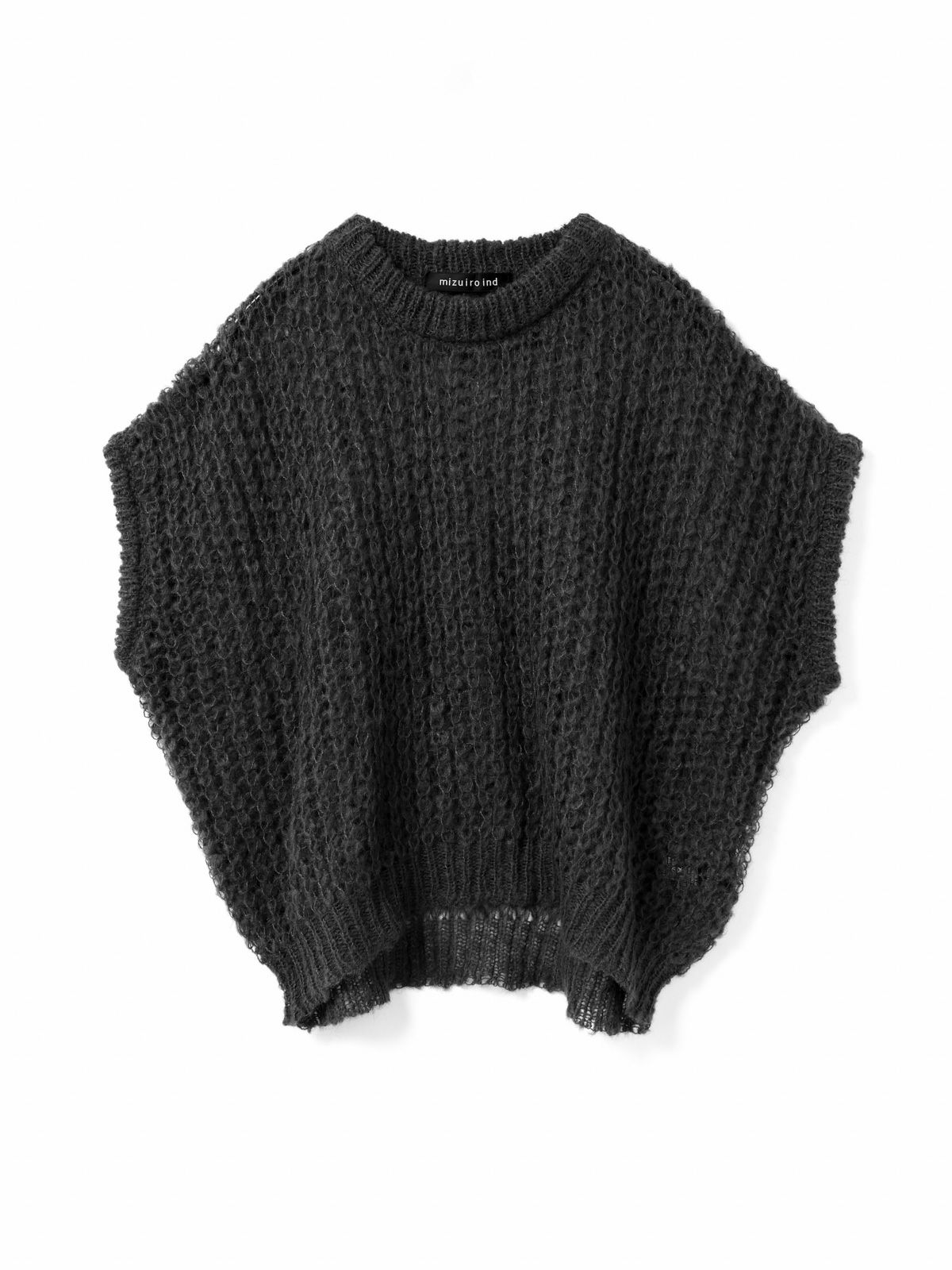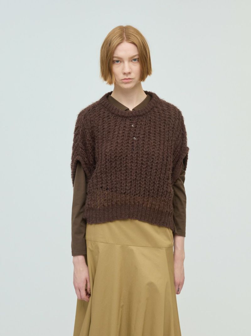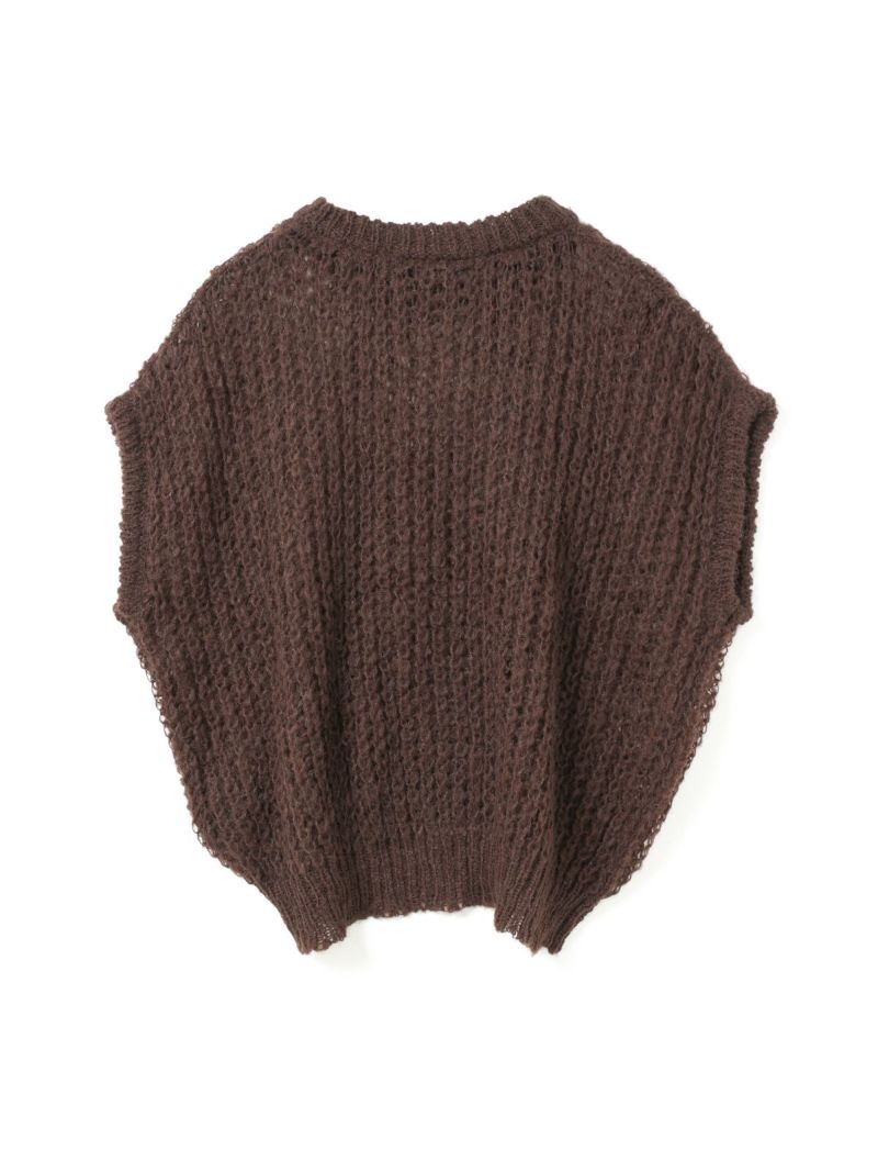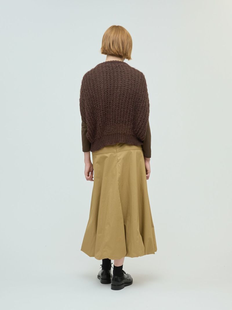 甘撚りのモヘヤ糸でふっくらと編立たヘアリーコクーンワイドベストです。ポリエステル生地を使用したウールライクな1枚。今季mizuiro ind人気のアイテムになりそうなコクーンシルエットのベストアイテムで、モードな雰囲気も演出します。編み方が大き目なので透け感があり重ね着を楽しんでいただけます。お洗濯可能なのもポイントです。