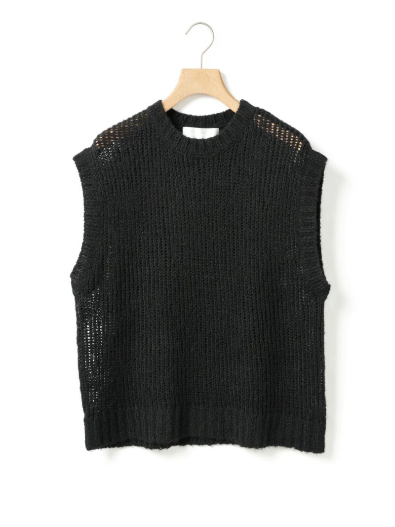 起毛素材を使用したシアーニットベスト。複数の色糸がミックスされた表情豊かな糸を用いてざっくりと編み上げたメッシュニットベストです。これまで短丈が多かったニットアイテムと異なり着丈、身幅共に全体的にオーバーサイズに仕上げました。インナーにはシャツやカットソーなど様々なアイテムを組み合わせてお愉しみいただけます。起毛素材を使用しているのでメッシュ編みでも温かく、非常に軽い仕上がりとなっているので着用のストレスも少なく快適に着用いただけます。春先まで着用することを想定した商品の為、カラー展開はベーシックカラーに加えてこれまであまりやってこなかった色味のパープルやグリーンなど春らしい明るいお色を展開しております。是非、春に向けたアイテムとして先取りしてみてください。