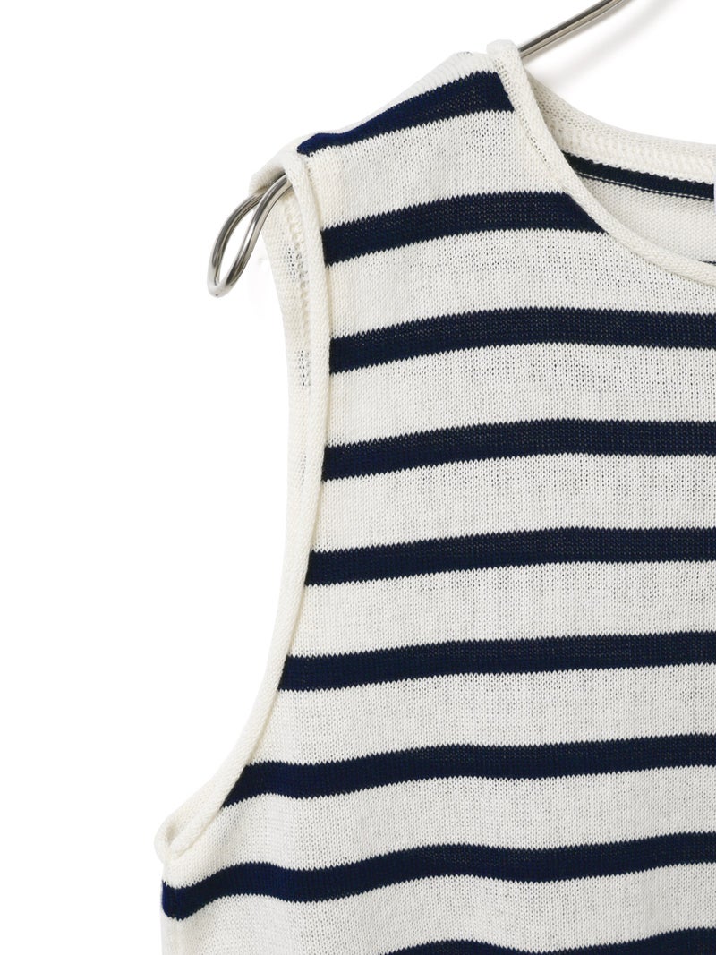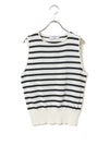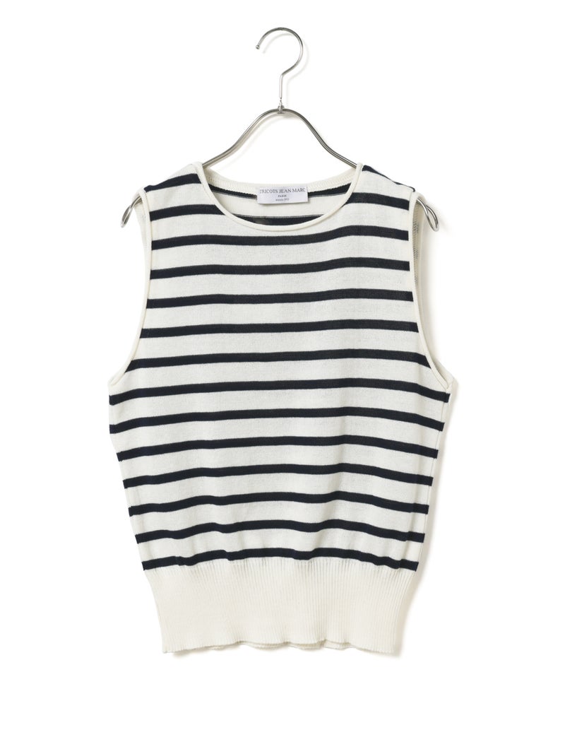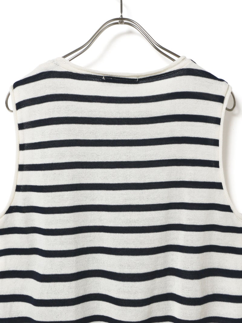 これからの季節に心地よく着られるボーダーニットベスト。コットンとポリエステルを使用した軽やかな着心地で、さらりと着用できる一着です。シンプルなボーダーデザインで、シャツやカットソーとのレイヤードにも活躍します。フランスで丁寧に生産されています。