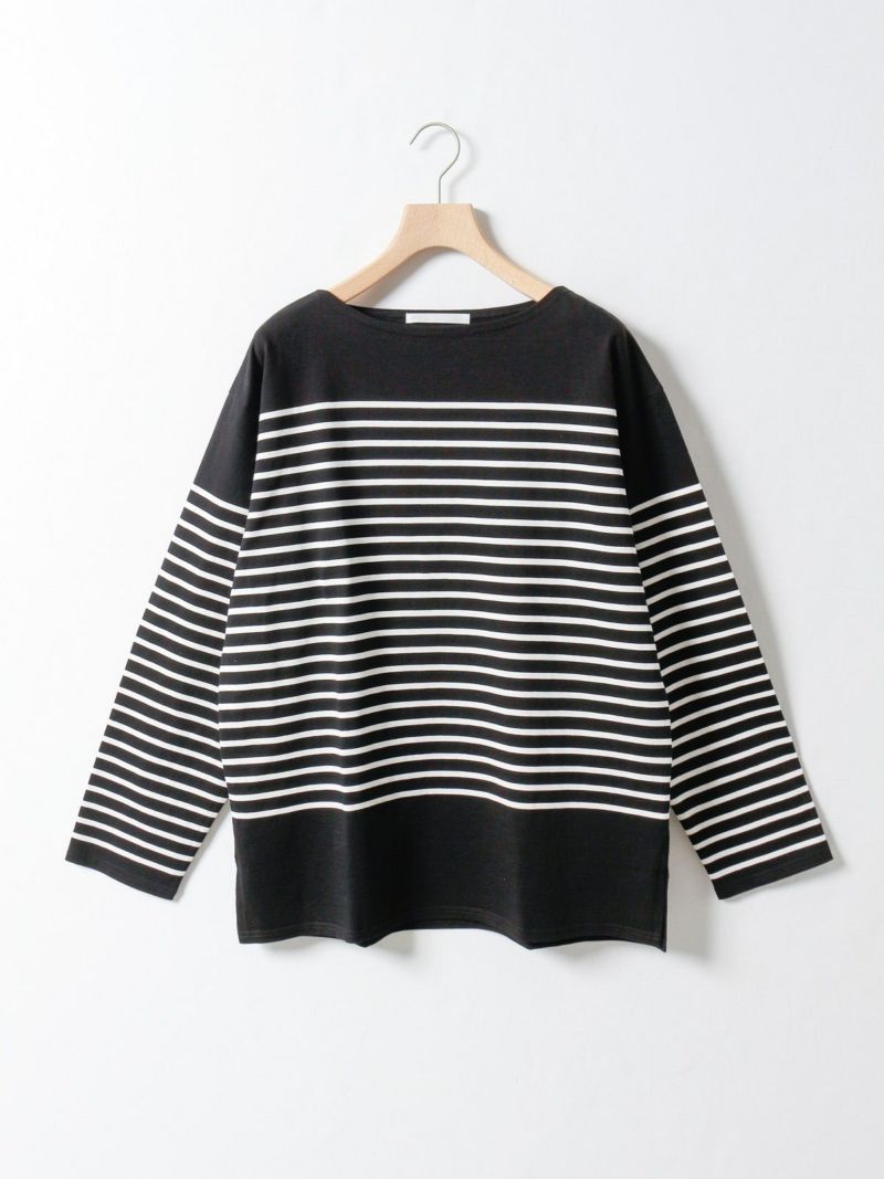 無地とボーダーで切り替えられたパネル状の生地を使用したパネルボーダープルオーバーです。メンズライクなワイドバスクシャツでカジュアルの定番として愛用できる1枚。洗濯で縮むものもあるバスクシャツですが、あらかじめ洗いをかけてひと手間を加えプレスで仕上げているMARMARMARのこだわりポイント。洗濯を繰り返しても購入時と変わらぬサイズ感を持続します。左袖口に施した‘M’の刺繍もさりげなくて魅力的。女性らしいボトムとの組み合わせやシャツに合わせるなど、トラッドな組み合わせがお勧めです。