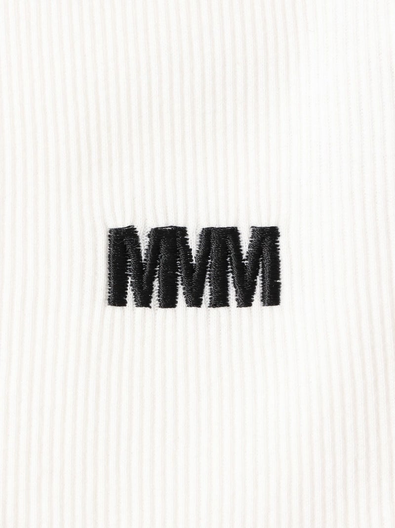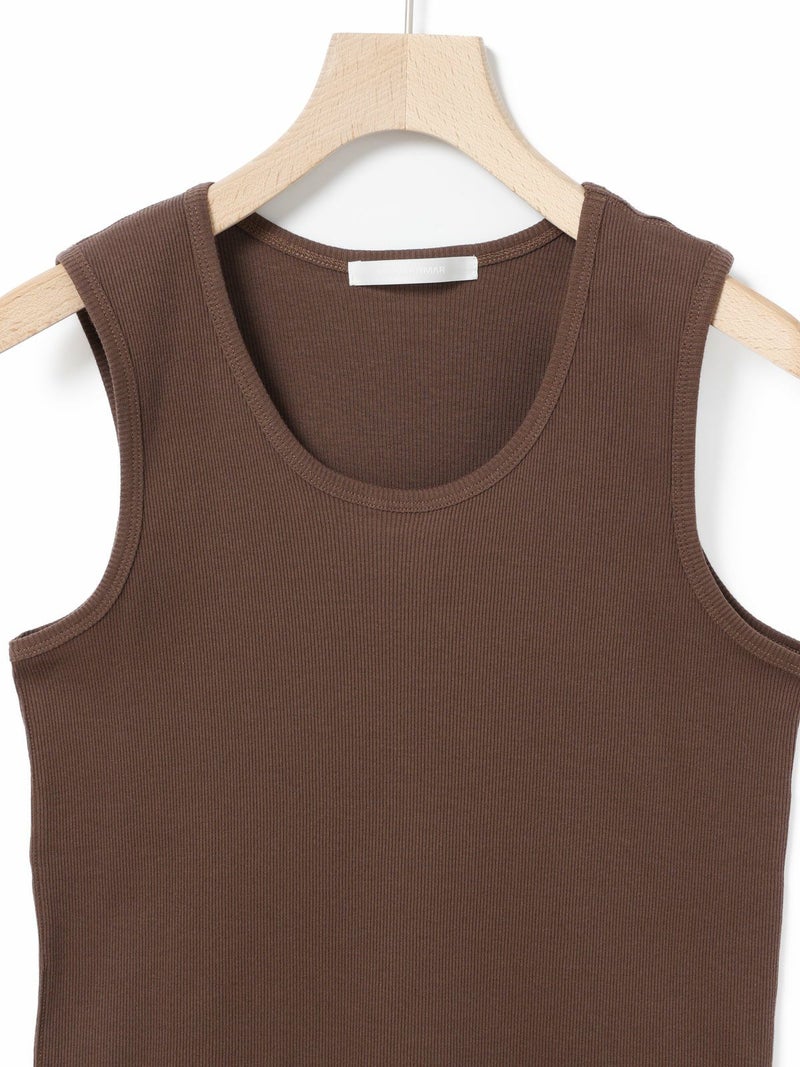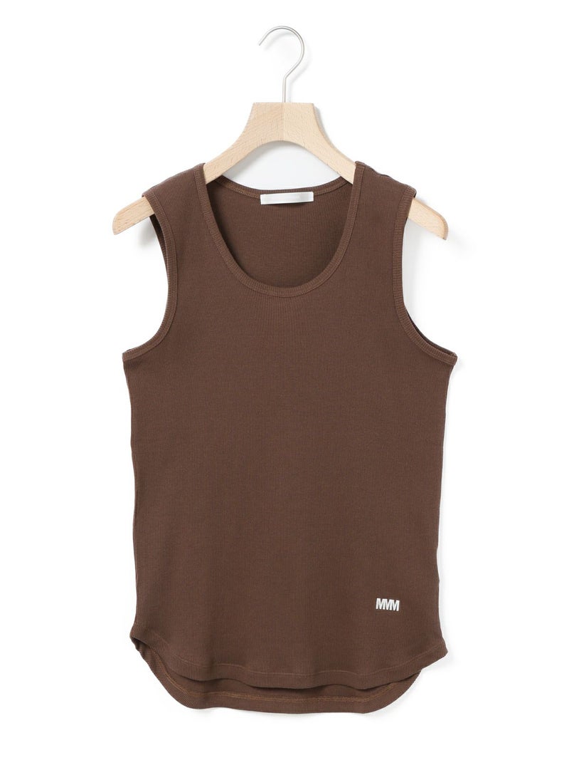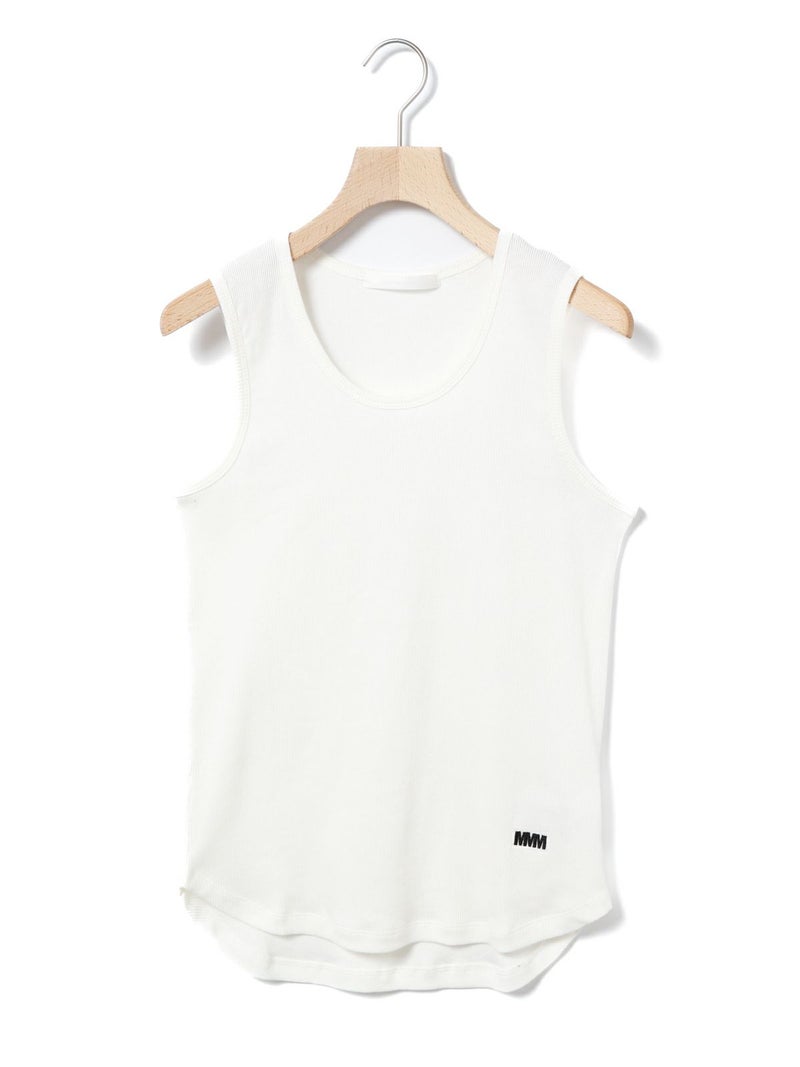 肩線の幅などを少し太目に設定し1枚着でも着れるくらいの下着感のないアイテムに仕上げたベーシックタンクトップです。ダブルのジャケットの下にインナーとして着てもらっても良いですし、勿論1枚でスラックスやワイドなイージーパンツに合わせて恰好良く着ていただくのもおすすめ。左前裾に施された”MMM”の配色刺繍もポイント。生地はしっかりとしたテレコリブを使用。