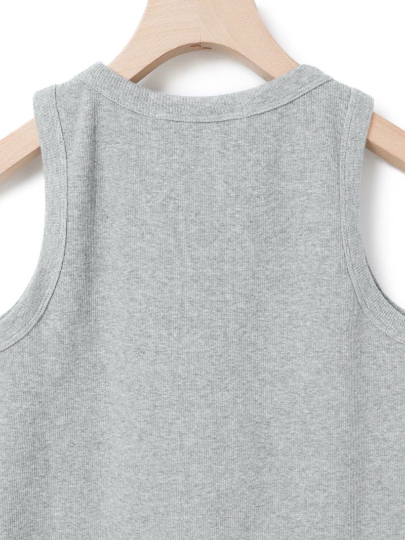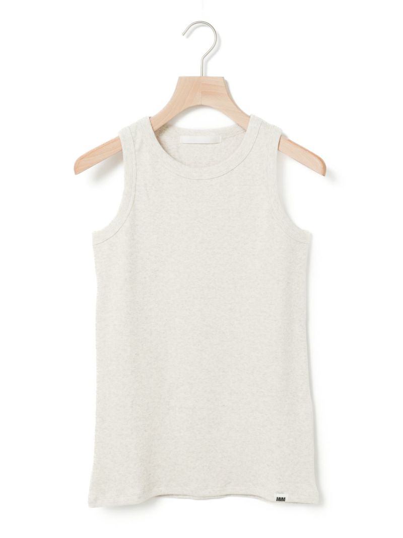 1枚で着用してもカッコよく着られるように素材感とネック周り、アームホールのシルエットに拘ったアメリカンスリーブタンクトップです。中肉のしっかりめのリブ素材で透け感を気にせず着用していただけます。また、テンションがあるためピッタリ目でもラクにインナー使いとしても着まわせるアイテムとなっています。裾はピスネームがさりげないデザインポイントに。