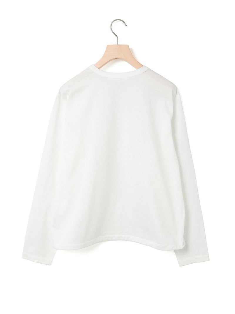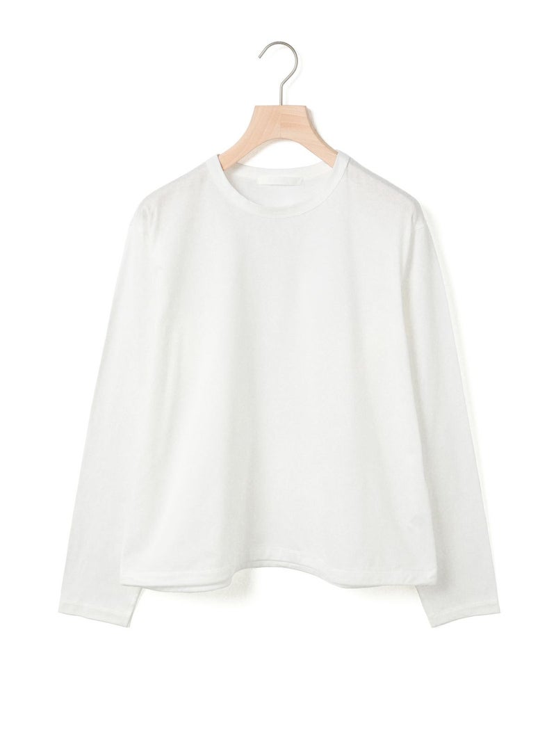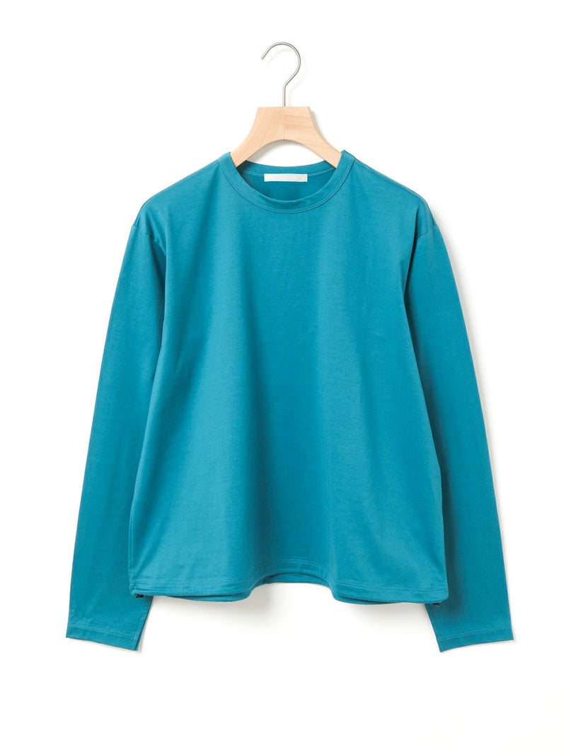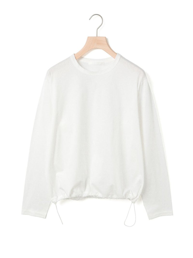 春から活躍するシンプルかつ遊びを効かせたドローストリングヘムロングスリーブTシャツです。見た目はシンプルなロンTですが、裾にドローコードが入っておりその時々の気分で裾にギャザーを寄せてデザインの変化を楽しむことができます。袖口にはスリットを施しているため女性らしく着用していただけます。ギャザーを寄せない時は少し裾に向かって広がる形になっており、シンプルなトップスとしてお使いいただけます。コットン100%のシルケット天竺、スーピマコットンを使用した絹のような風合いとしなやかさのある生地が特徴。1-810037A/ボーダーも展開。