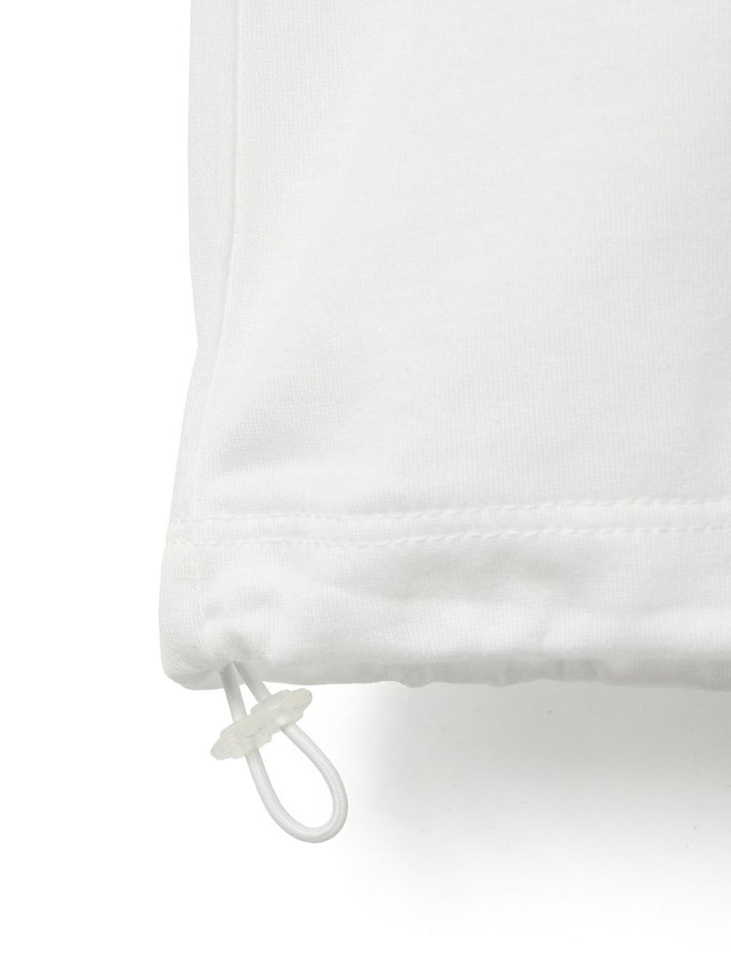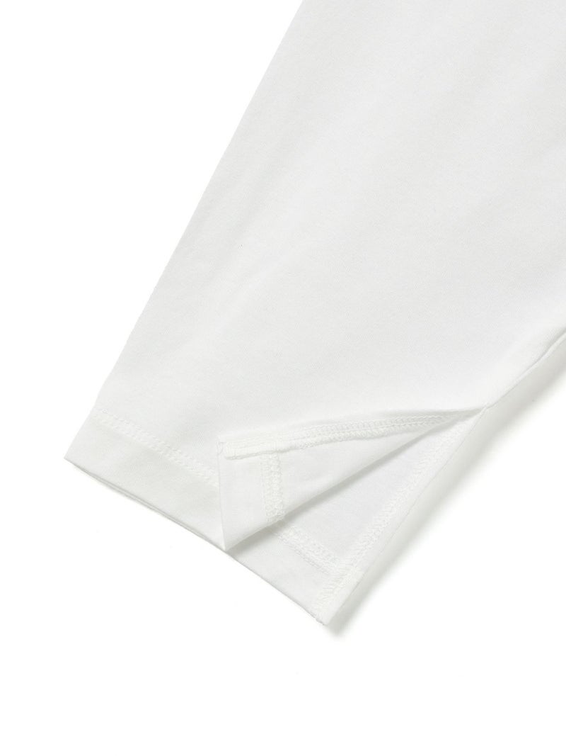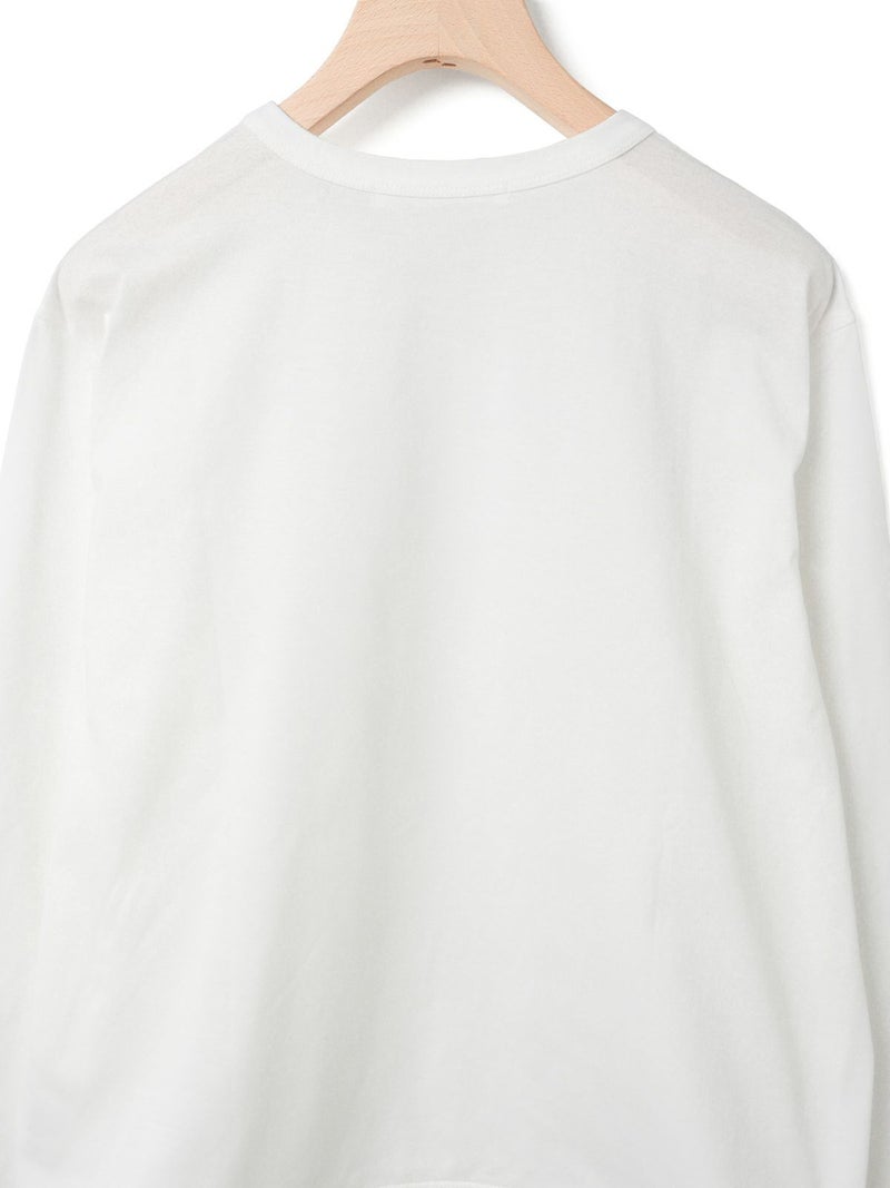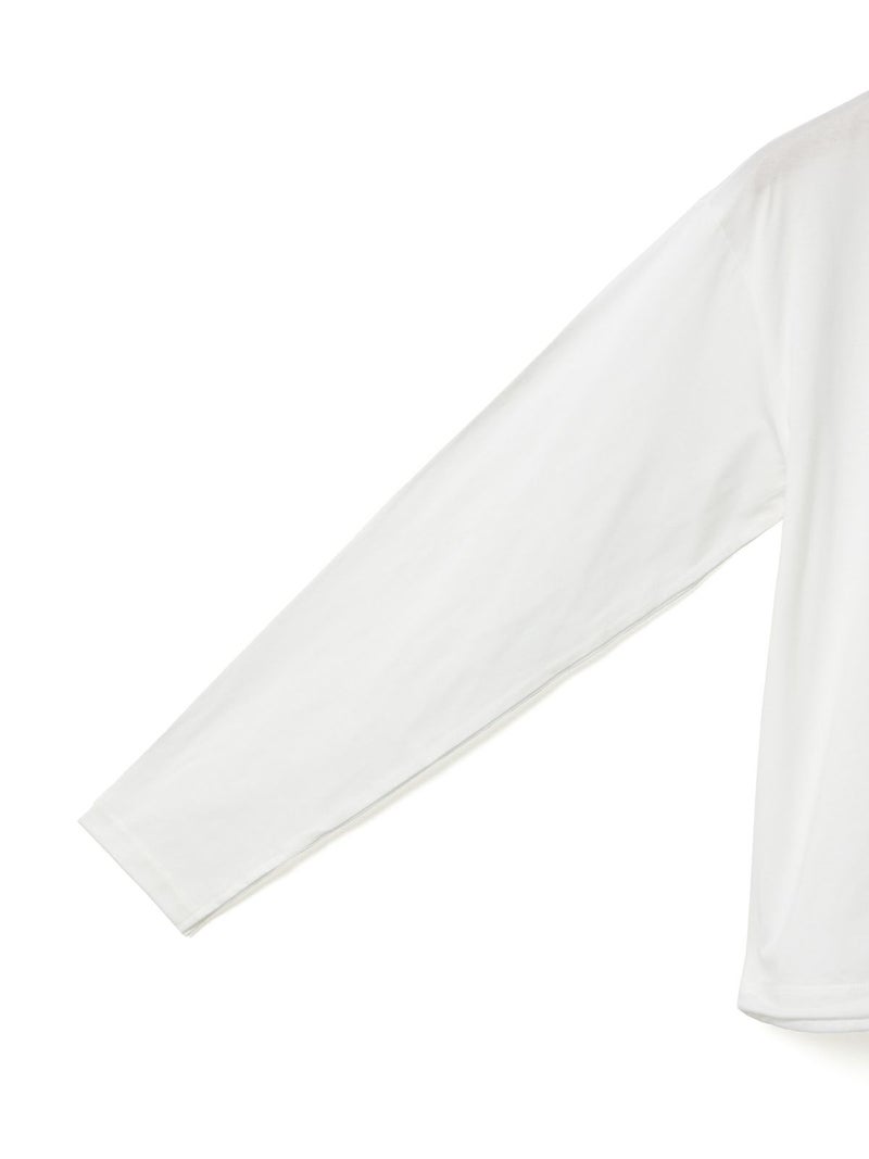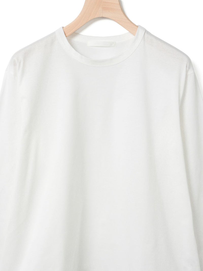 春から活躍するシンプルかつ遊びを効かせたドローストリングヘムロングスリーブTシャツです。見た目はシンプルなロンTですが、裾にドローコードが入っておりその時々の気分で裾にギャザーを寄せてデザインの変化を楽しむことができます。袖口にはスリットを施しているため女性らしく着用していただけます。ギャザーを寄せない時は少し裾に向かって広がる形になっており、シンプルなトップスとしてお使いいただけます。コットン100%のシルケット天竺、スーピマコットンを使用した絹のような風合いとしなやかさのある生地が特徴。1-810037A/ボーダーも展開。