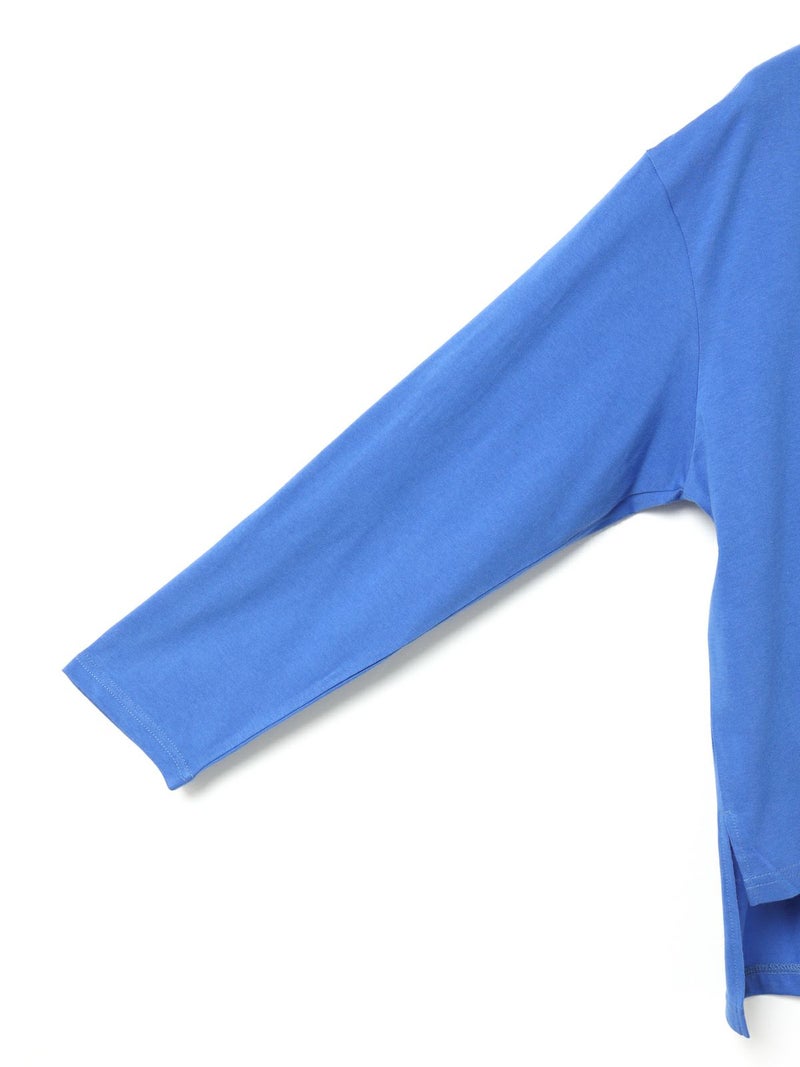 春の着回しアイテムにお勧めのロングスリーブTシャツです。シンプルなデザインのカットソーで着回しアイテムに重宝します。ゆったりとした身頃は着やすく、裾は前後差を付けサイドスリットの入った動きのあるデザインが特徴。色鮮やかなブルーを差し色にベーシックなカラー展開となっています。