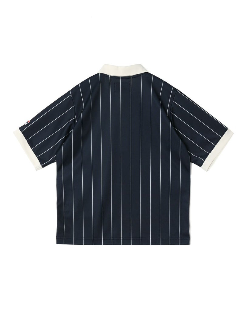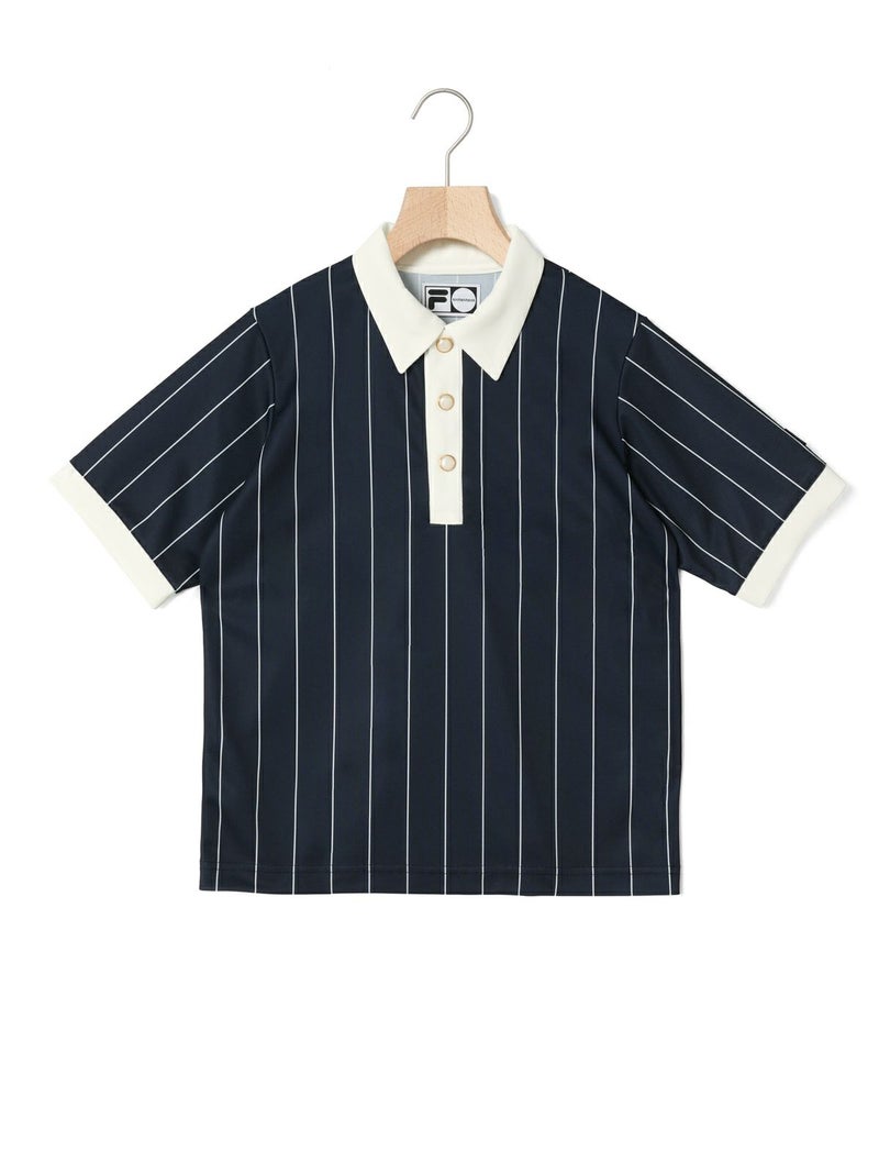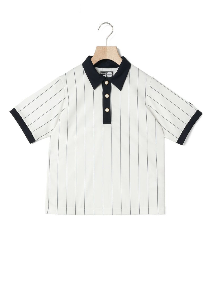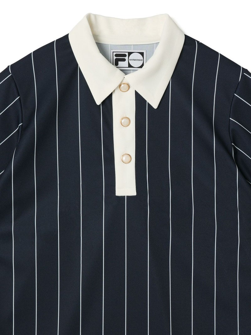 実際にボルグが試合中に着用していたユニフォームを元に少しガーリーなパールボタンなどを使用しクラシックな中に独特の世界観を持たせたアイテムになっています。吸汗速乾などの機能を持ったポリエステルの素材に、ボルグのユニフォームのストライプをオリジナルでプリントした生地を使っています。FILAとのコラボシリーズの中でも1番のアイコニックなアイテムになっています。