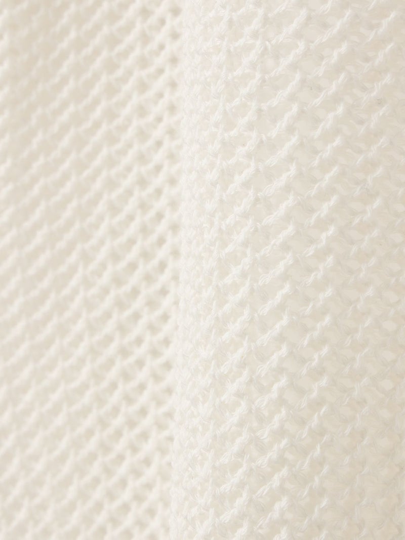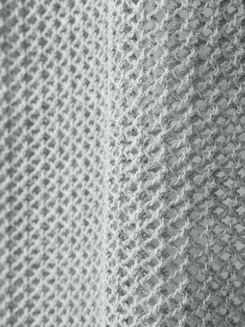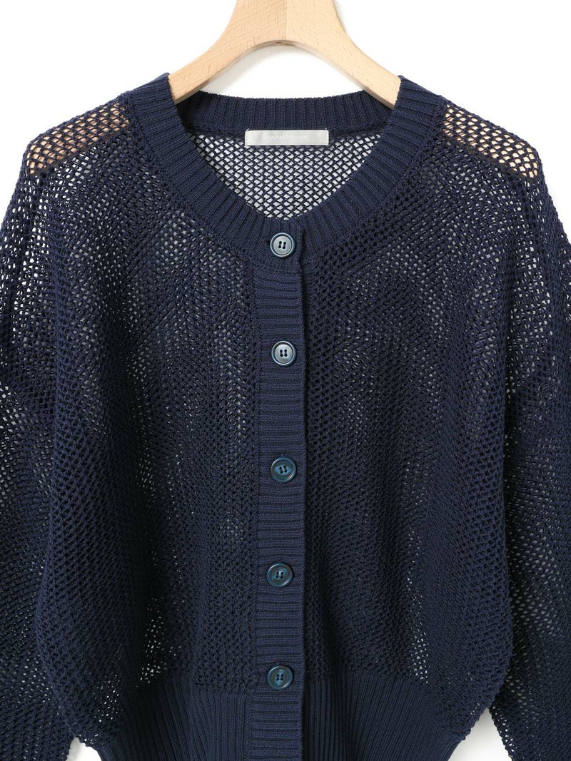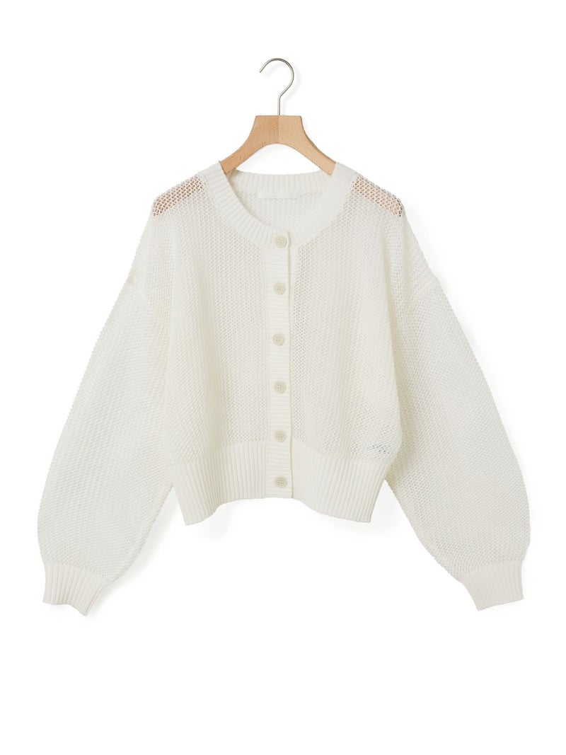 昨年好評だった2-820010/メッシュニットプルオーバーの糸と編地をそのままに、使いやすいカーディガンの提案です。全体的にざっくりとシアー感のある編地が一番のポイント。ショート丈とボリューム袖のバランスが今季らしいアクセントになっており、ハイウエストめなボトムやワンピースなどと合わせて着ていただくのがオススメです。さらっとした清涼感ある綿混素材なので長く愛用していただける1枚です。同シリーズ1-820040/メッシュショートベストも展開。