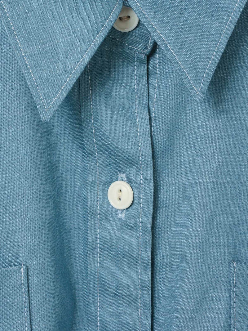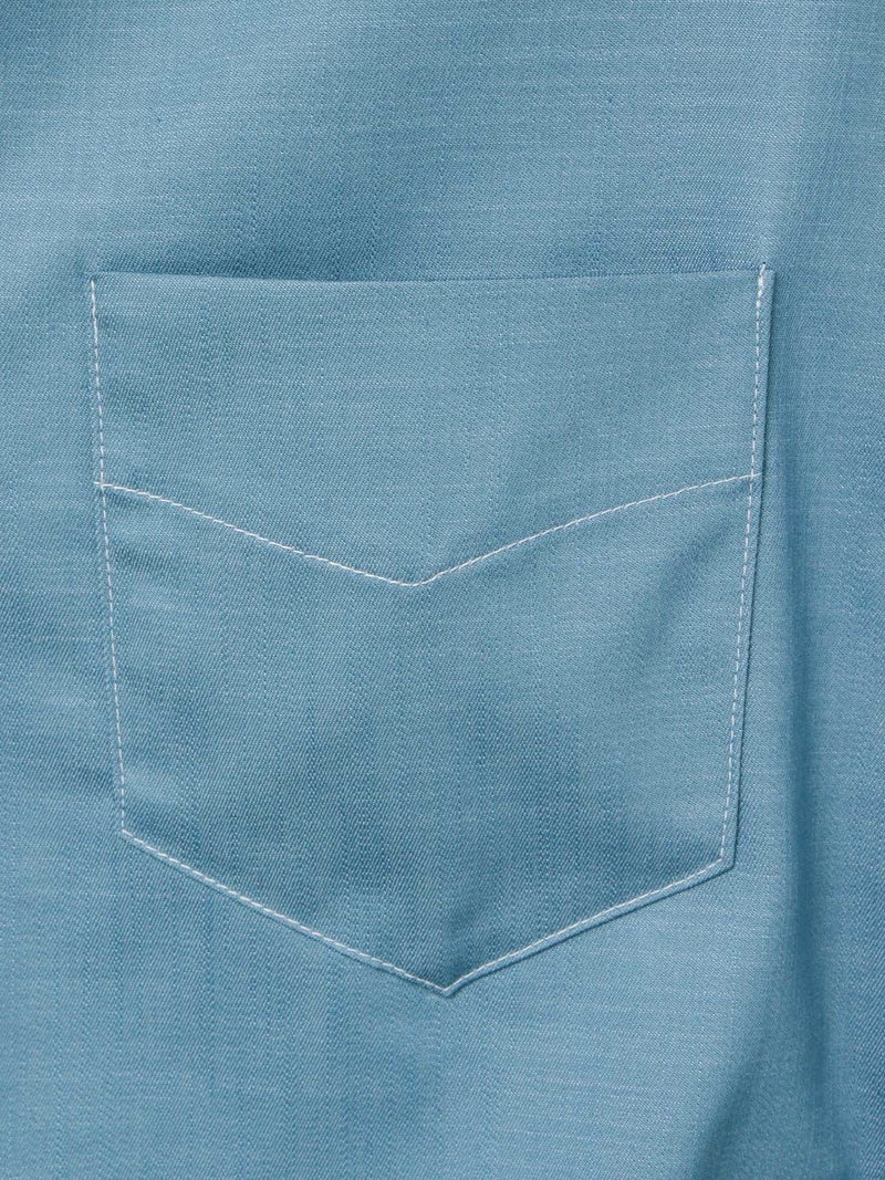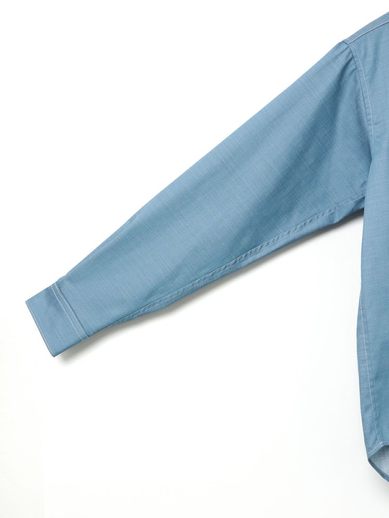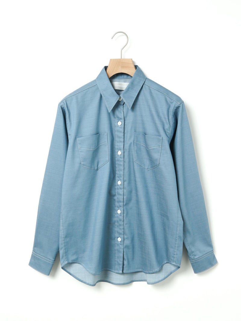 古着屋に売っているオーセンティックなシャツをイメージして作ったシャンブレーシャツ。コンパクトなサイズ感が特徴。シンプルなデザインの中にMARMARMARらしいM型ヨークやパッチポケットのM字ステッチがアクセントになっています。モデルとなったシャツを忠実に再現し釦は白のプラボタンで作成しています。シャツとしても羽織としても着用いただけます。本格的なデニムの見た目でありながらキレイで軽いのがポイント。通常のデニムと異なり色落ちしないので安心して着用いただけます。軽さのあるシャンブレーと1-830072A/ブロードの2素材で展開。