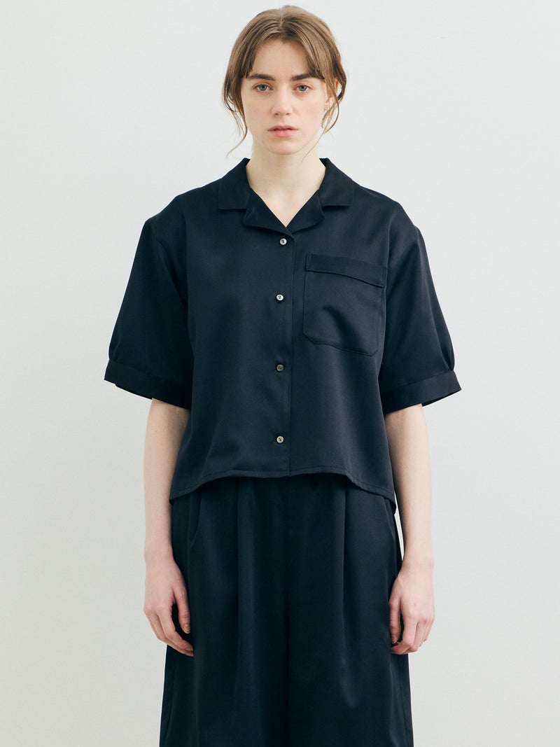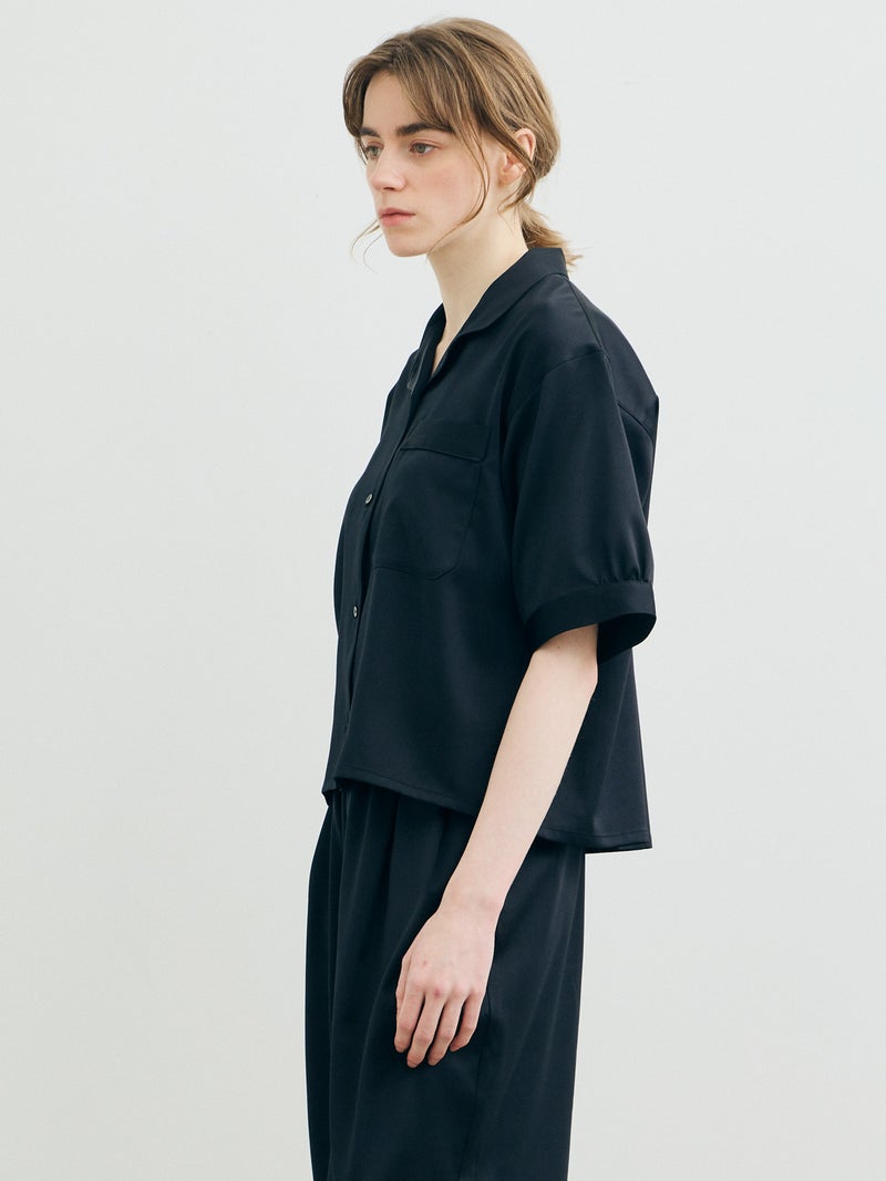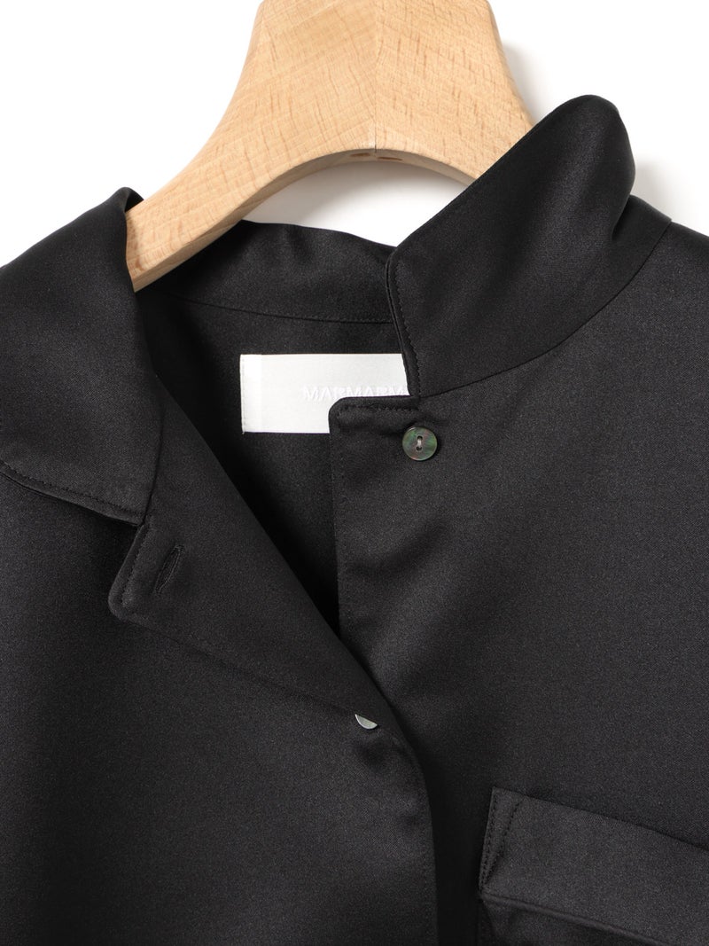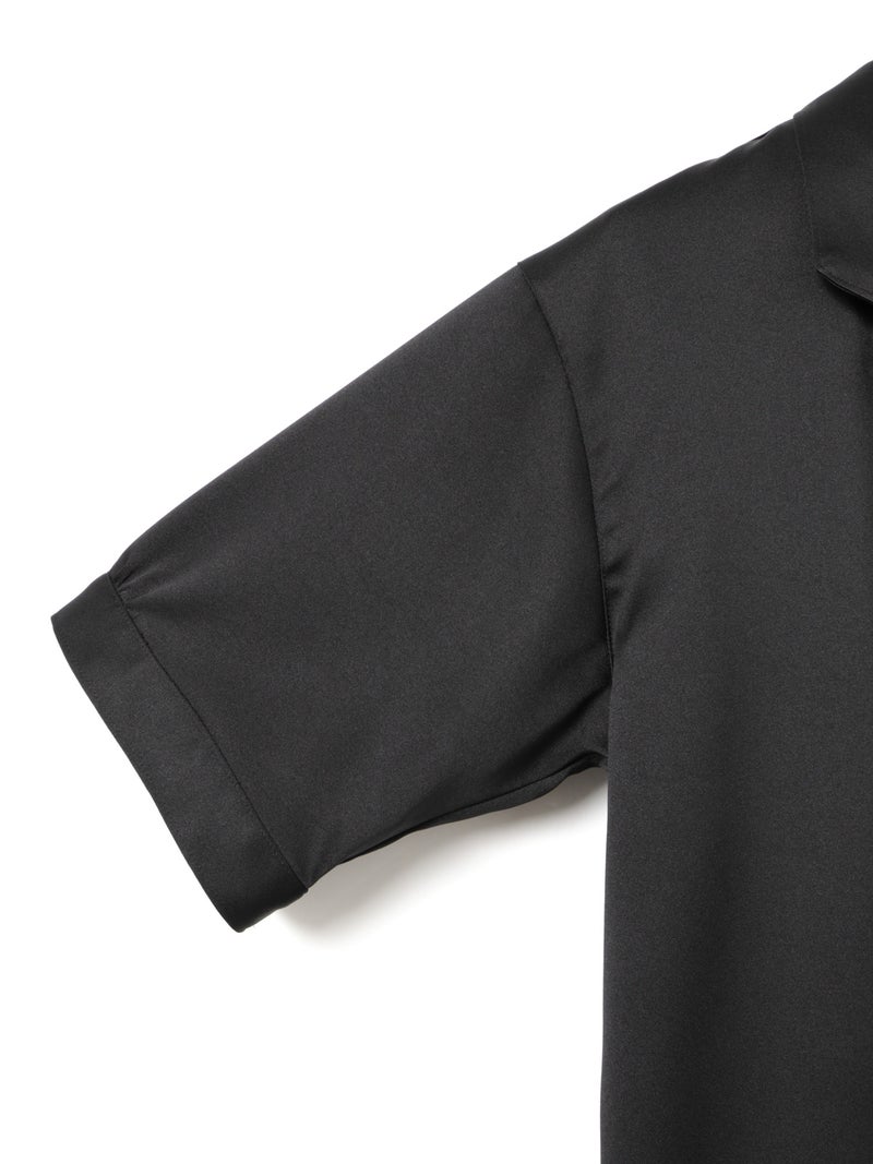 黒サテン生地で仕上げたシックな雰囲気が魅力のパジャマボックスシャツです。伸縮性のあるサテン生地で、光沢感があり上品さを表現。UVカットと速乾性があります。ブラックオンリーで展開。袖が切り替えになっているデザインで、胸ポケットにパイピングを施しています。コンパクトなサイズ感ですっきりと着用いただけます。パジャマシリーズとして、1-860099A,1-860100A,1-830123Aも展開。ダンガリーとストライプのアメリカンコットンで仕上げた同型1-830116も展開。