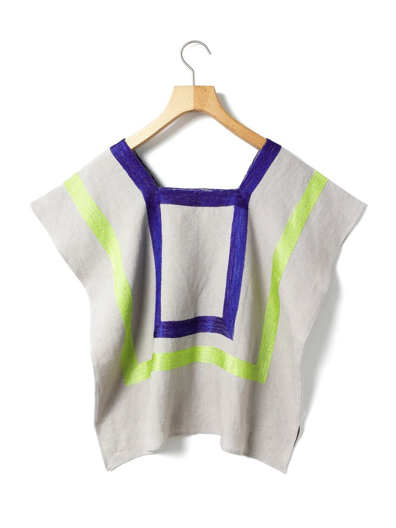 「Pips ropa」と「MARMARMAR」のコラボレーション企画、リネンウィピルです。メキシコ先住民族の伝統衣装である「ウィピル」を再解釈して生まれたアイテム。「Pips ropa 」…2017年にメキシコで発生した大地震の被害者支援を目的とした「xunca para tecas」(シュンカ・パラ・テカス)というアートとファッションデザインのプロジェクトから生まれたブランドです。先住民族の伝統技術や芸術的能力を現代へ伝えていく想いを元に2018年からブランドがスタートしました。ウィピルとはメキシコの先住民族女性が使用する手作業で施された刺繍が特徴的なブラウス。東洋文化の影響を強く受けた刺繍は他の国の刺繍にはない独特の優美さと繊細さを兼ね備えており、縫製方法も生地を折り紙のように折りたたんで作るというシンプルなデザインのアイテムです。シンプルなコーディネートのメインとして一枚で着用いただき、美しい手刺繍の表情と暖かみを楽しんでいただきたいアイテムです。発色良い刺繍とカラーの組み合わせが他にないオススメポイントです。