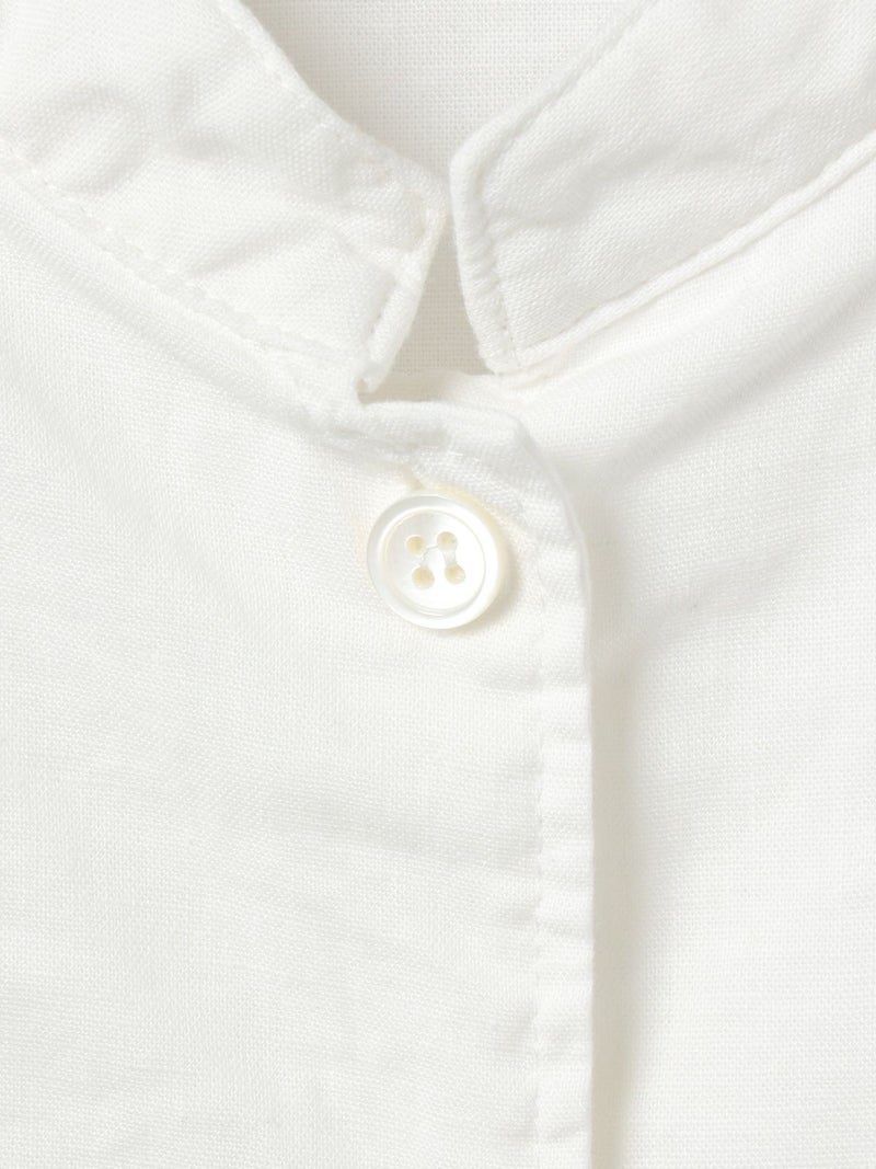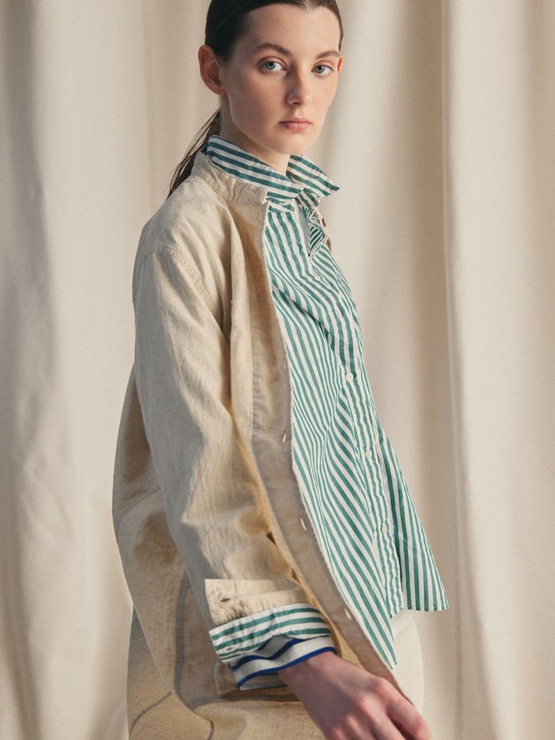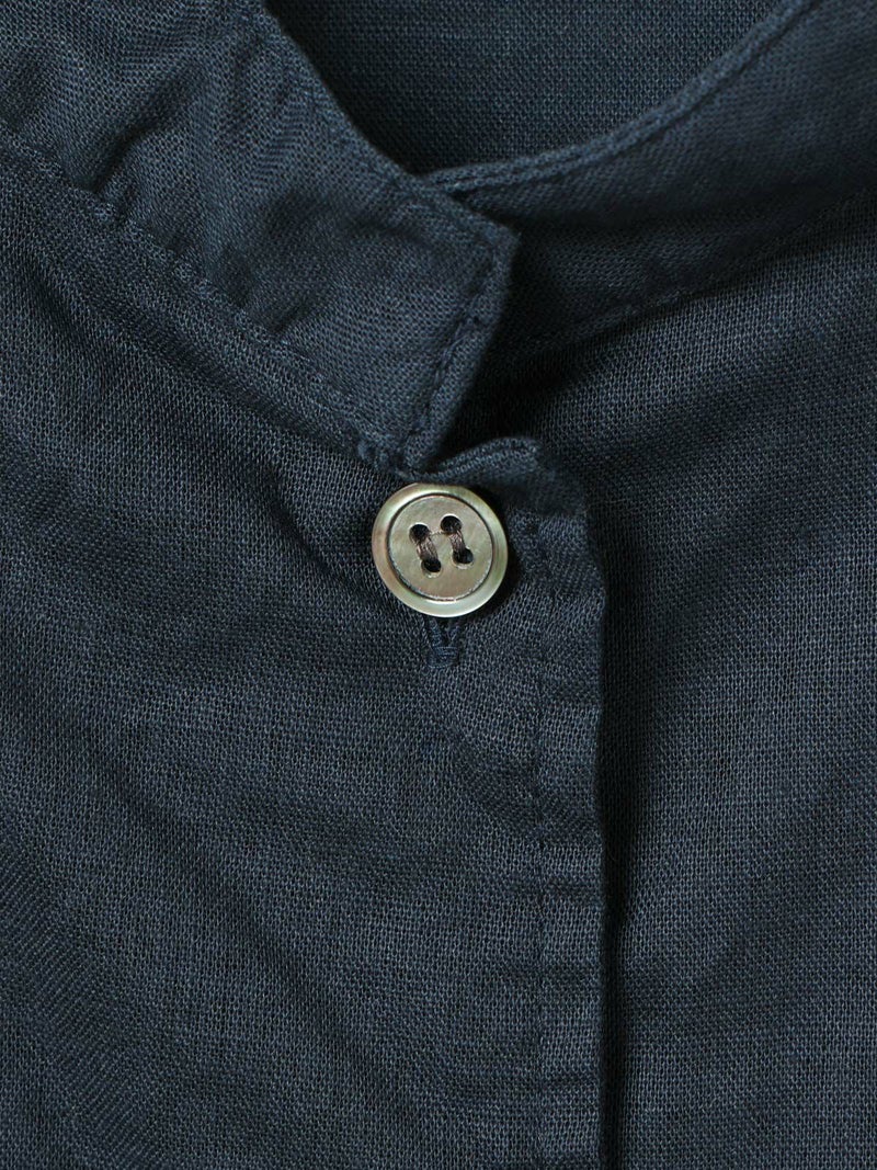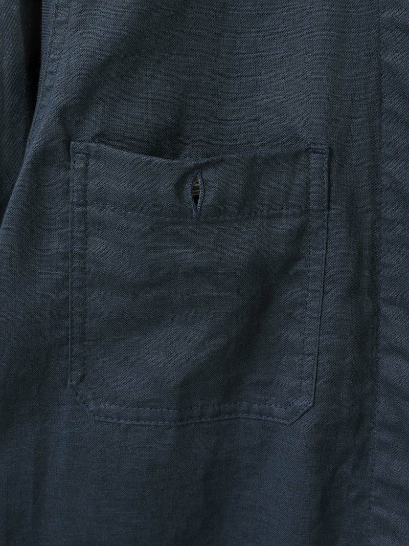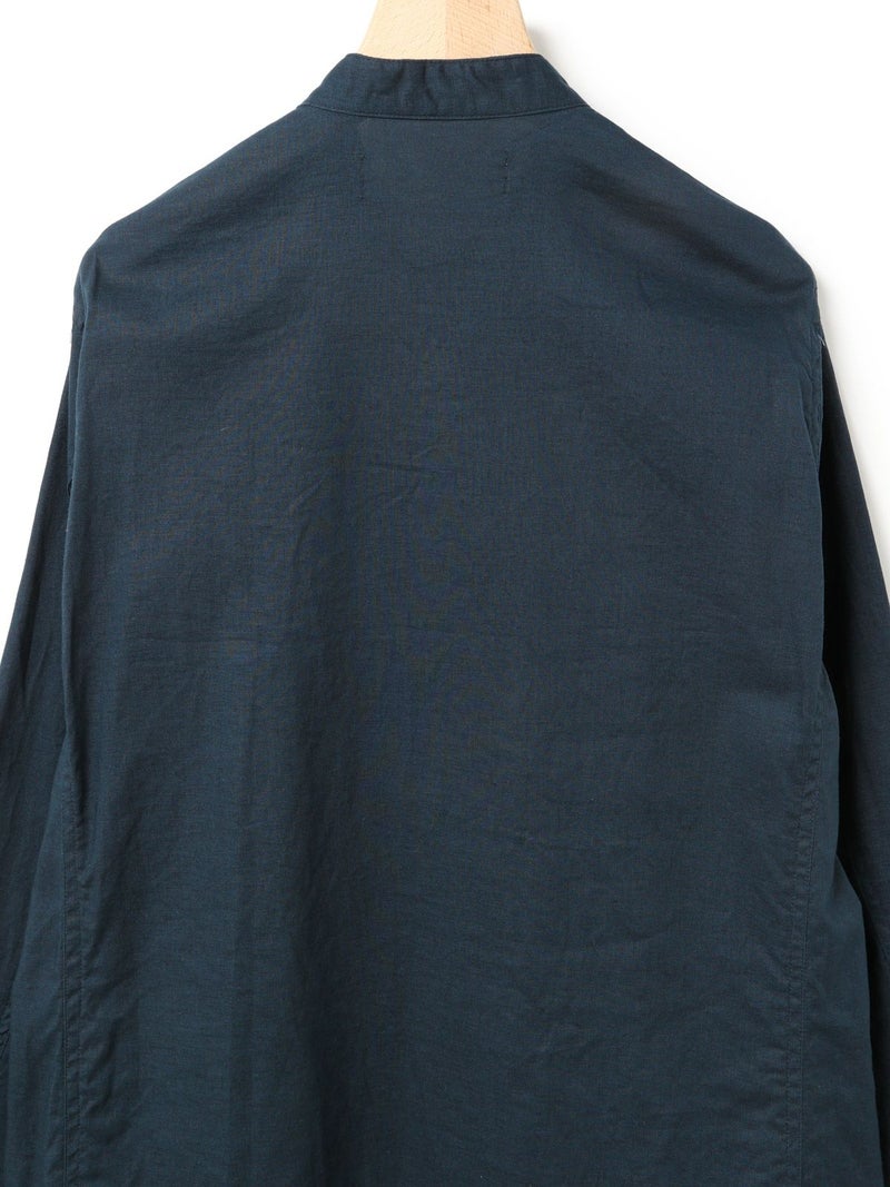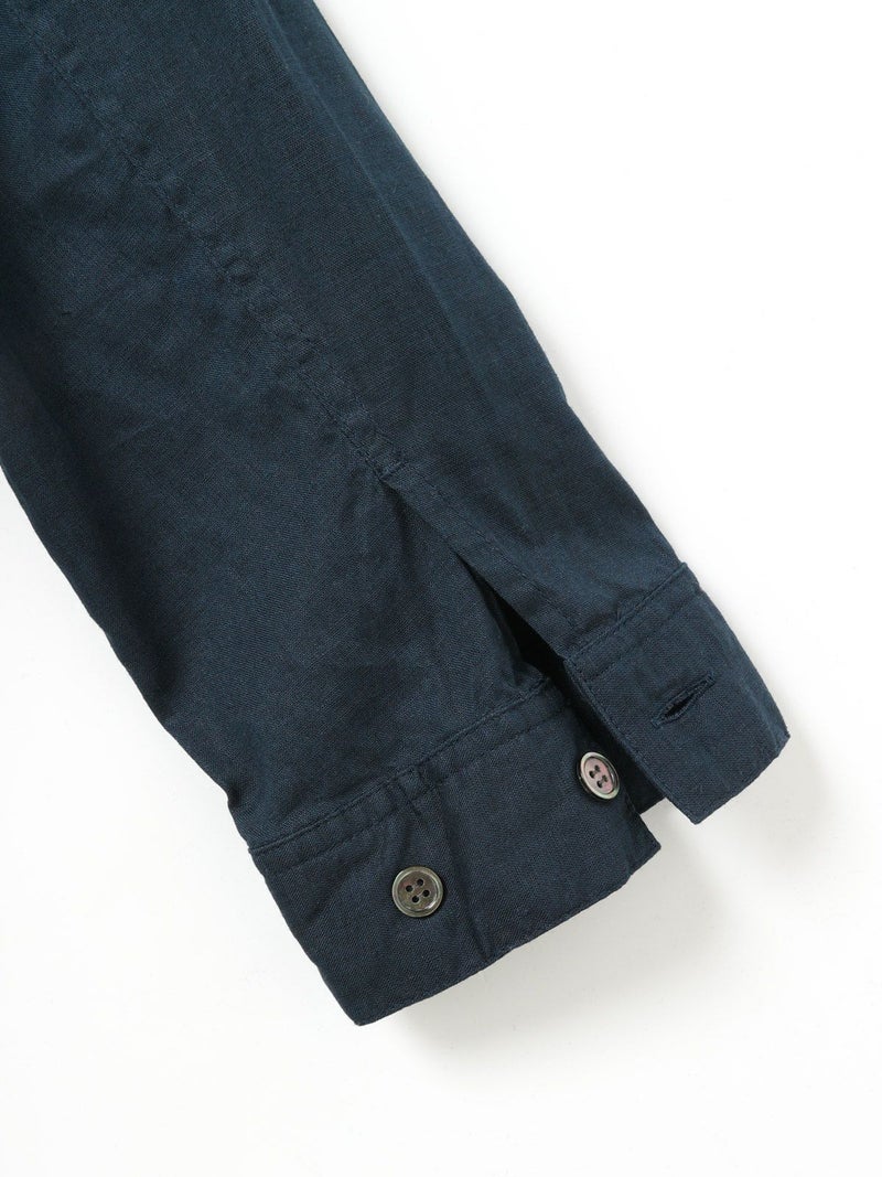 複数のポケットやスタンドの襟元など、ワークテイストでコートライクに羽織れるワンピースです。軽くてシャリ感のある綿麻素材が涼し気な雰囲気を演出します。洗い&タンブラーでクッタリとさせ、シワ感を残した風合いに仕上げているので気軽に着脱可能。ポケット口が垂れてだらしなく見えないように施された釦はデザインポイントにも。軽く見えるよう袖口はカフス仕様のシャツディティールに。第2~第3釦まで外して着用しても襟元が自然に折り返るようなパターン。様々な着こなしが楽しめるアイテムです。