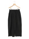 今季MARMARMARから展開する人気のコクーンワイドイージーパンツです。ウエストのゴム部分からタックが細かく入ったデザインでパンツ全体に動きがありボリューム感のあるシルエットを表現した1枚です。ウエストは中紐が付いているので腰位置を調整可能。着回しのしやすいベーシックな3色展開。この春おすすめのボトムアイテムです。