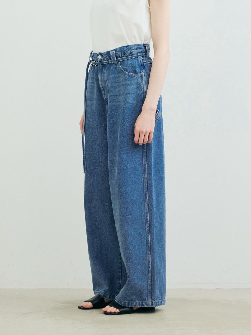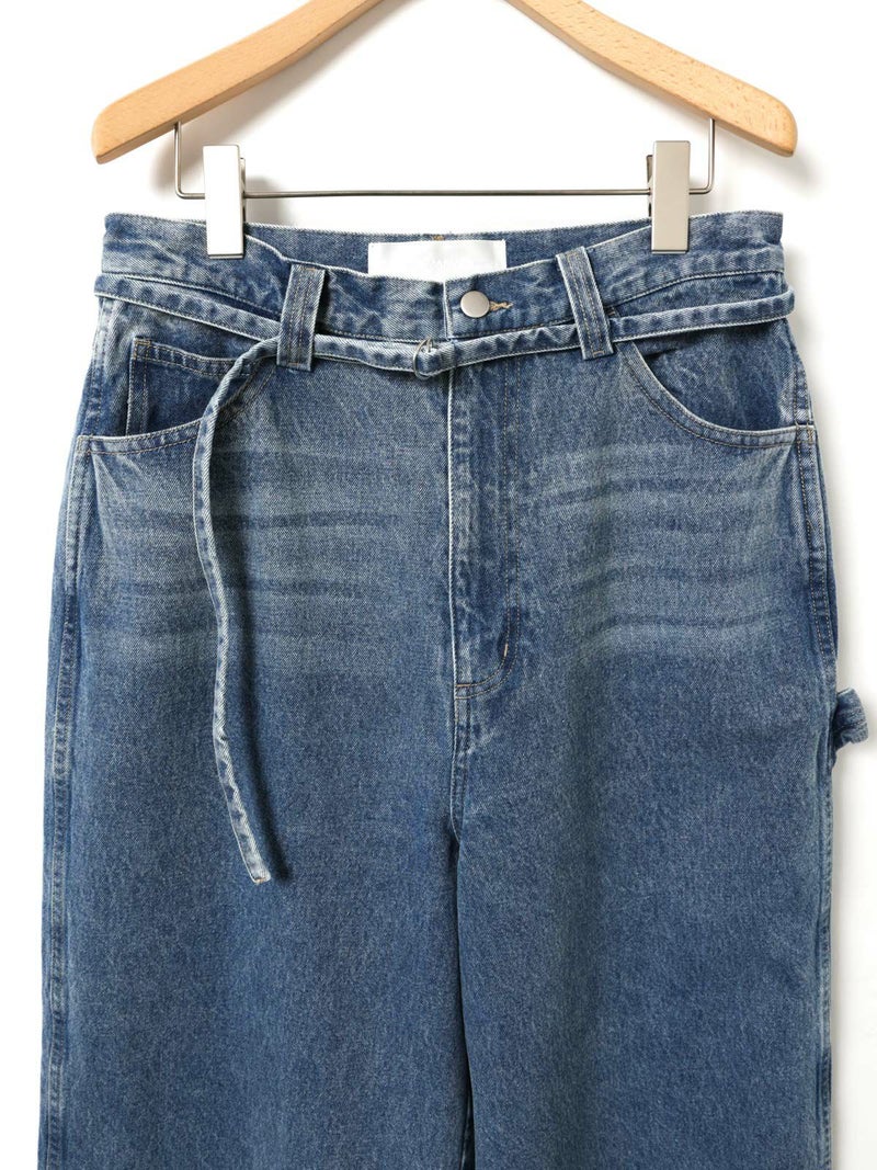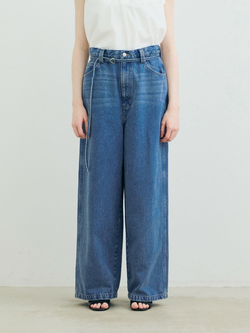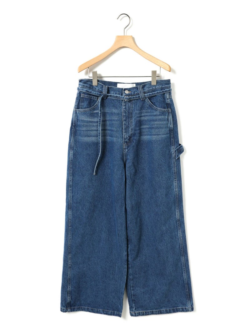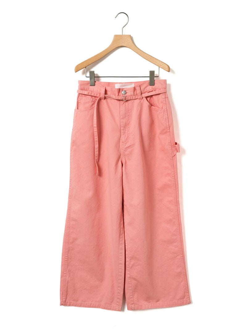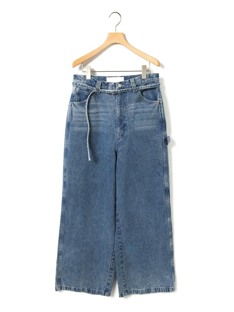 共布のベルトで持ち上げ、メンズライクに着用するイメージのワイドデニムパンツです。ワイドシルエットで腰回りはすっきり、ディティールをそぎ落としてシンプルなトップスに合わせてかっこよくコーディネートしていただくのがお勧め。ベルトループは下のほうで止まる仕様。ピンク(41)は真ん中をこすってダメージ感を表現、ワンウォッシュ(96)=インディゴと、ビンテージ(97)はワンウォッシュをさらにケミカルウォッシュに仕上げた3色展開となっています。同シリーズ1-860092/デニムハーフパンツも展開。