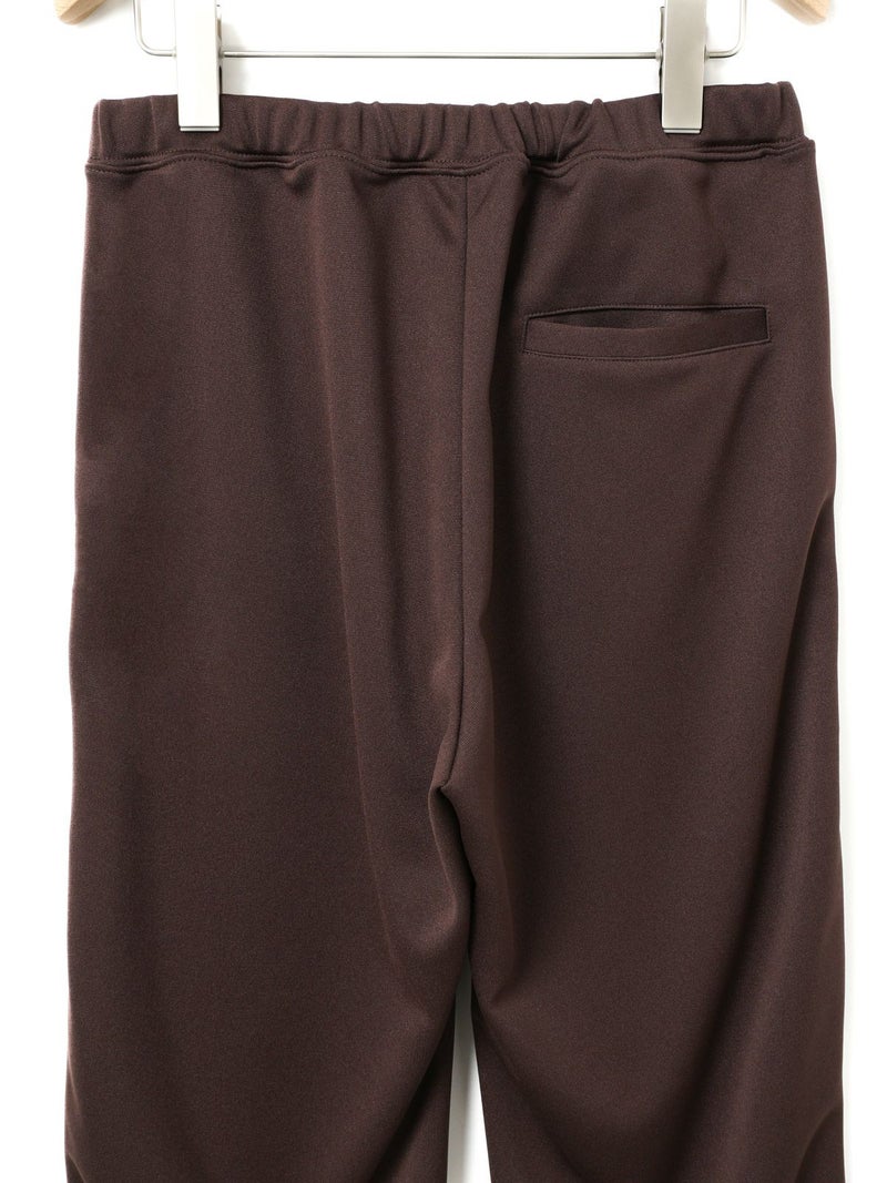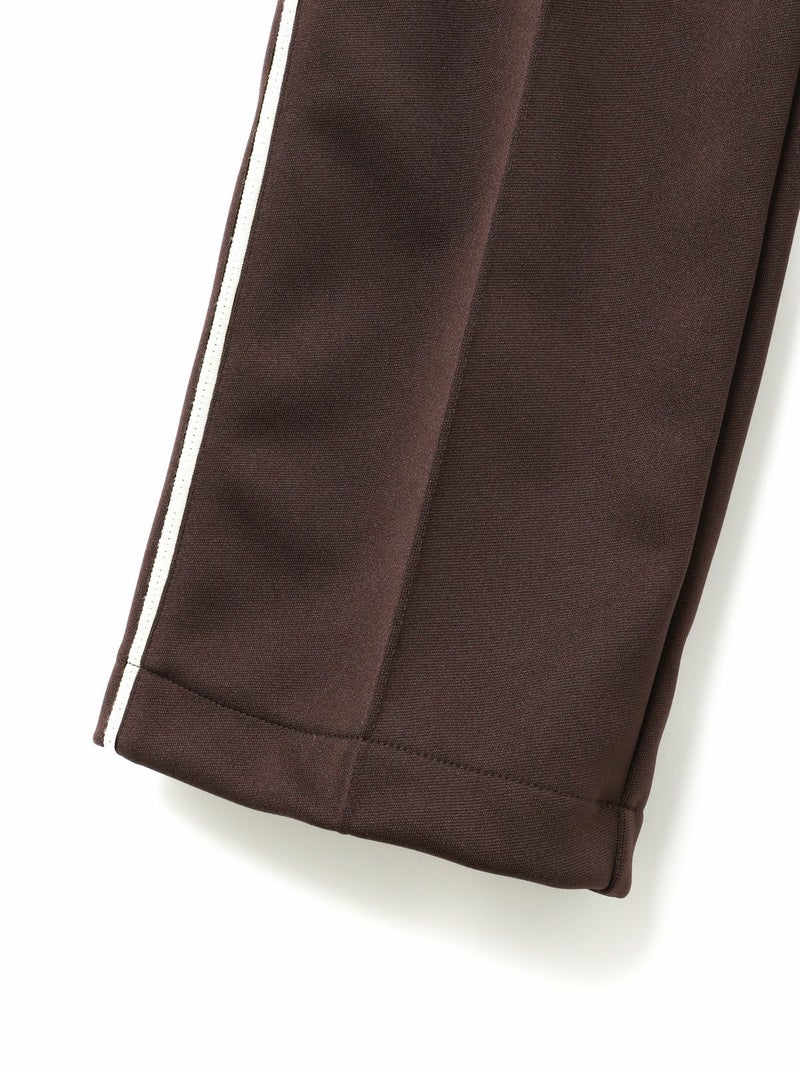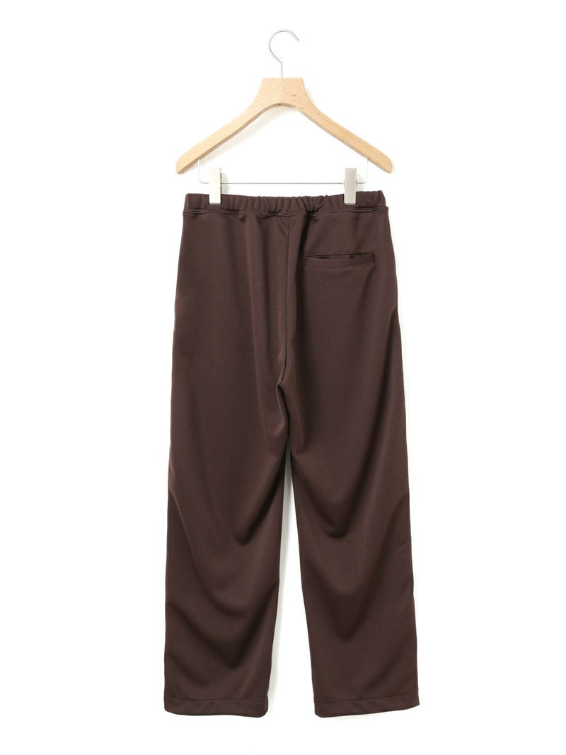このパンツはクラシックなトレーニングパンツを元に、少しのドレス要素をプラスしたトラウザーになっています。素材はトラックパンツにも使われる素材を使っていますが、センタークリースをピンタックでつまんでスラックスの様に見せたり、サイドの縫い目にタキシードパンツの様に白いラインを走らせ、クラシックなスポーツモードの様な雰囲気に仕上げています。メンズライクなコートやジャケットに外しとして合わせるなど、いつものコーディネートにこのパンツを加えるだけで、抜け感のある新鮮な自分に出会えるはずです。