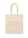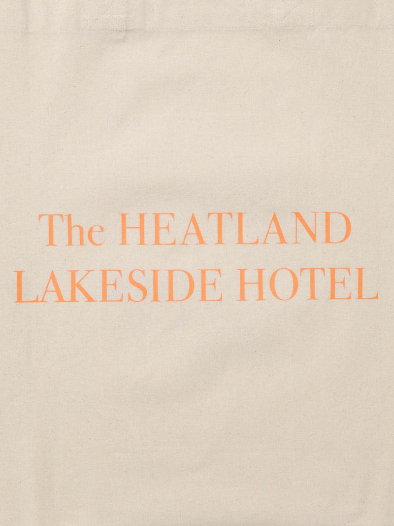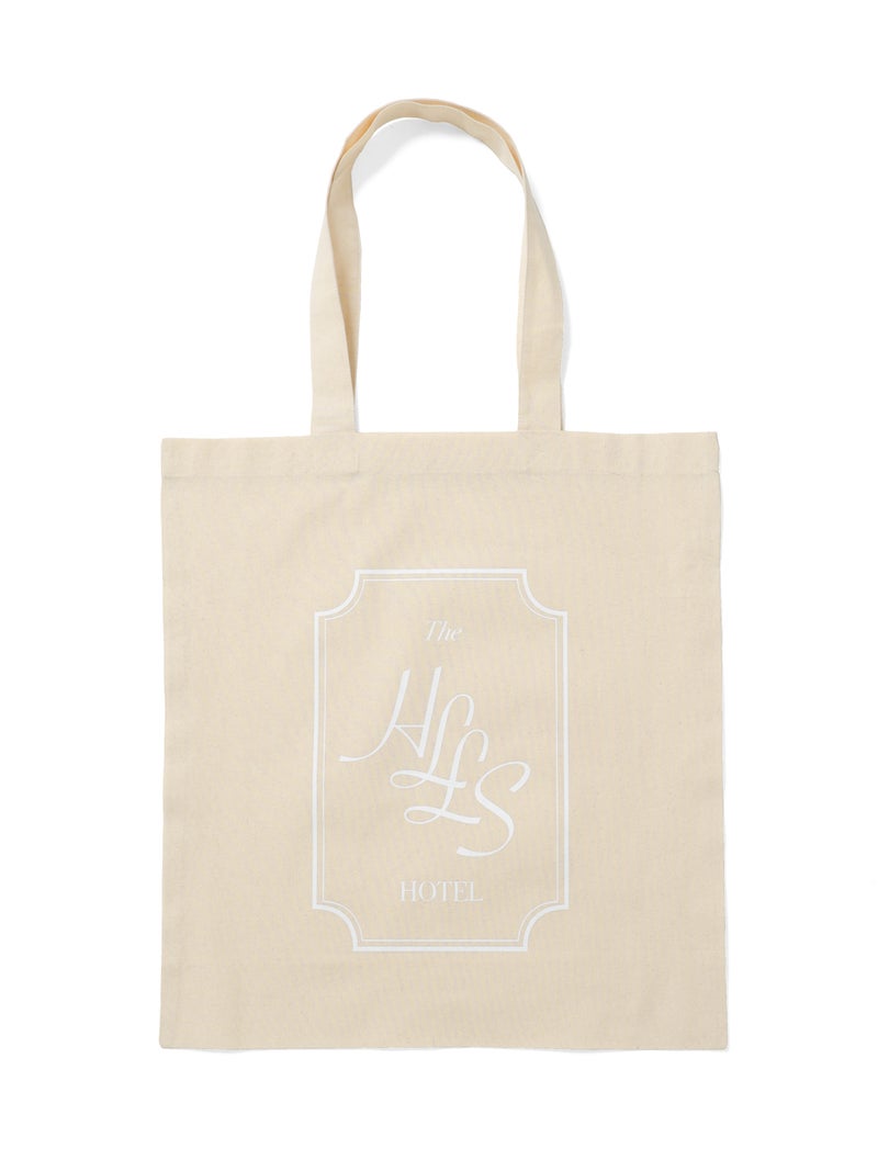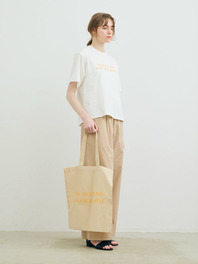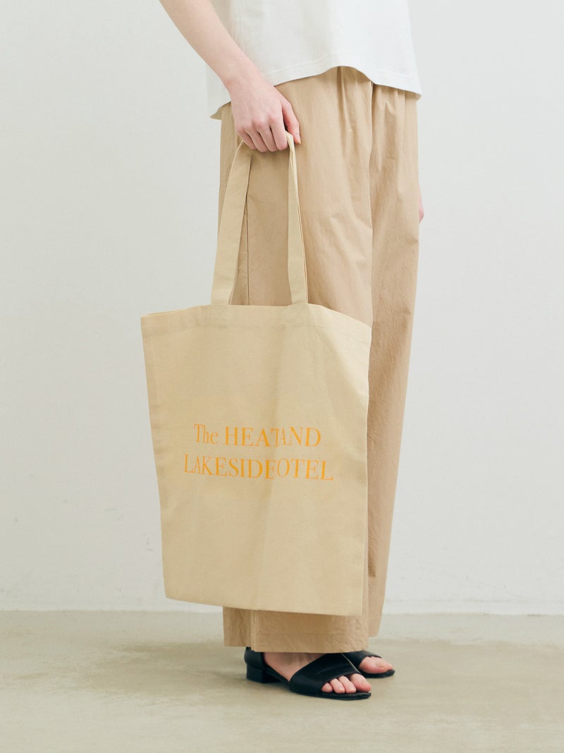 シンプルなボディにワンポイントプリントを施したプリントトートバッグ(HOTEL)です。シンプル且つ程よい大きさで使い易いボディに、26SSシーズンの着想原となった写真集から連想されるキーワードを顔料プリントで表現しました。表面には写真集に登場する象徴的なホテルの架空のロゴマーク、背面にはプリントTと同じくキーワードプリントを施しております。手に取りやすい価格でもあり、エコバックやちょっとしたお出かけに気軽に使えるアイテムになっています。ロゴプリントは白、キーワードプリントはオレンジで作成しております。同シリーズ1-880006(ROMANCE)、1-880008(BEAUTIFUL)の2型も展開。