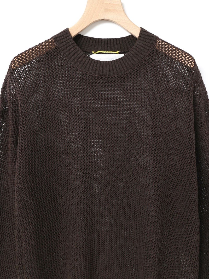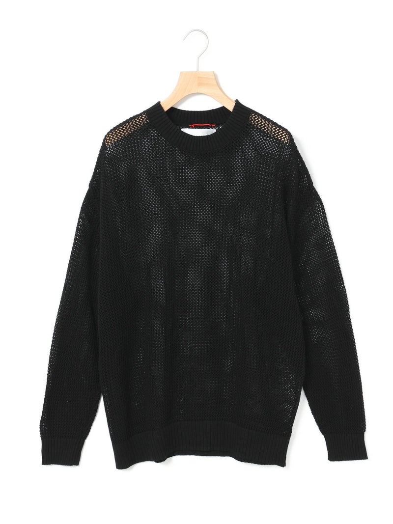 メッシュ編みで程よく透け感を出したシンプルなプルオーバーです。通気性のよい網目とサラッと感のあるコットン×ナイロン素材を使用した1枚。清涼感と軽さのあるニットなので、タンクトップ1枚に合わせるとシアー感が可愛いです。また、薄手のシャツとの合わせも印象が変わりシーズンを通して長い時期の着用が可能。サイズ感に拘り、ざっくりゆるすぎないようにリラックス感のあるシルエットにしています。後ろ衿内側の配色ステッチもデザインポイント。各色によって配色が違うので、選ぶ楽しさがあります。インナーの透け感を楽しんでいただけ、季節によって幅広いコーディネートを表現していただける1枚です。