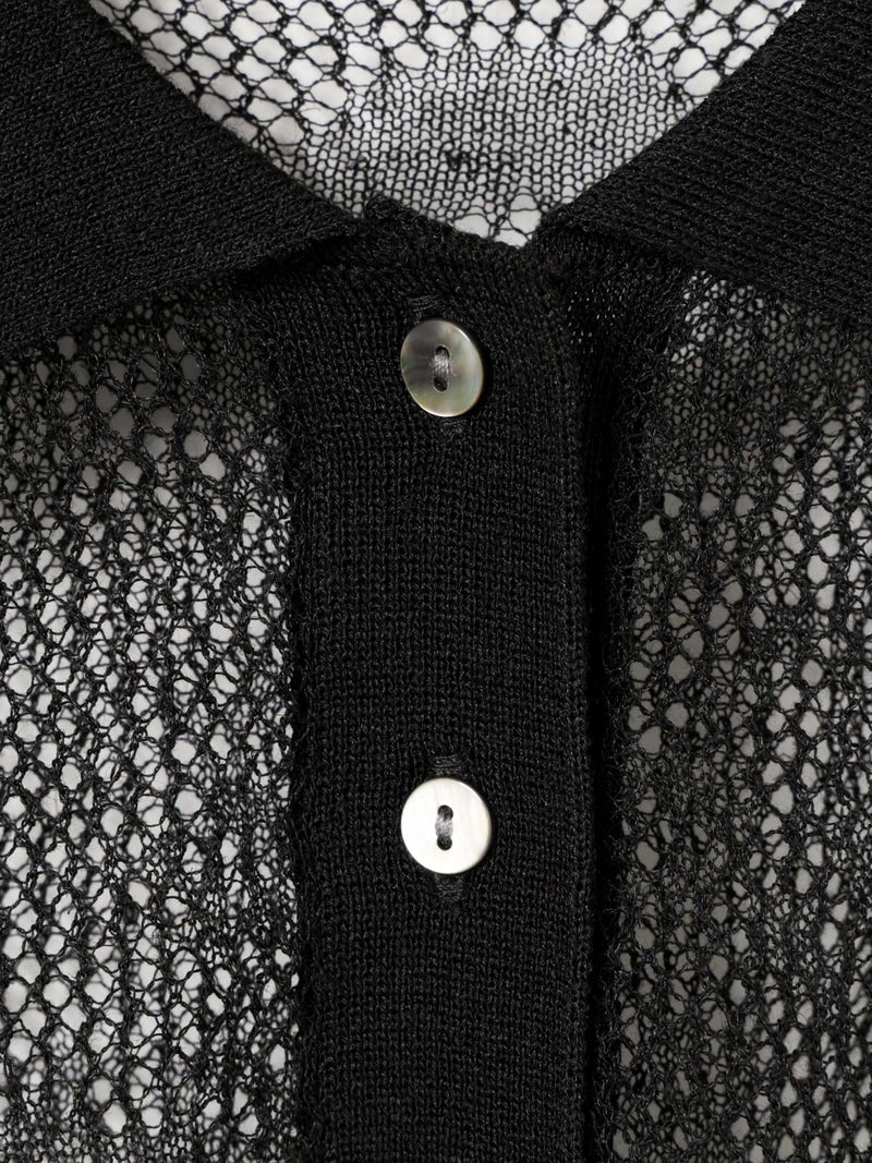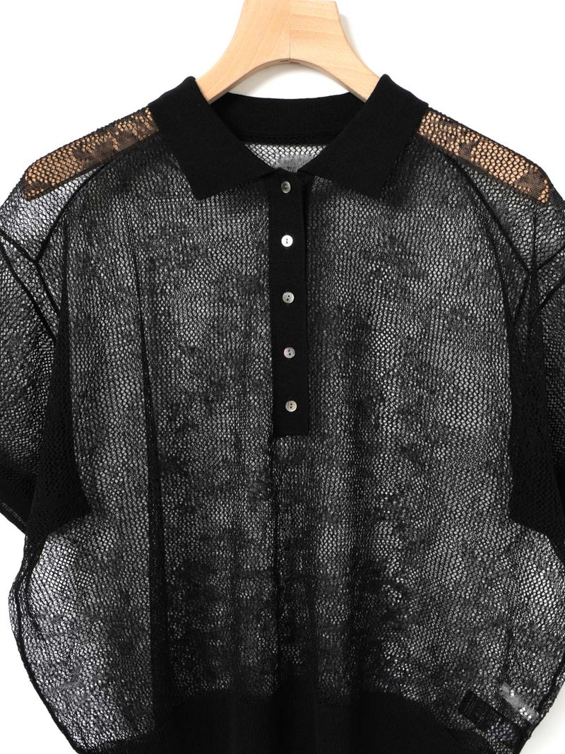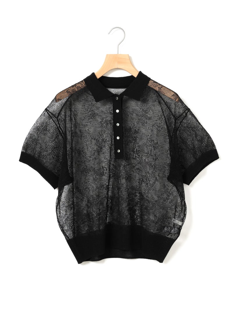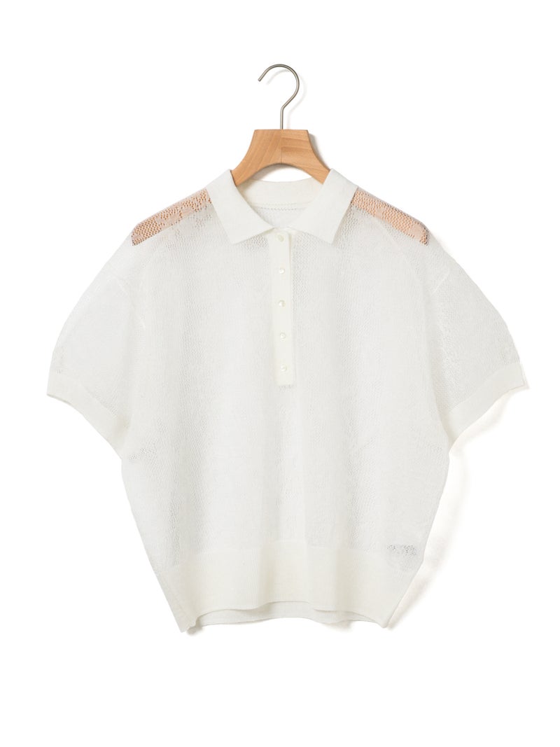 ドライタッチで暑い季節にお勧めのレースニットポロシャツ。薄手のニット生地にリネン混の糸を含み、シャリ感を感じていただける着心地と通気性の良さを体感できるニットアイテムとなっています。ワイドボディでゆったりしているので動きやすさがあり、短めのスッキリとした丈感が軽快さを印象付けています。上品なレース生地はインナーの配色によってレース編みがよく見えてきます。襟元のボタンはラフに外してもOK。短パンやチノパンなどにもよく合い、清楚で大人のカジュアルを演出できるアイテムとなっています。オフホワイトとブラックの2色に絞っており、シンプルにコーディネートがしやすく爽やかな着こなしを表現できる1枚です。