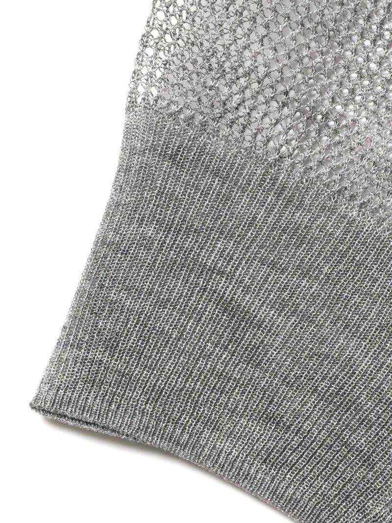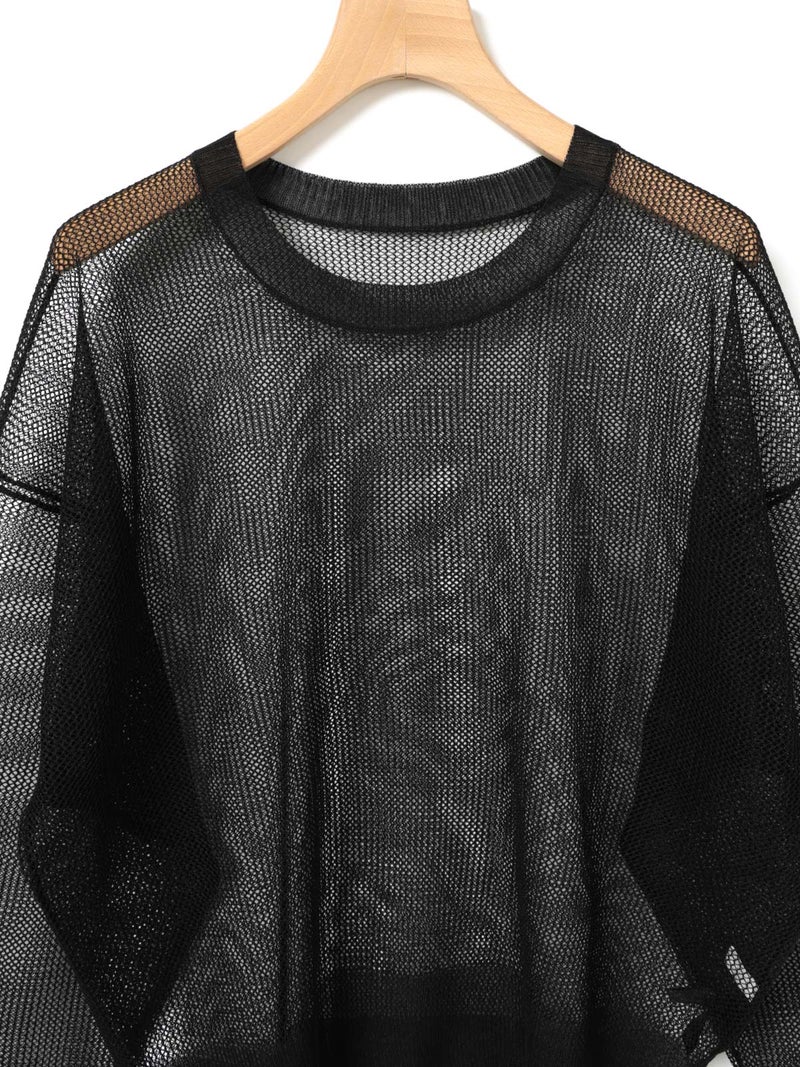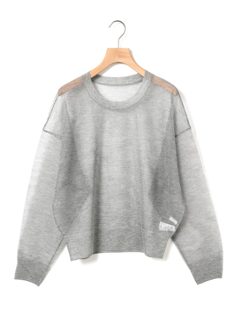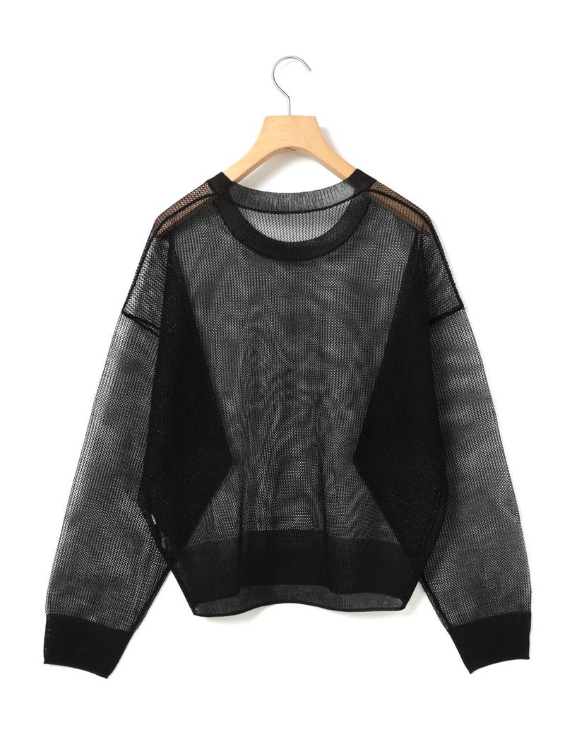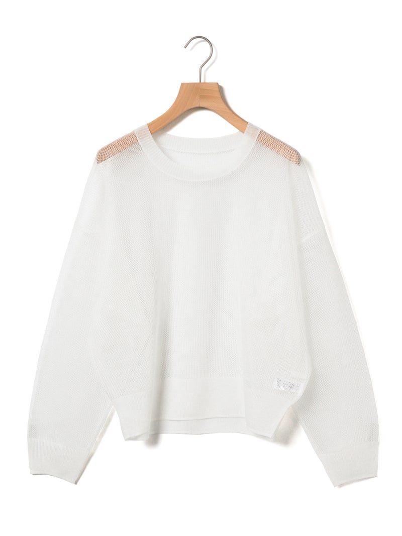 控えめなラメ糸を使用したメッシュニットプルオーバー。天竺編みのゆったりとしたワイドボディに少し短めの丈感を表現した1枚です。袖口、裾周りをリブ使いにしており、腰で止めてブラウジングしてもOK。生地が薄手で通気性の良さを体感できるニットアイテムとなっています。インナー見えがするので色・柄の重ね着を楽しんでいただけます。シンプルなデザインとベーシックな3色のカラー展開なので着回しアイテムとして役立つ1枚です。