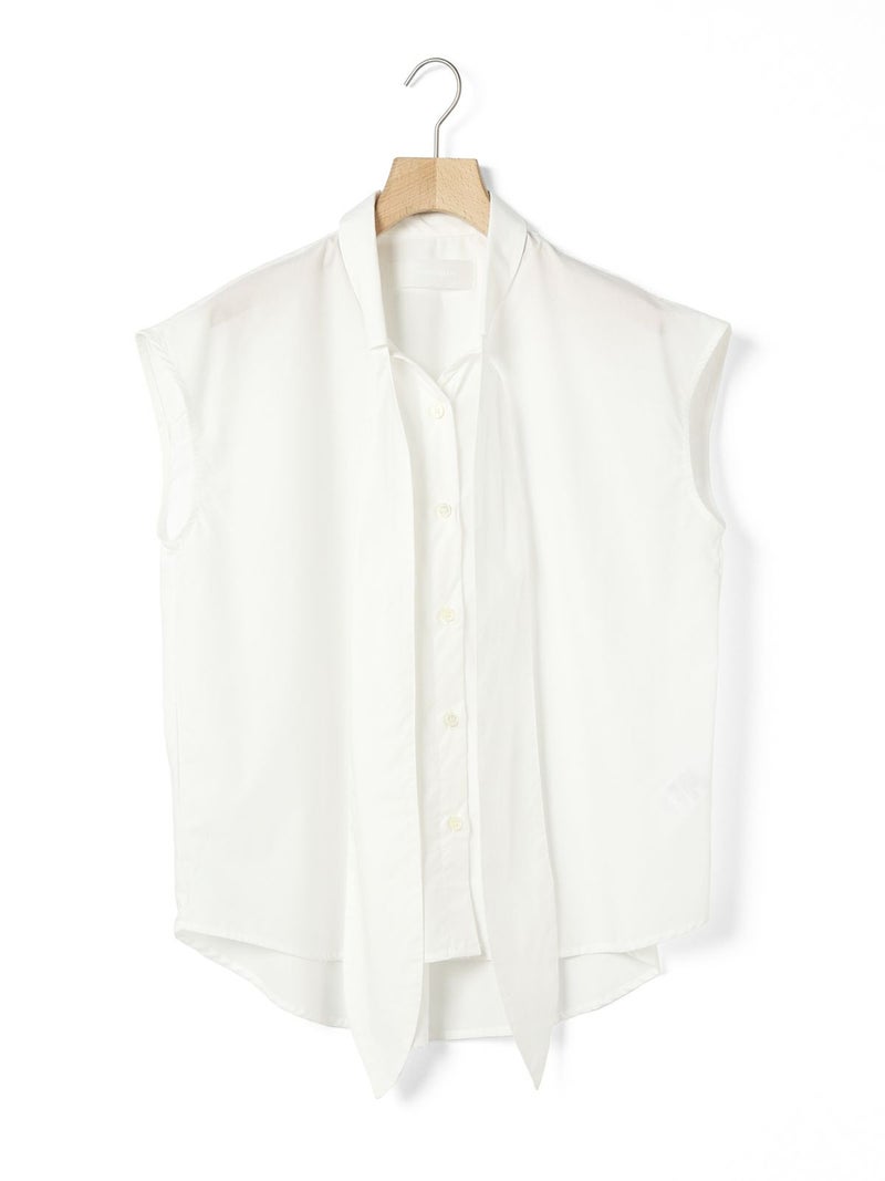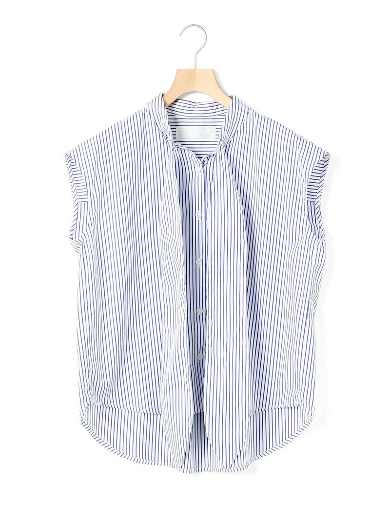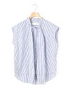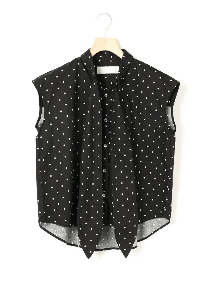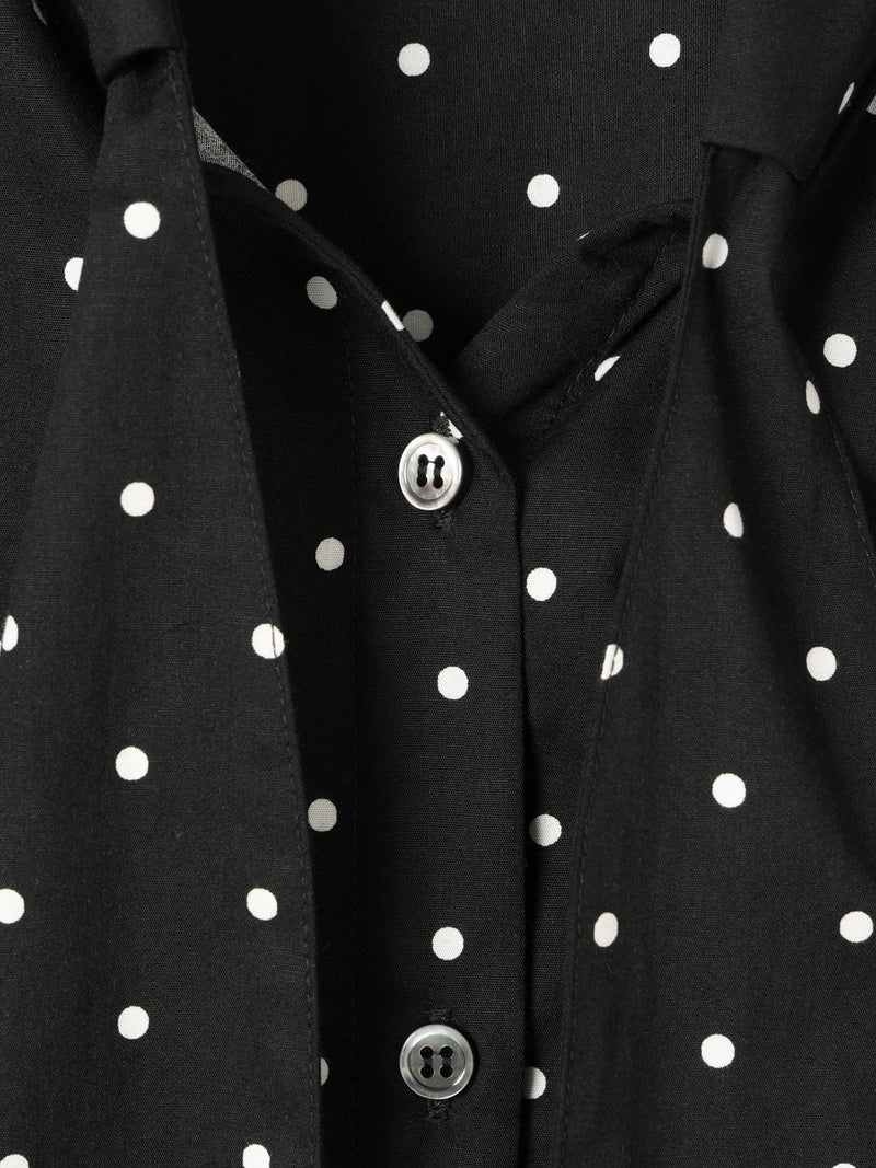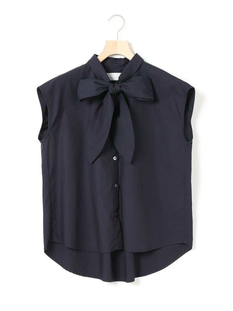 1-830028 /シャツカラーリボンシャツをアレンジしたリボン付きフレンチスリーブシャツです。シャツカラーのディテールはそのままに、全体的にシルエットをスッキリと削り丈も短くしフレンチスリーブに変更しました。全体のムード感を崩さずバランスよくリボンの幅もスッキリと調整しています。無地とストライプ柄とドット柄の3パターンの生地でデザインしたシャツでどれも雰囲気が異なって魅力的です。清楚にシャツインしても良く女性らしい着こなしを演出した1枚です。