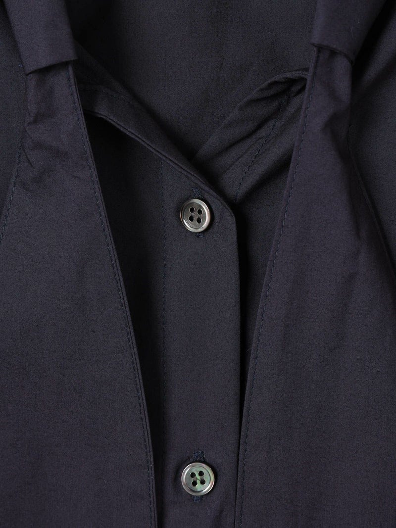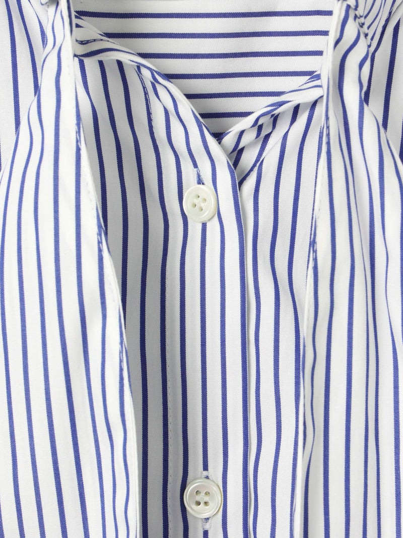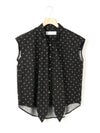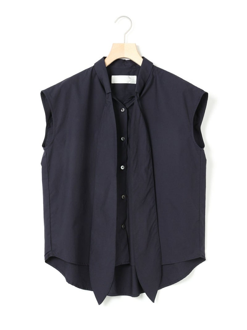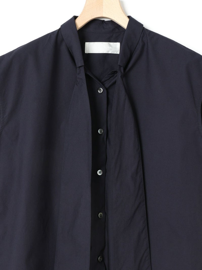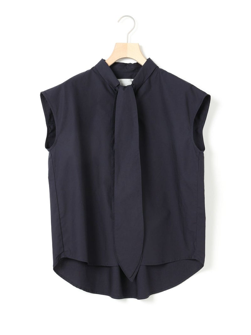 1-830028 /シャツカラーリボンシャツをアレンジしたリボン付きフレンチスリーブシャツです。シャツカラーのディテールはそのままに、全体的にシルエットをスッキリと削り丈も短くしフレンチスリーブに変更しました。全体のムード感を崩さずバランスよくリボンの幅もスッキリと調整しています。無地とストライプ柄とドット柄の3パターンの生地でデザインしたシャツでどれも雰囲気が異なって魅力的です。清楚にシャツインしても良く女性らしい着こなしを演出した1枚です。