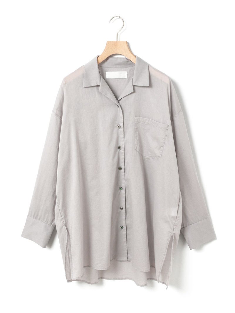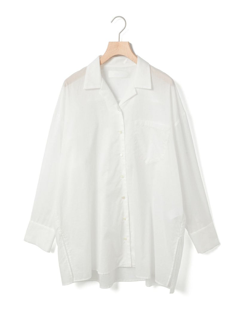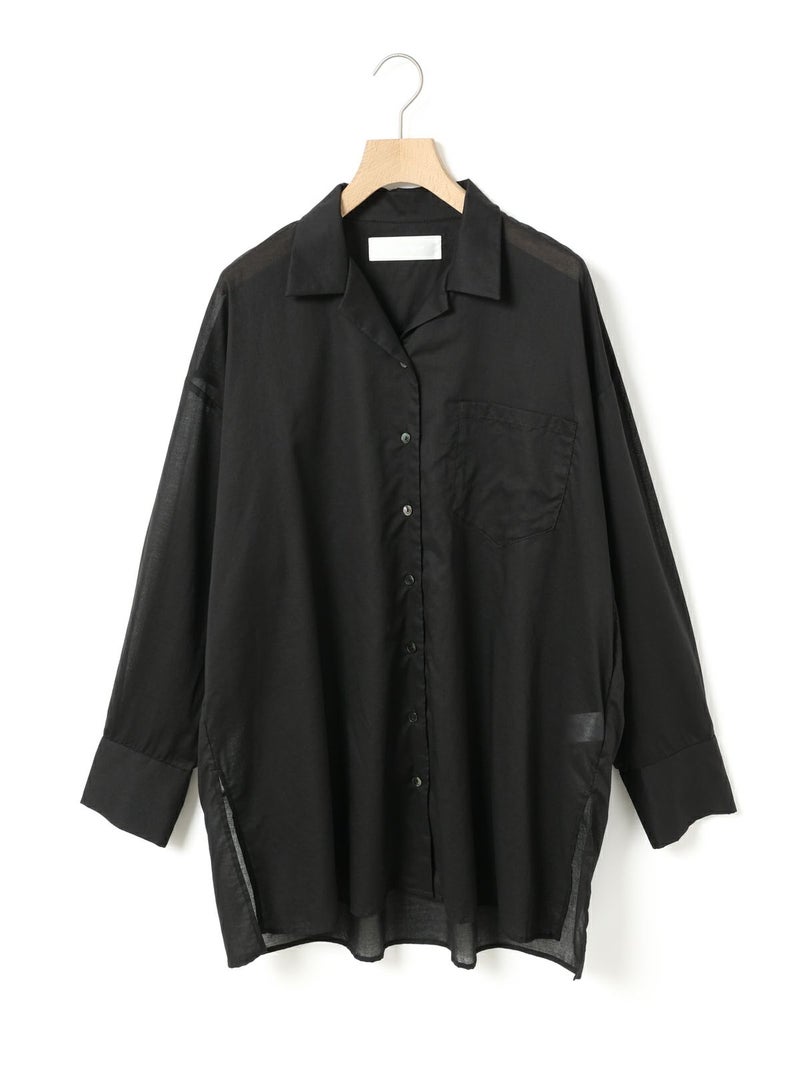 上品な透け感が魅力の、大人のためのシアーシャツ。軽やかなコットンローン素材を使用し、洗いざらしのようなナチュラルな風合いが心地よい一着です。さりげない透け感が落ち着いた印象で取り入れやすいのもポイント。デザインはメンズライクなオープンカラー。シンプルながらも程よい抜け感を演出します。ヒップにかかる長めの着丈で、1枚でさらりと着るのはもちろん、羽織りとしても活躍。合わせるアイテム次第でシーズンレスに着回せる、ワードローブに加えたい万能アイテムです。