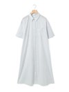 シンプルで合わせやすいシャツカラーデザインのワンピースです。しっかりとしたロング丈が縦のラインを強調し、すっきりとした印象で着用いただけます。やや長めの半袖は、軽く羽織るスタイリングや、長袖とのレイヤードにも相性が良く、季節の変わり目にも活躍。軽やかで薄手のローン素材は肌離れがよく、涼しげな着心地が魅力です。一枚でさらりと着ても、ボトムスとのレイヤードで変化をつけても楽しめる、着回し力の高い一着です。