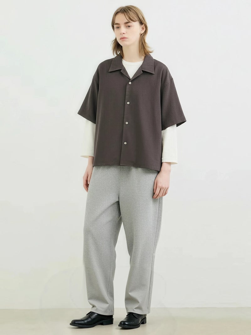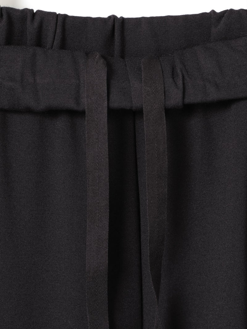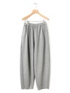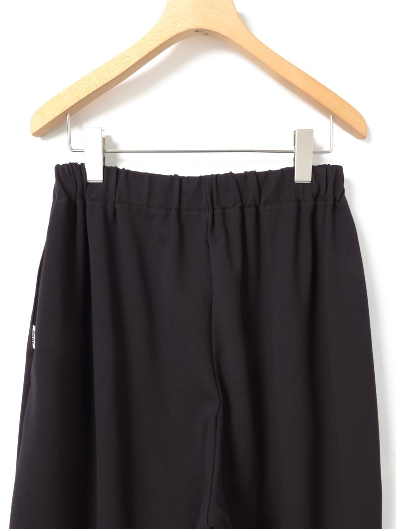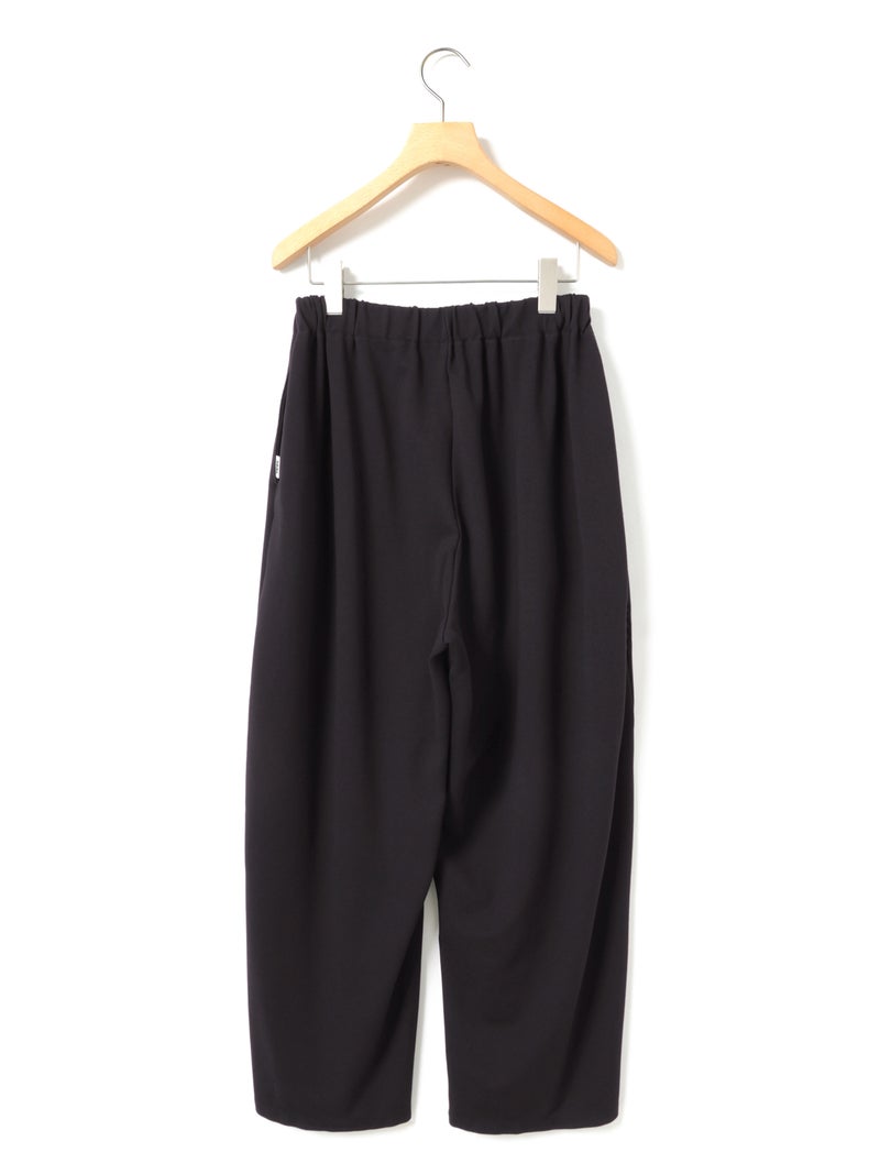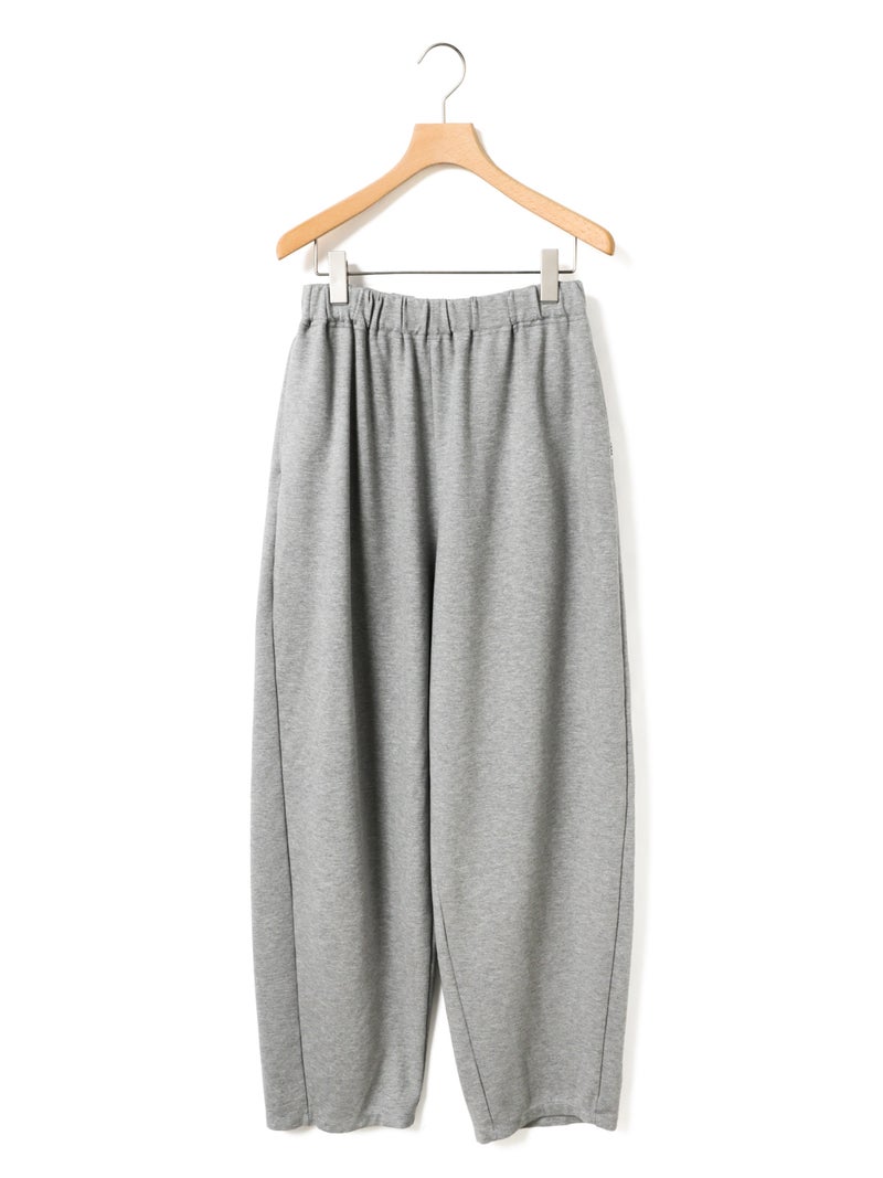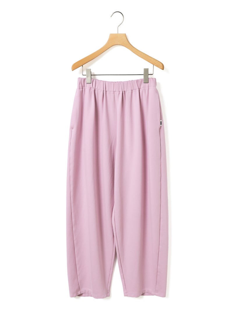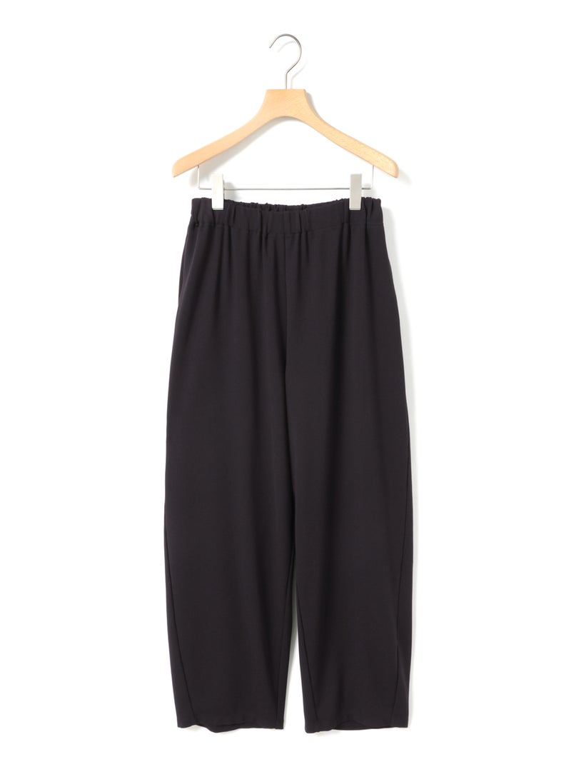 たっぷりとした生地を使った、フルレングスのコクーンジャージパンツです。脇線を前側にずらしてシルエットに丸みを持たせたトレンド感のあるカーブシルエットを表現。ウエスト位置は調整できるように股上を少し深めに設定しており、少し落として穿くと裾にワンクッション生地が溜まり、トレンド感のあるカジュアルな着こなしを演出します。その反対にジャストウエストで穿くと、すっきりとしたキレイ目なシルエットになるため、穿き方次第で印象を使い分けできるアイテムになっています。素材は弾力があるポンチ素材を使用。一般的にスウェットに使用される裏毛素材のようなカジュアル過ぎない生地で仕上げています。UVCUT効果もある素材の為、日差しの強い春夏にぴったりの素材です。同シリーズ2-810081と2-810082も展開。