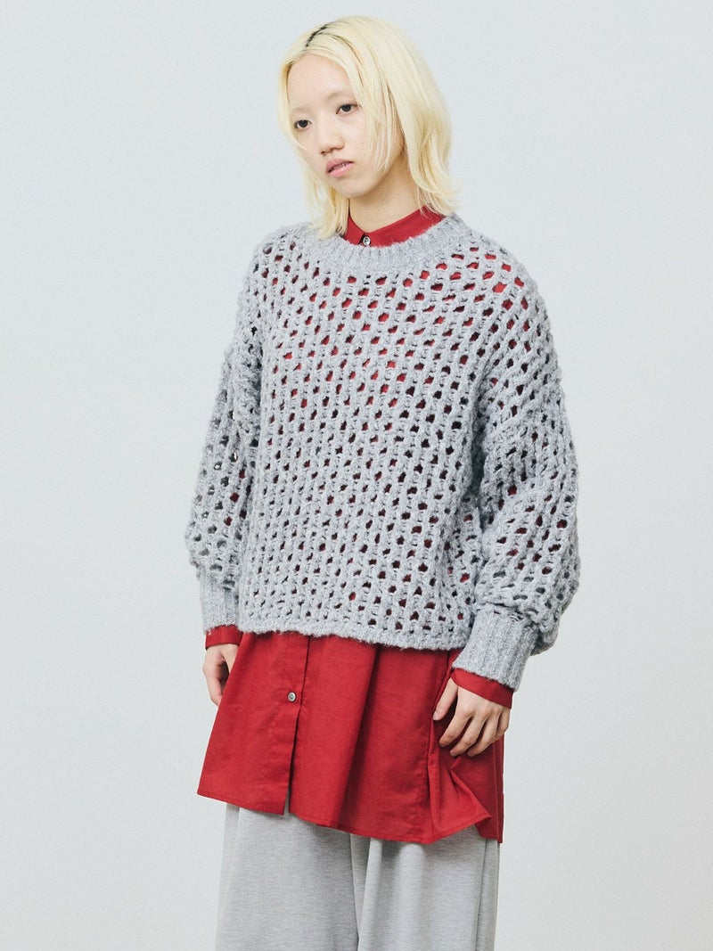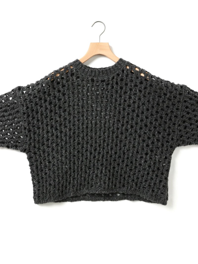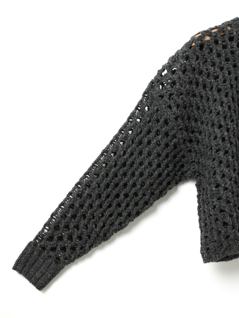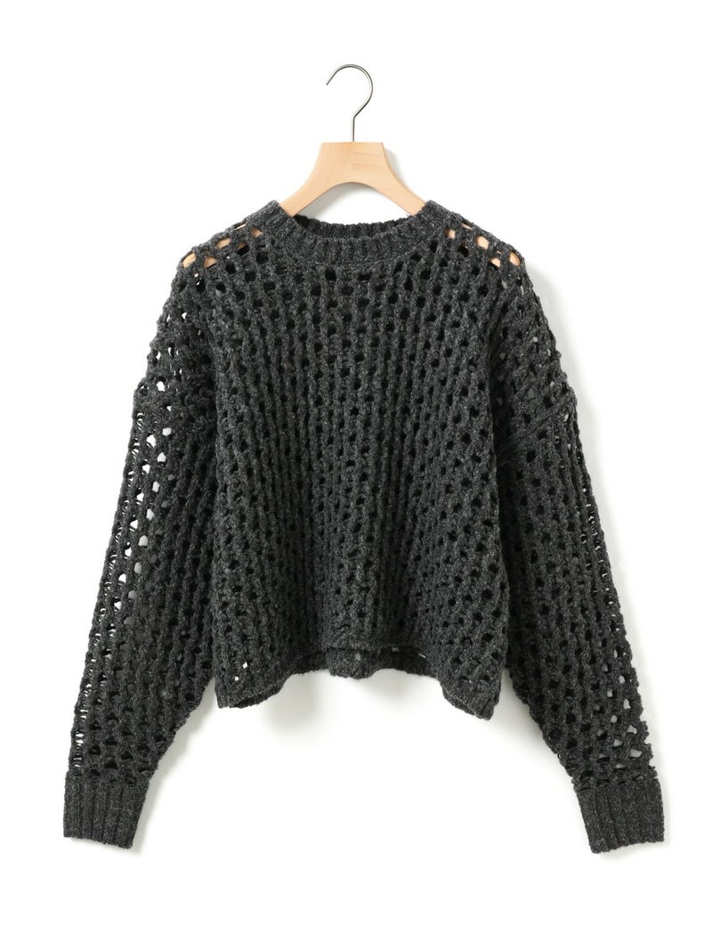 レイヤードアイテムにお勧めのローゲージメッシュプルオーバーです。編み目が大きくインナー見えします。袖はボリューム感のあるデザインで、袖口フィットのリブ仕立てに仕上げていることでよりフンワリ感を演出しています。季節の変わり目から長く愛用していただきやすいニットアイテムです。3-820048/ローゲージメッシュベストも展開。
