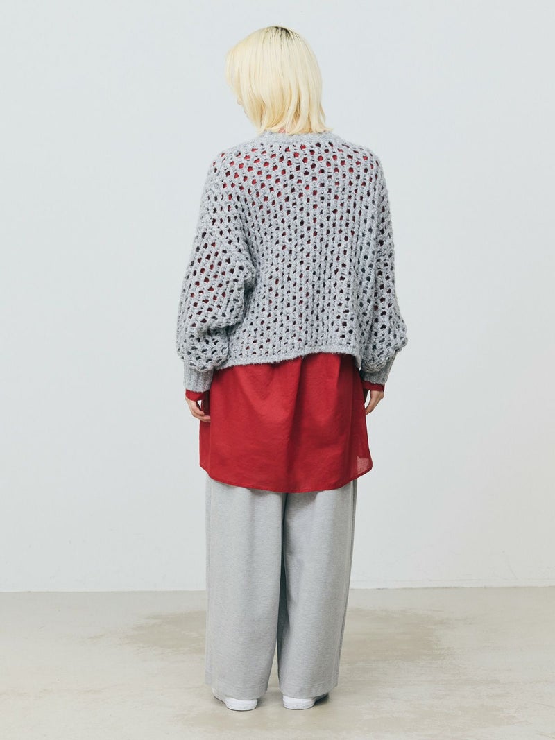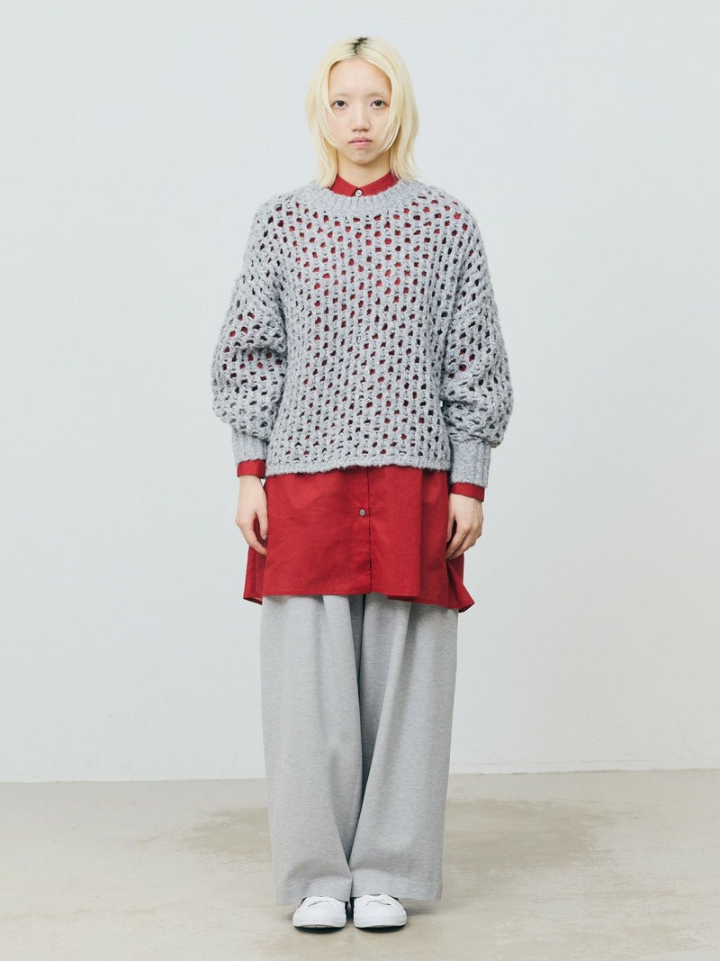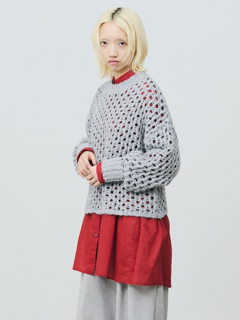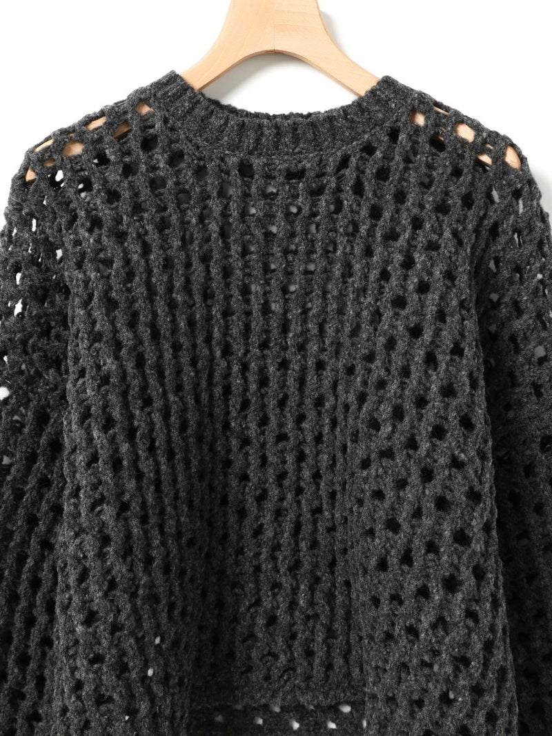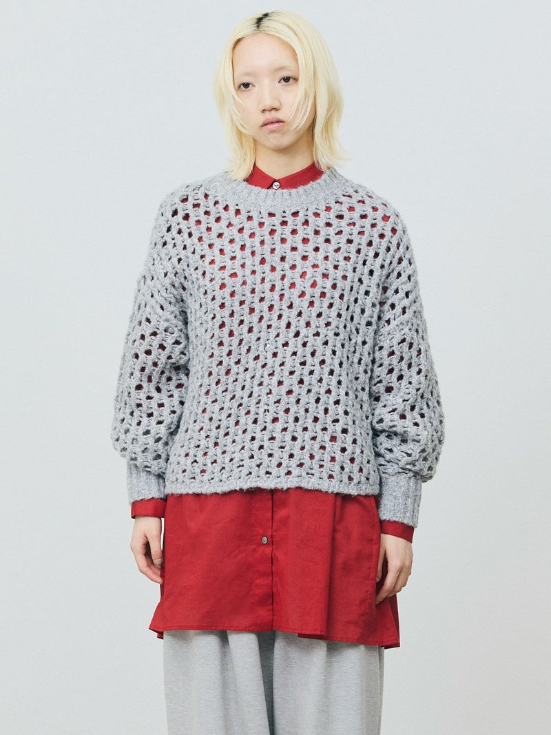レイヤードアイテムにお勧めのローゲージメッシュプルオーバーです。編み目が大きくインナー見えします。袖はボリューム感のあるデザインで、袖口フィットのリブ仕立てに仕上げていることでよりフンワリ感を演出しています。季節の変わり目から長く愛用していただきやすいニットアイテムです。3-820048/ローゲージメッシュベストも展開。